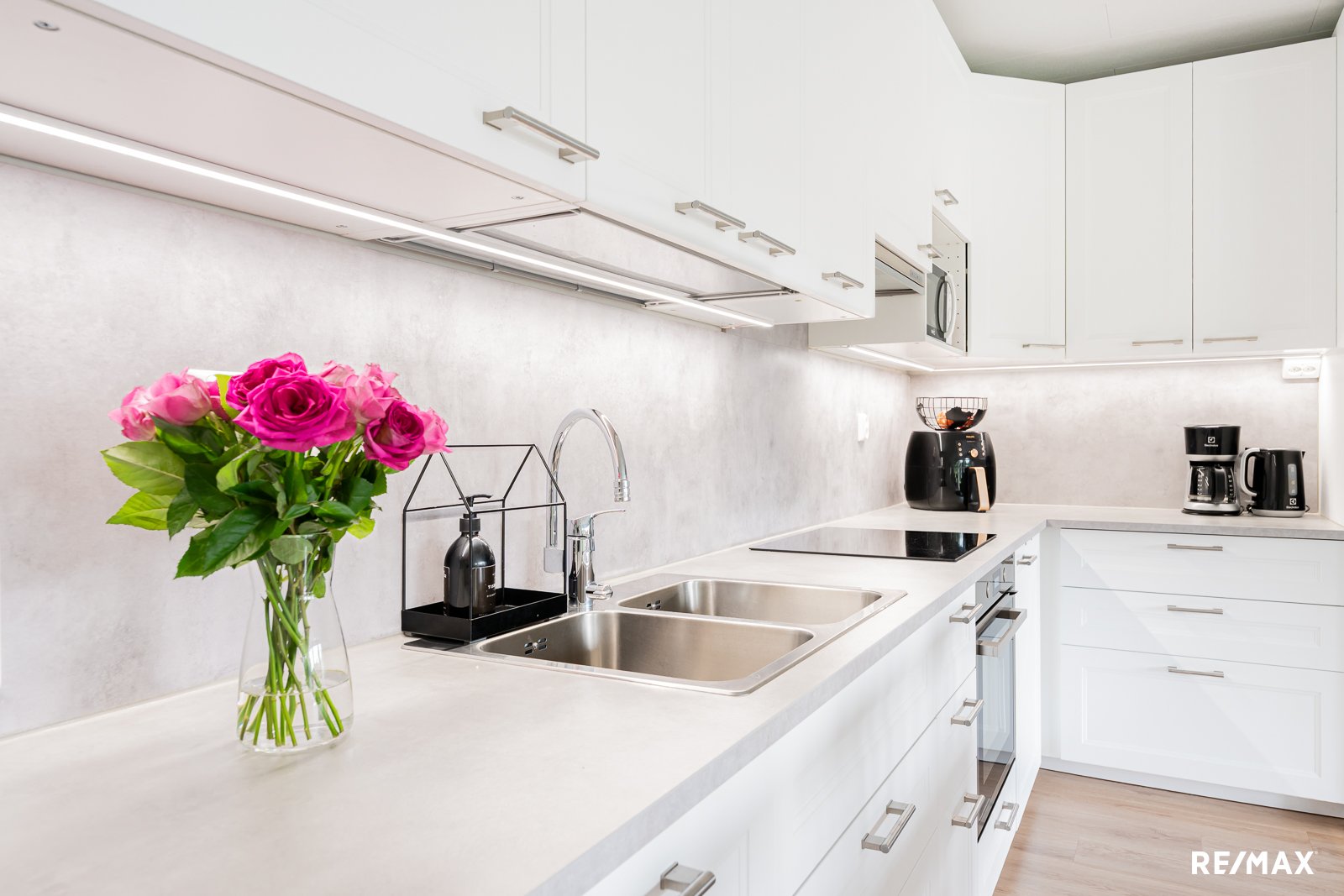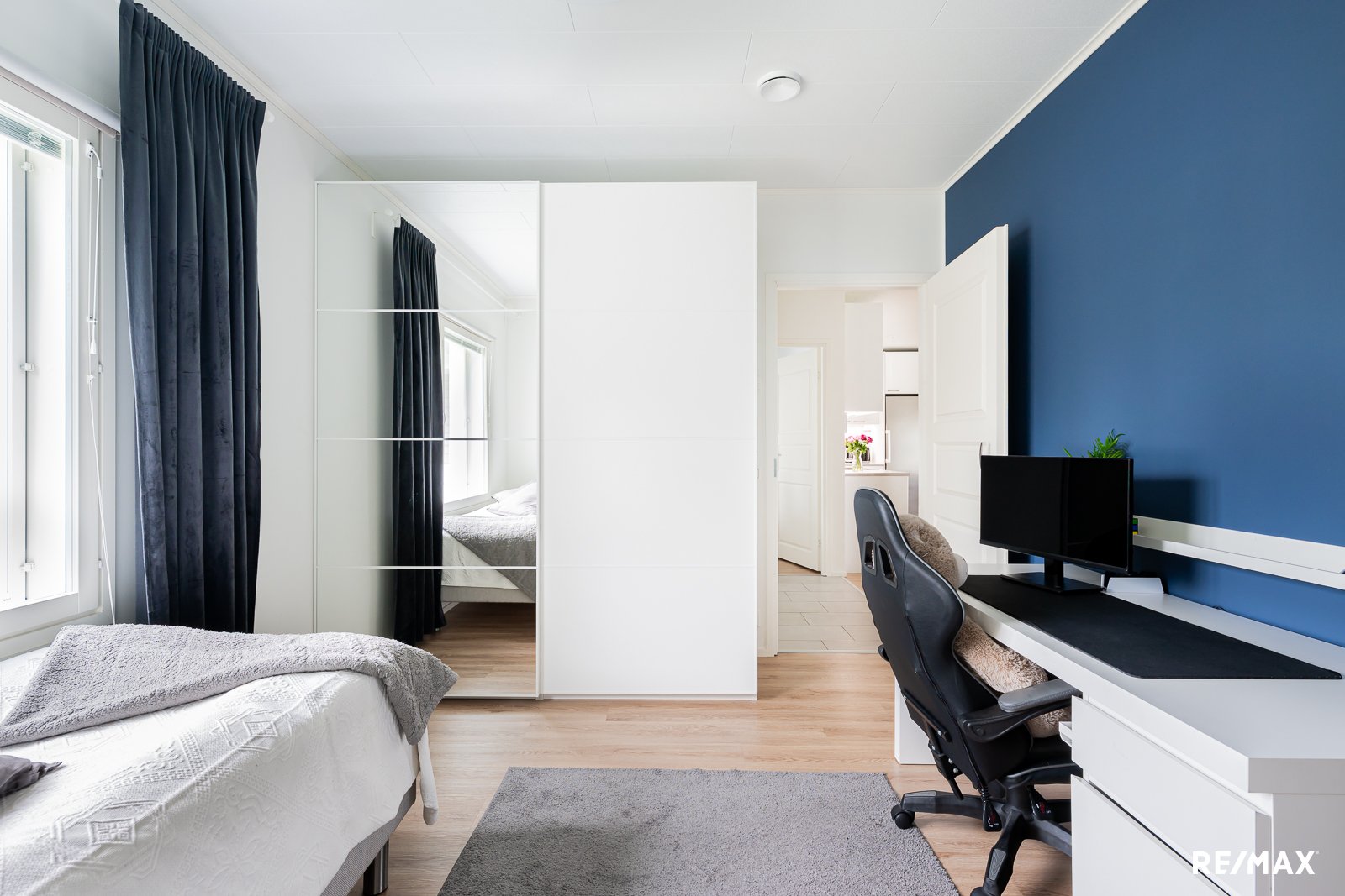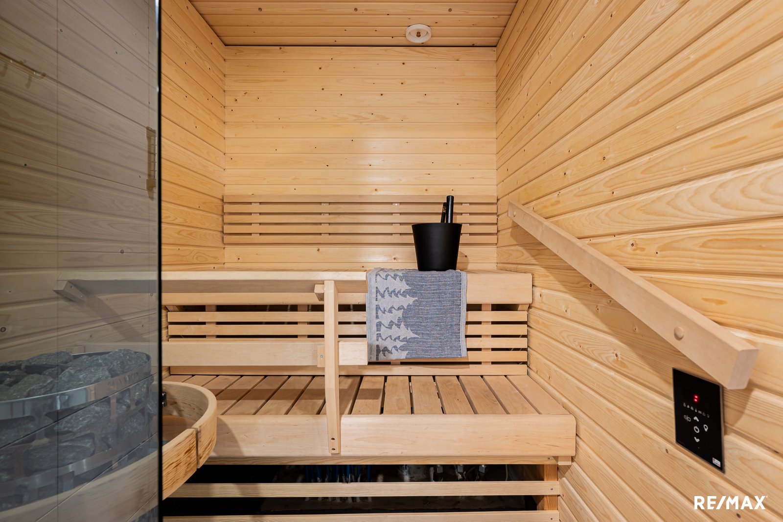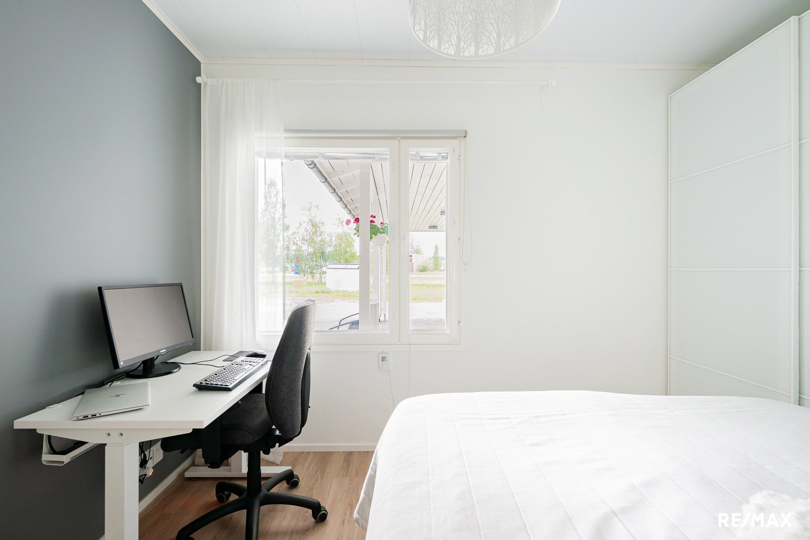 Kodin tyylikäs keittiö on varustettu nykyaikaisilla laitteilla, ja olohuoneen suuret ikkunat tuovat runsaasti luonnonvaloa sisään. Makuuhuoneissa on liukuovikaapistot, jotka tarjoavat runsaasti säilytystilaa. Kylpyhuone ja erillinen wc on sisustettu laadukkailla materiaaleilla, ja omassa saunassa voit rentoutua sähköisen pilarikiukaan lempeässä lämmössä.