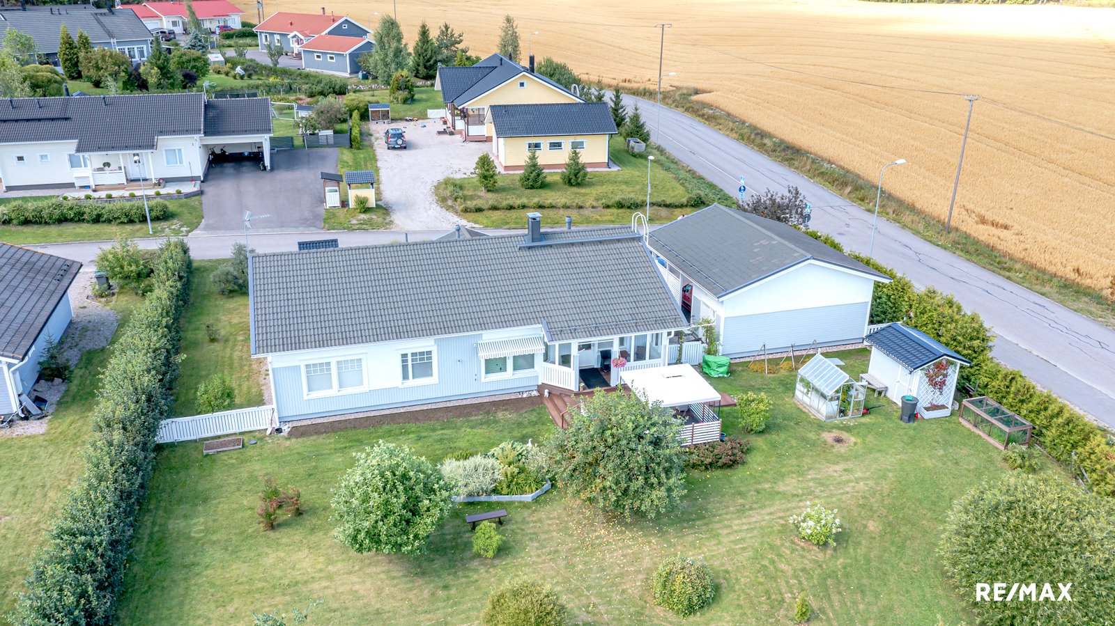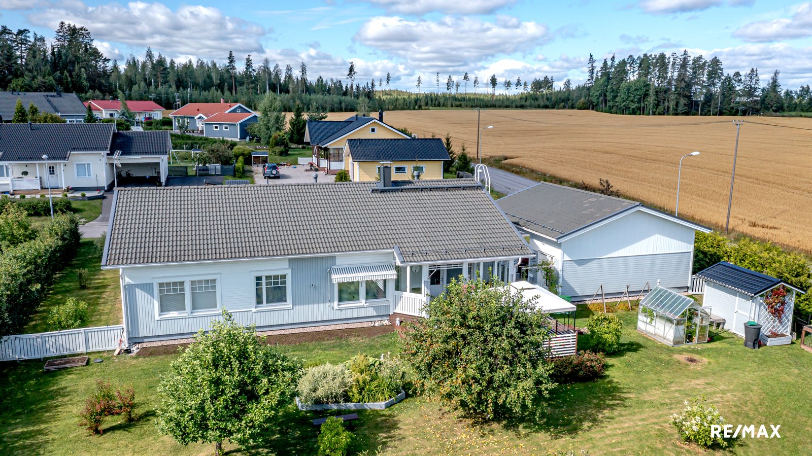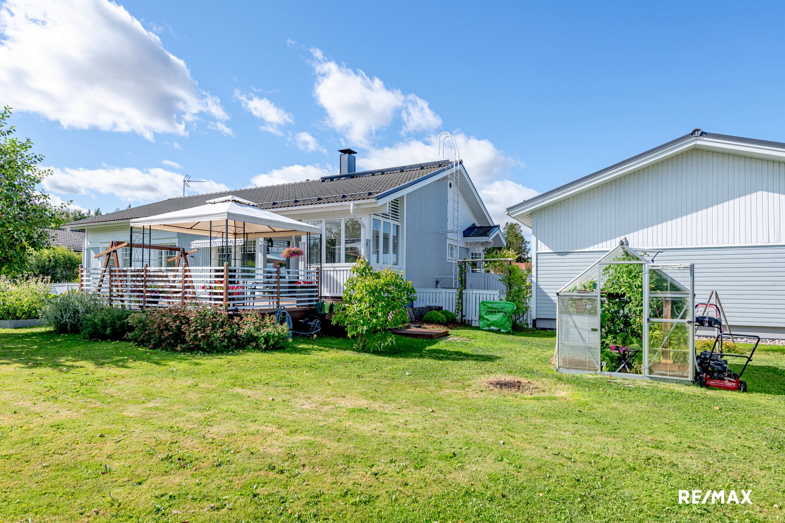Lasitetulla terassilla voi nauttia kesäpäivistä suojassa säältä, ja tilava tontti tarjoaa mahdollisuuksia puutarhanhoitoon tai lasten leikkeihin. Pihapiiristä löytyy myös kasvihuone ja pieni varasto sekä autotalli varasto tilalla