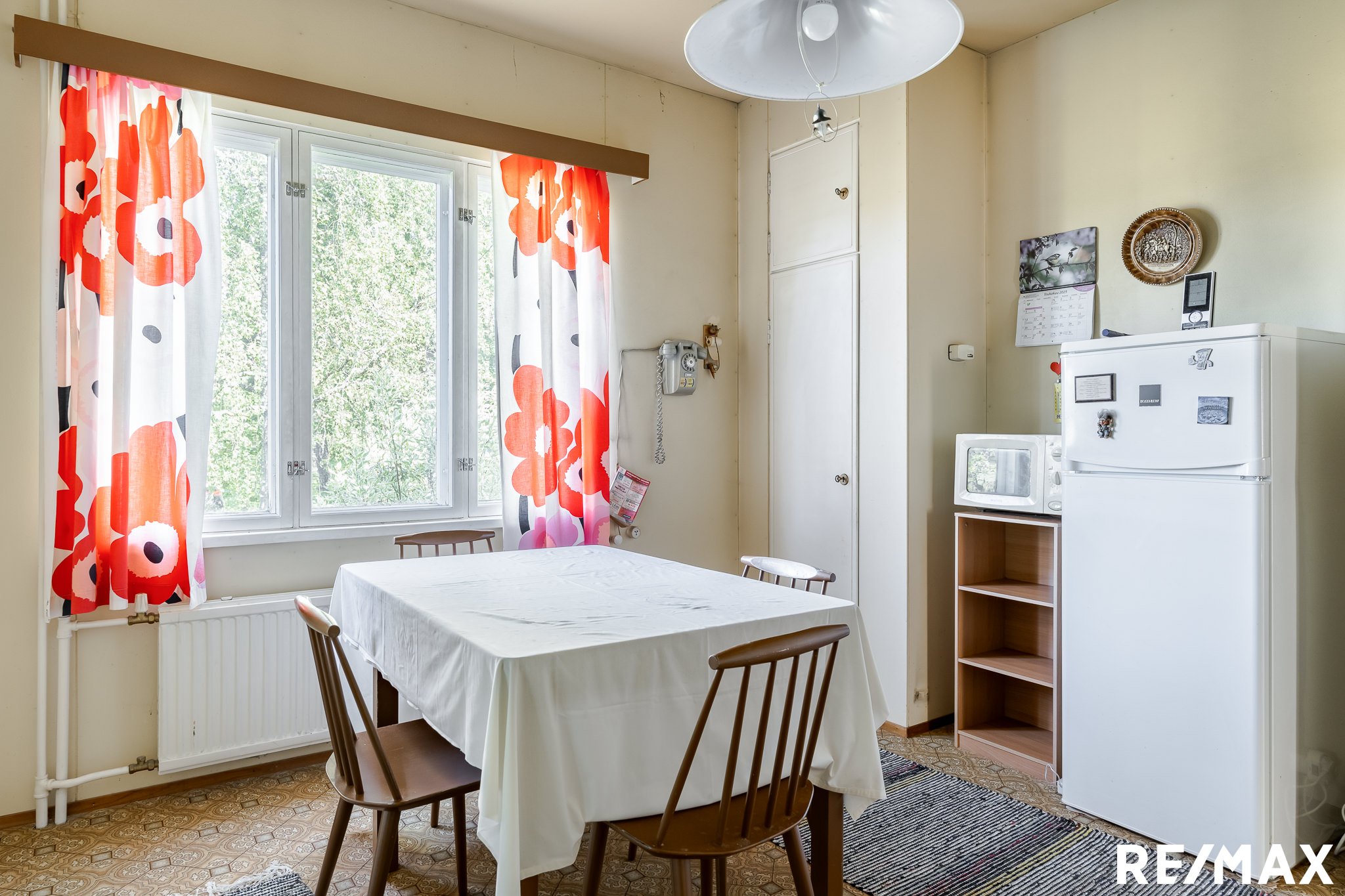 Pinta-alan peruste: Ei tarkistusmitattu. Pinta-alat saattavat tämän ikäisissä kohteissa (rekisteröity ennen 01.01.1992) poiketa olennaisestikin asuinrakennusten nykyisten mittaustapojen ja standardien (SFS 5139) mukaan laskettavasta asuintilojen pinta-alasta. Pinta-ala voi siis olla edellä mainittua pienempi tai suurempi. Pinta-alan peruste: Pinta-ala ei ole tarkistusmitattu ja todellinen pinta-ala voi olla suurempi tai pienempi, kuin ilmoitettu. Pinta-ala on otettu Rakennustiedosta.
