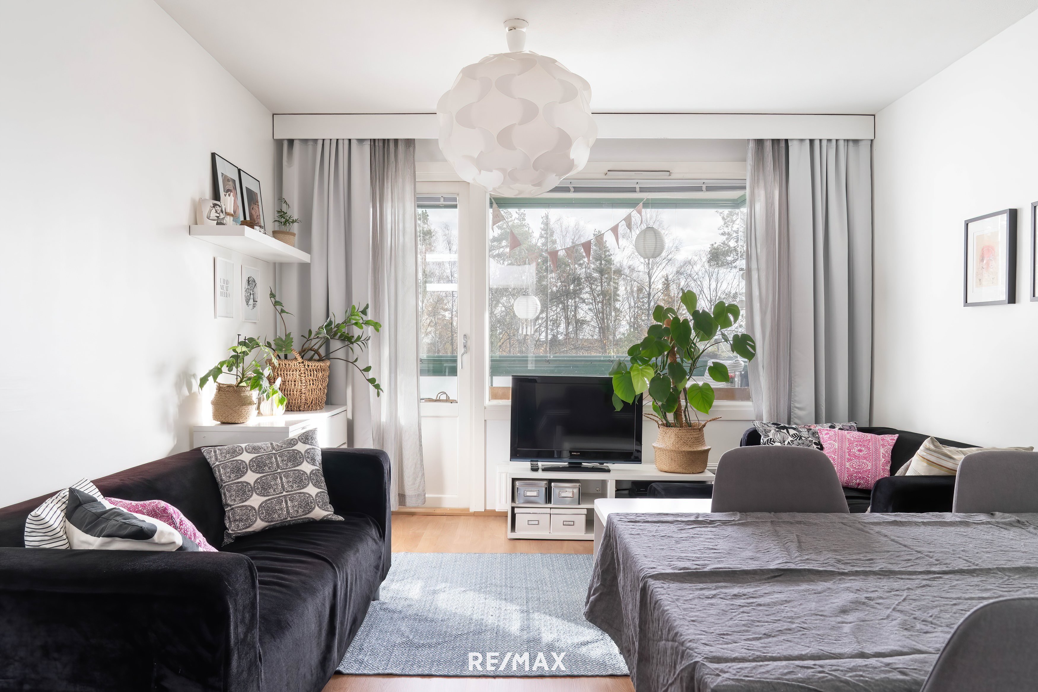 Sijainti Eestinmäessä on rauhallinen ja vehreä, mutta arjen tarpeet ovat kirjaimellisesti kulman takana: lähikauppa noin 100 metriä, päiväkoti noin 300 metriä ja koulut sopivalla etäisyydellä. Paikallisbussi pysähtyy noin sadan metrin päässä ja Helsingin suuntaan hyppäät bussille noin 450 metrin päästä, eli oma auto ei ole edes välttämättömyys.