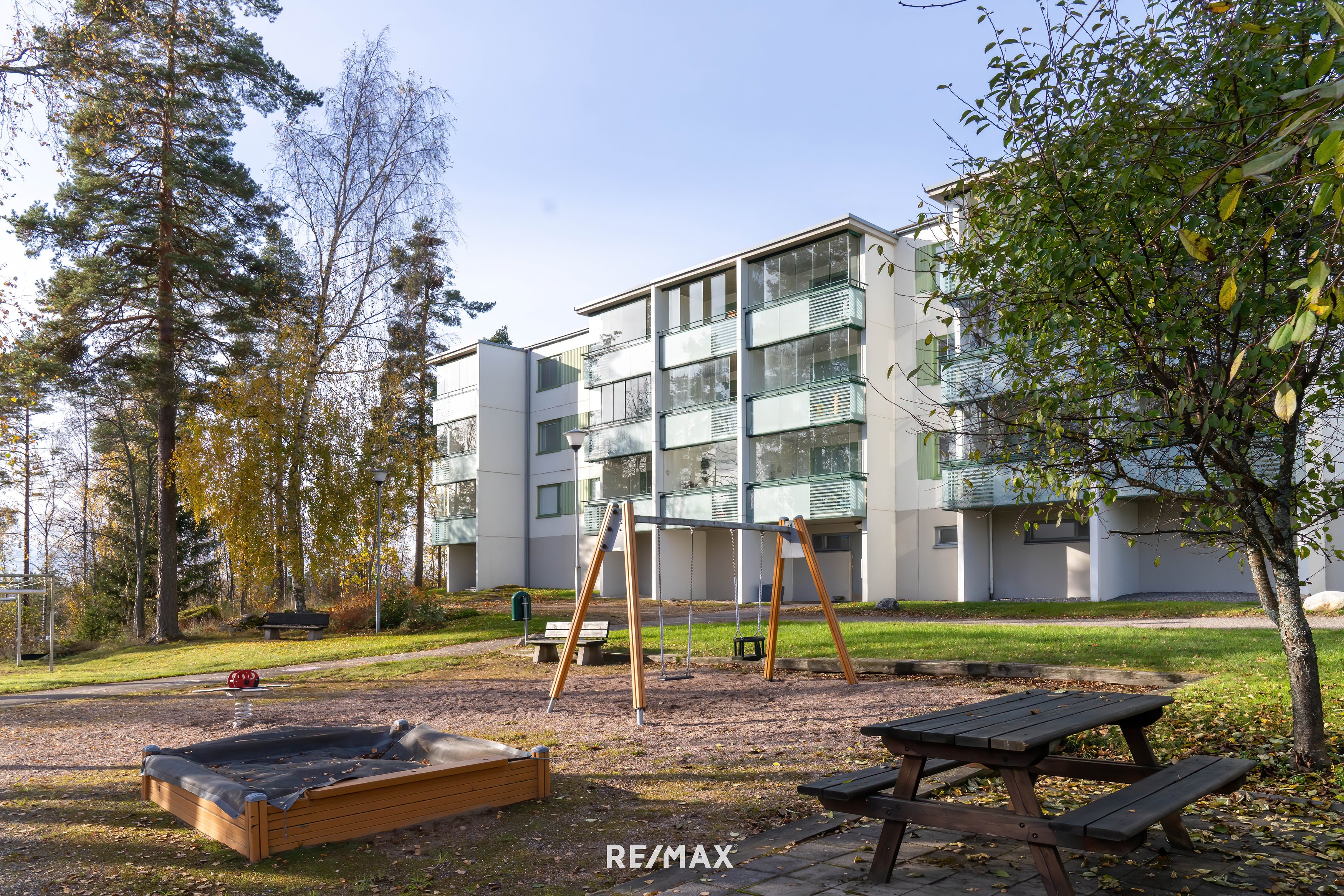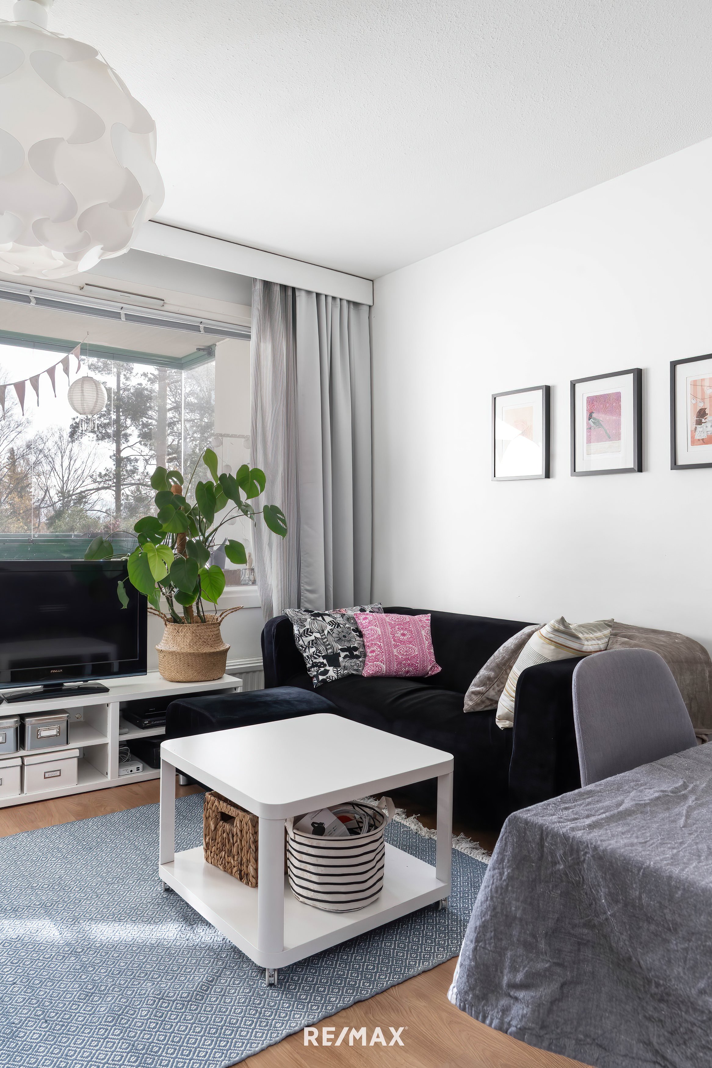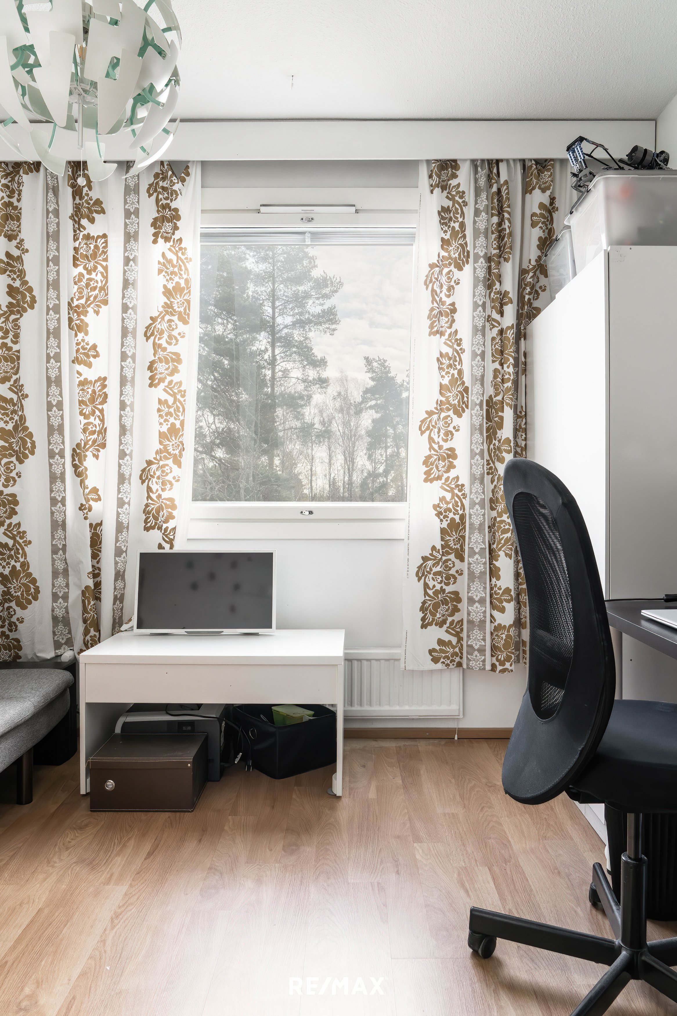 Keittiö on tyylikäs ja ajaton, käytännöllisin materiaalein toteutettu. Olohuoneeseen on helppo rakentaa sekä sohvaryhmä että ruokailunurkkaus, ja säilytys on poikkeuksellisen toimiva: vaatehuone, kaapistot ja kellarin häkkivarasto pitävät tavarat järjestyksessä. Linjasaneerauksen yhteydessä vuonna 2023 uudistettu kylpyhuone tuo elämään huoletonta helppoutta. Kolme makuuhuonetta sopivat mainiosti perheelle, etätyöhuoneeksi tai vieraille.