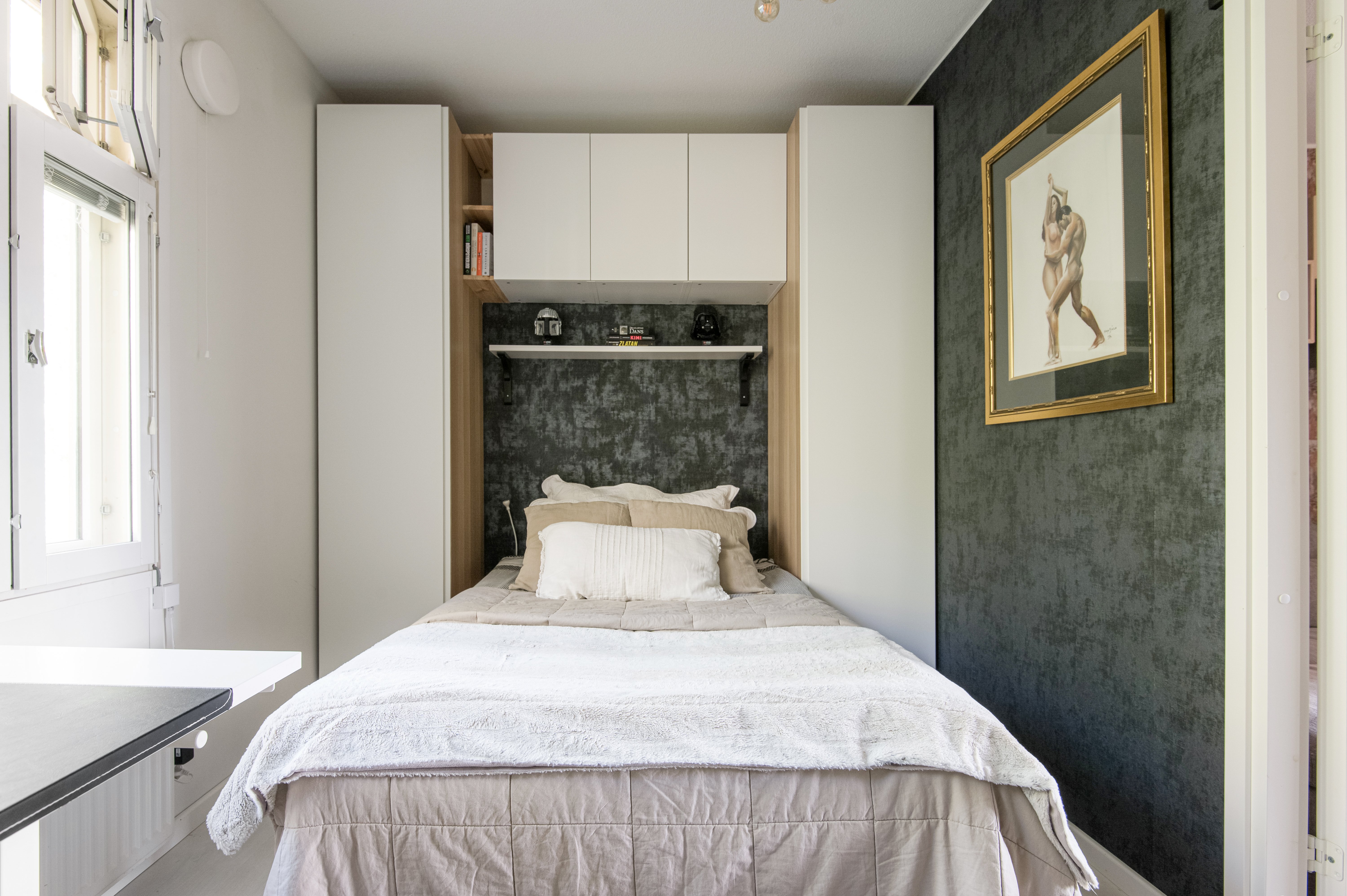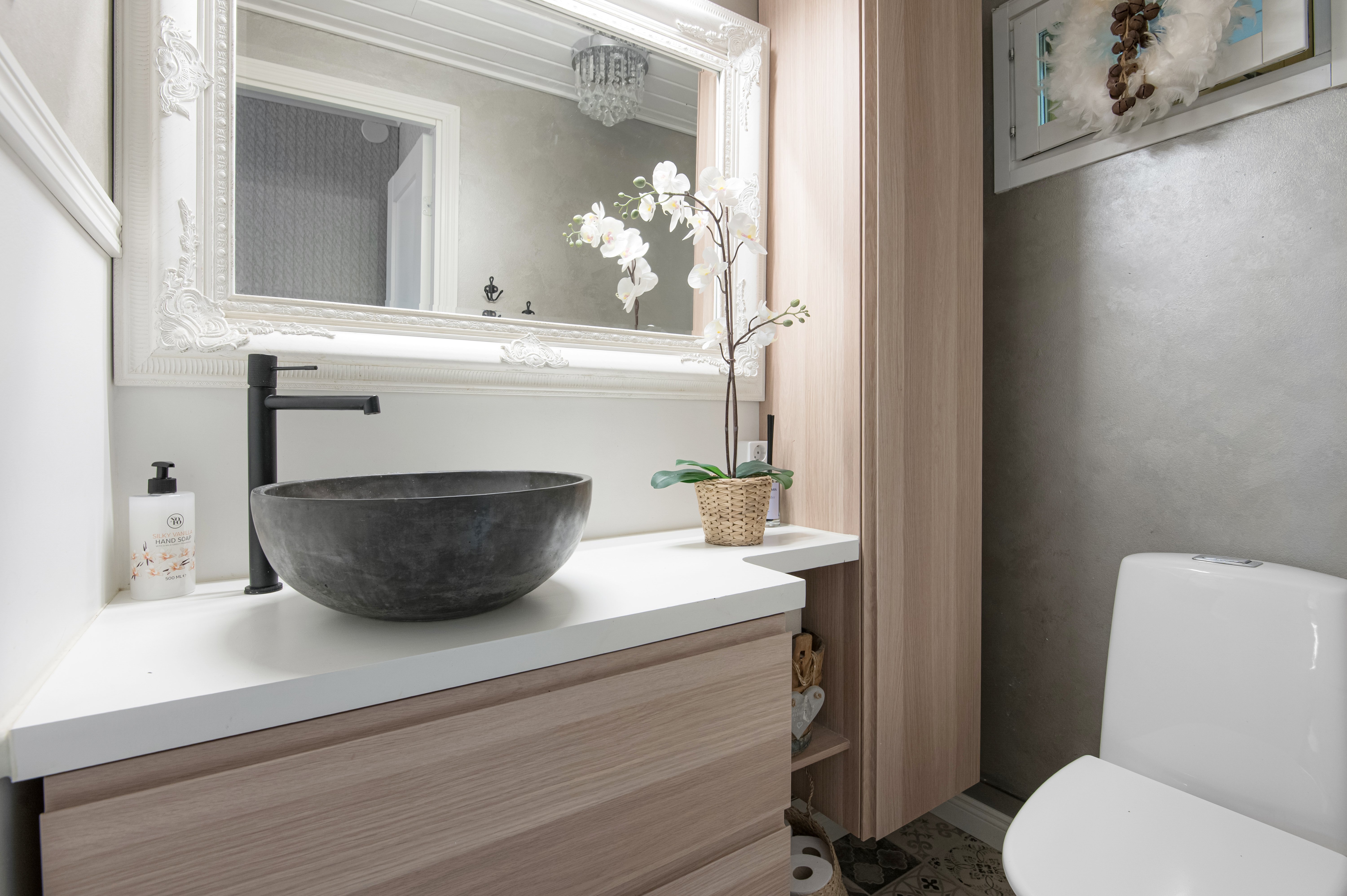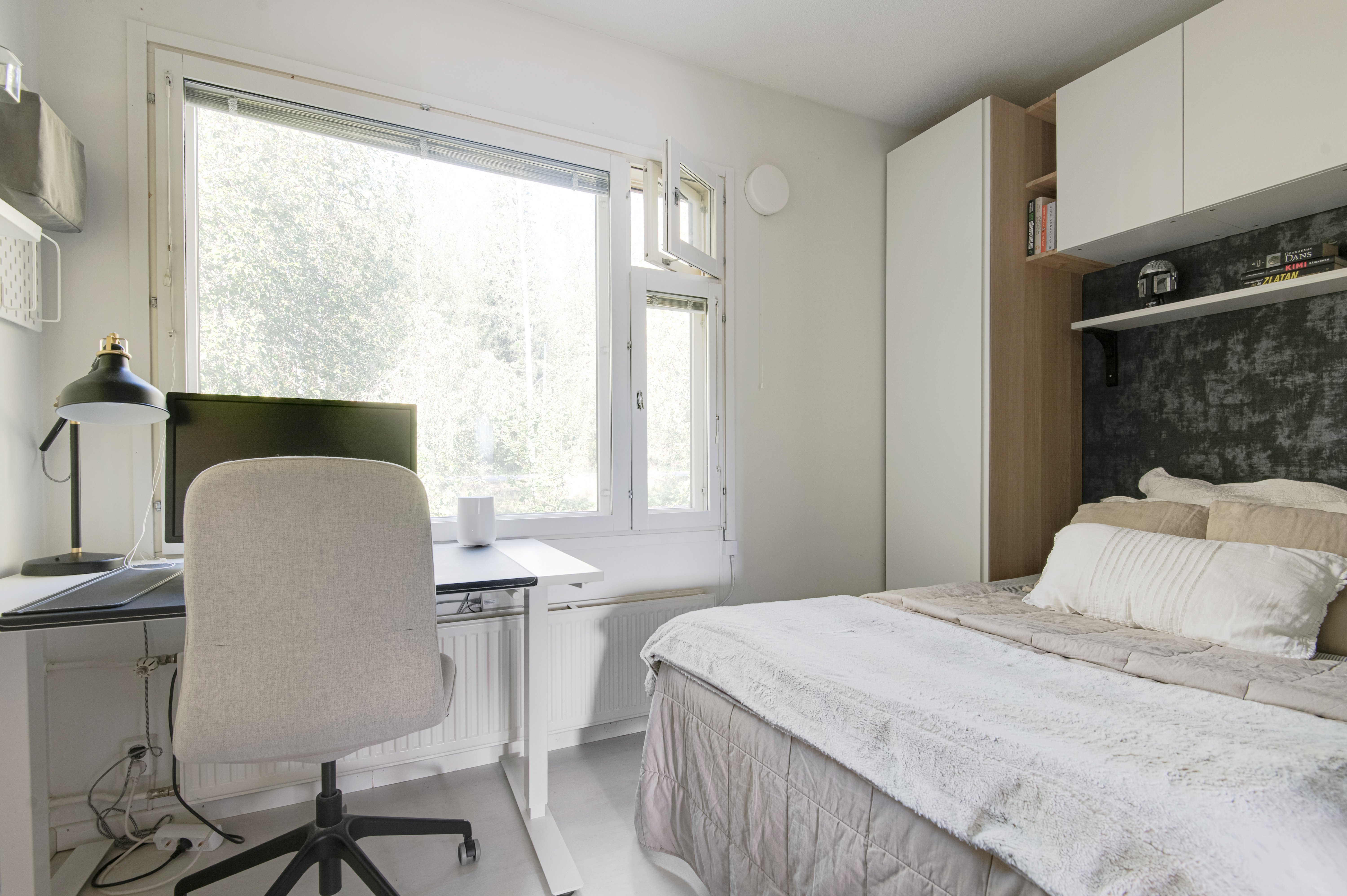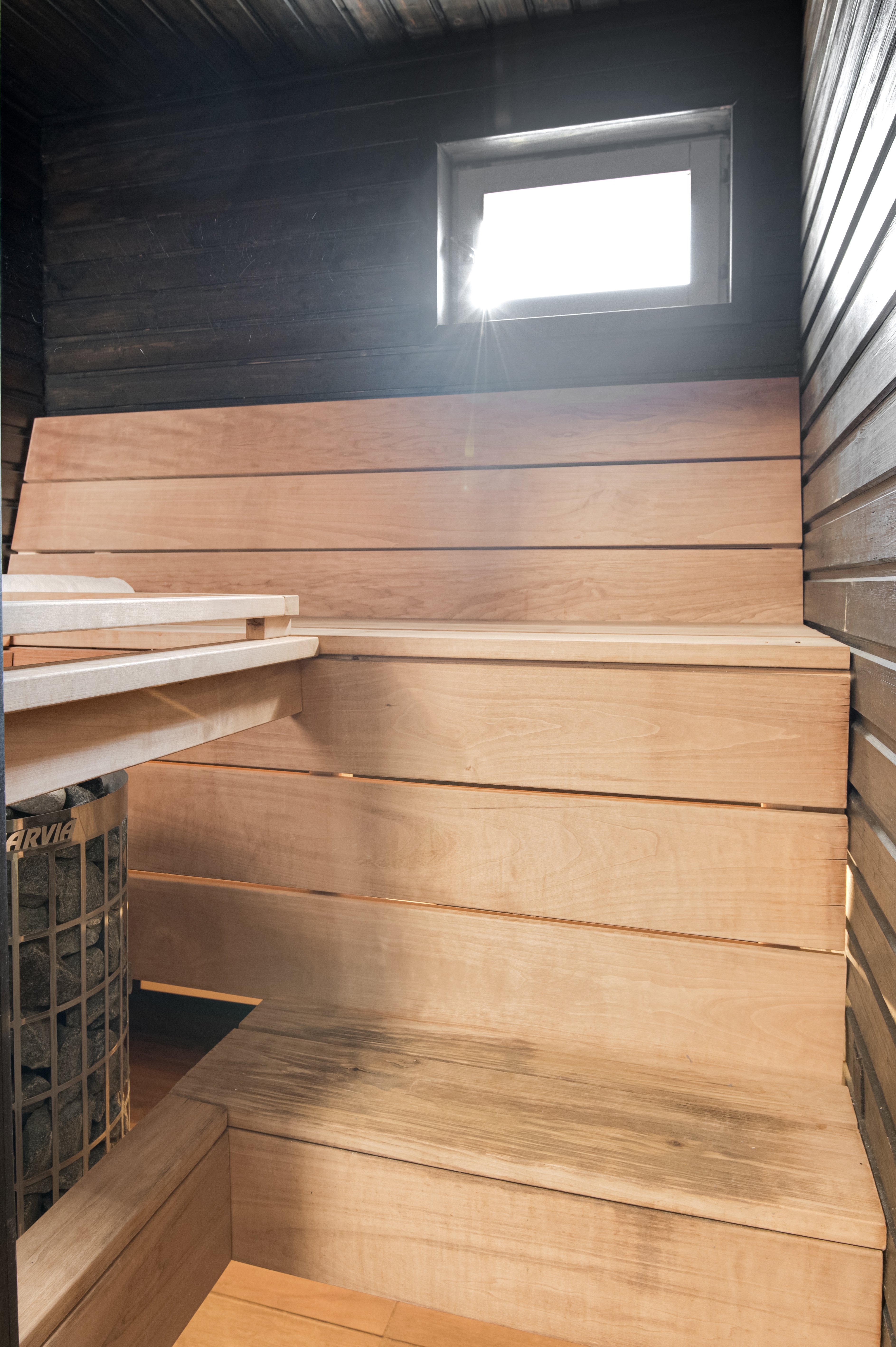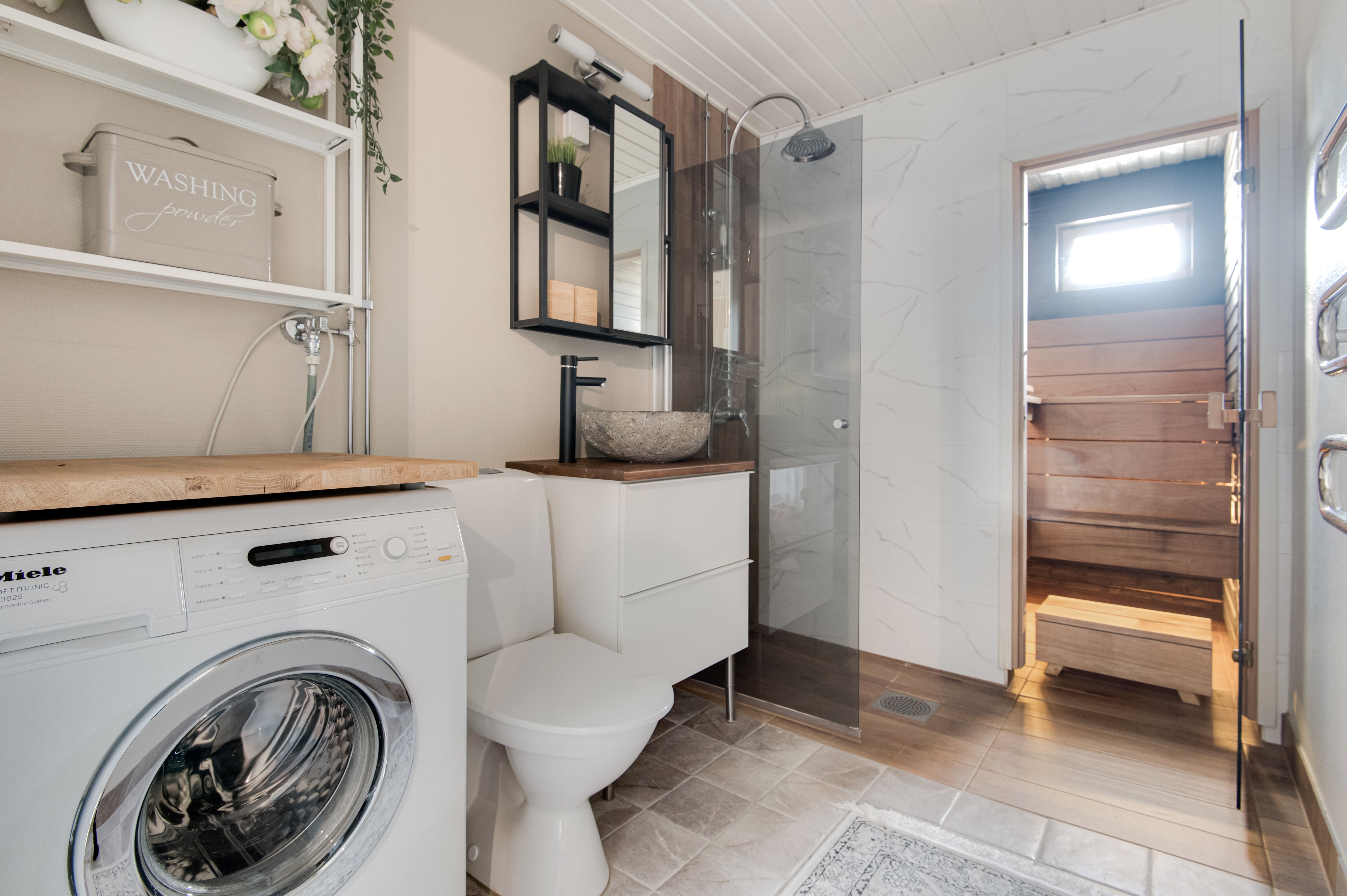 Olohuoneesta ja päämakuuhuoneesta avautuu näkymät omalle terassille ja taloyhtiön suojaisalle sisäpihalle. Terassi on osittain katettu ja tarjoaa rauhallisen paikan rentoutumiseen, tai ystävien kanssa seurusteluun. Asunnossa on myös oma sauna, joka tuo arkeen ripauksen luksusta.
