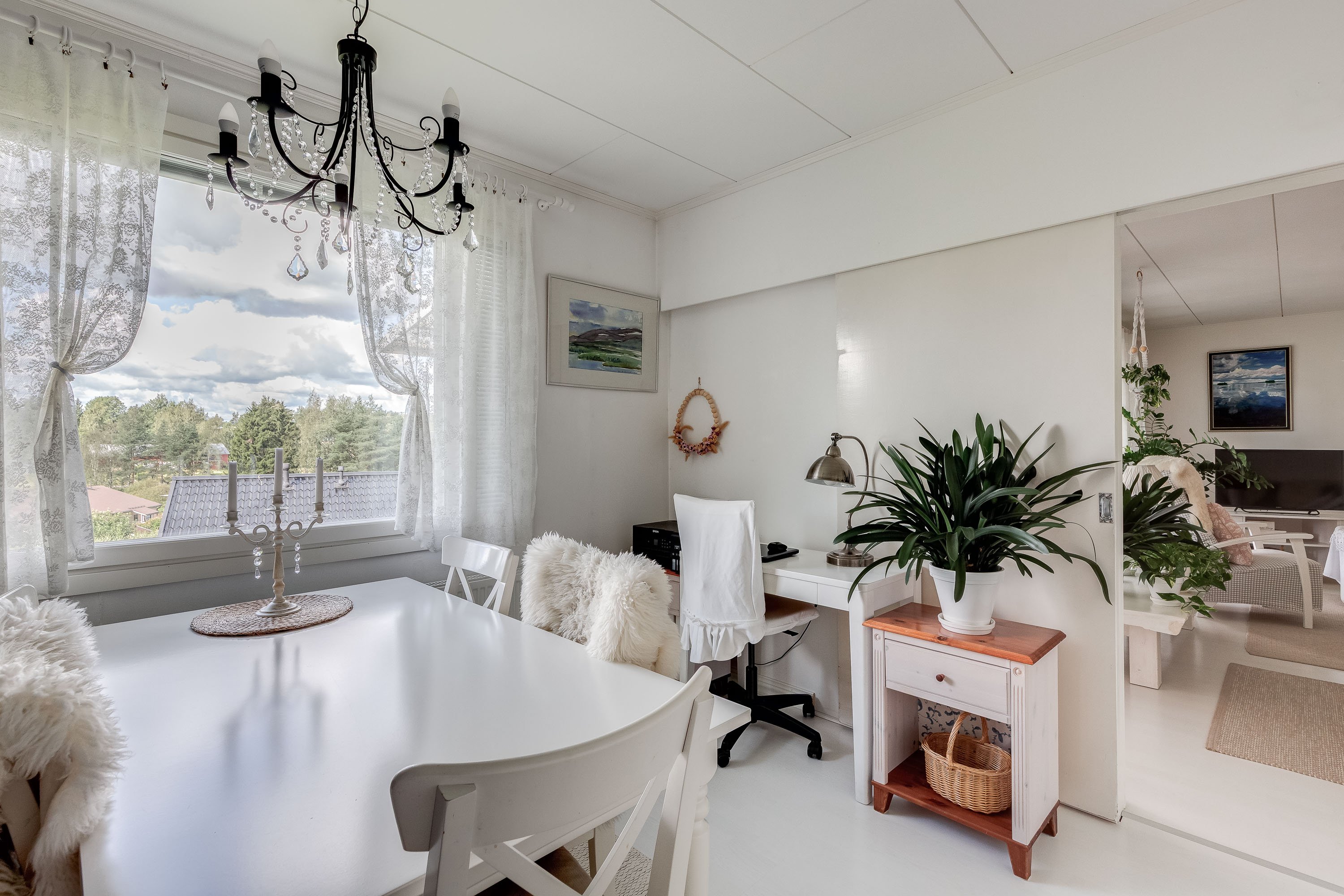 Kodissa on kolme makuuhuonetta ja viihtyisä olohuone, josta käynti isolle katetulle parvekkeelle. Kodin neutraali värimaailma ajattomat sisustusratkaisut, kuten tammiparketti ja kivitasot keittiössä, luovat viihtyisän ja toimivan kokonaisuuden. Kodin kylpyhuone ja alakerran huonetilat kaipaavat päivityksen.
