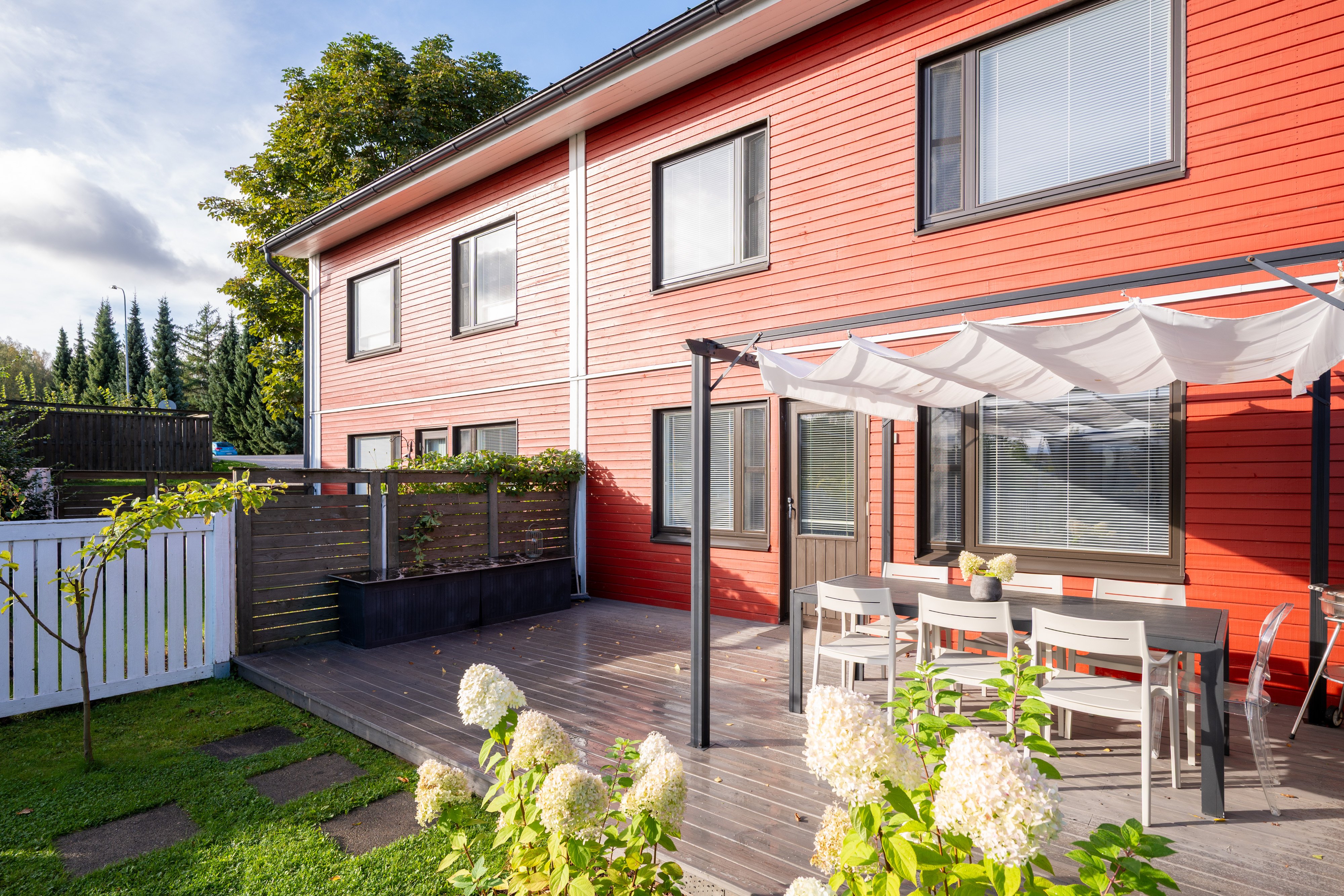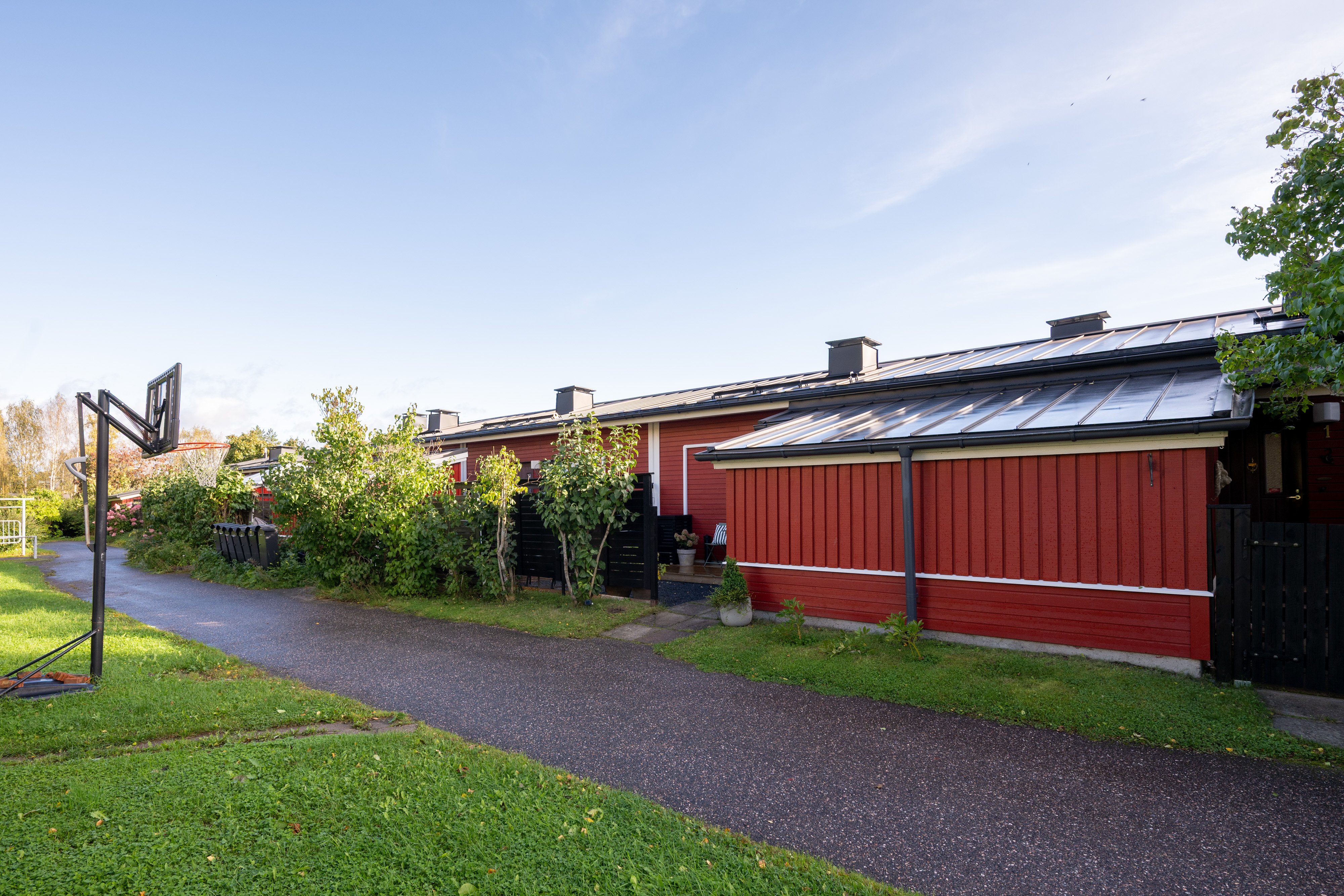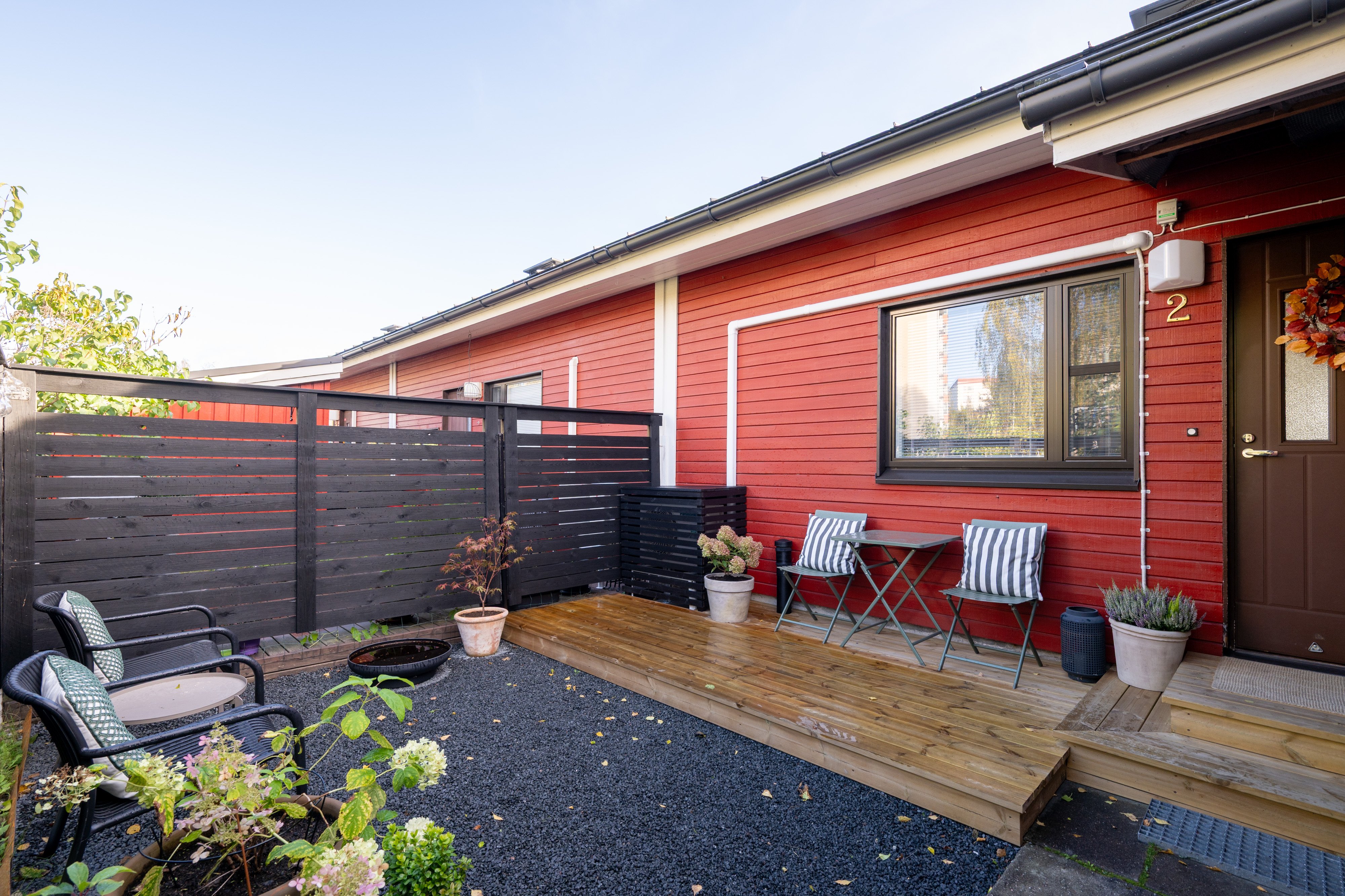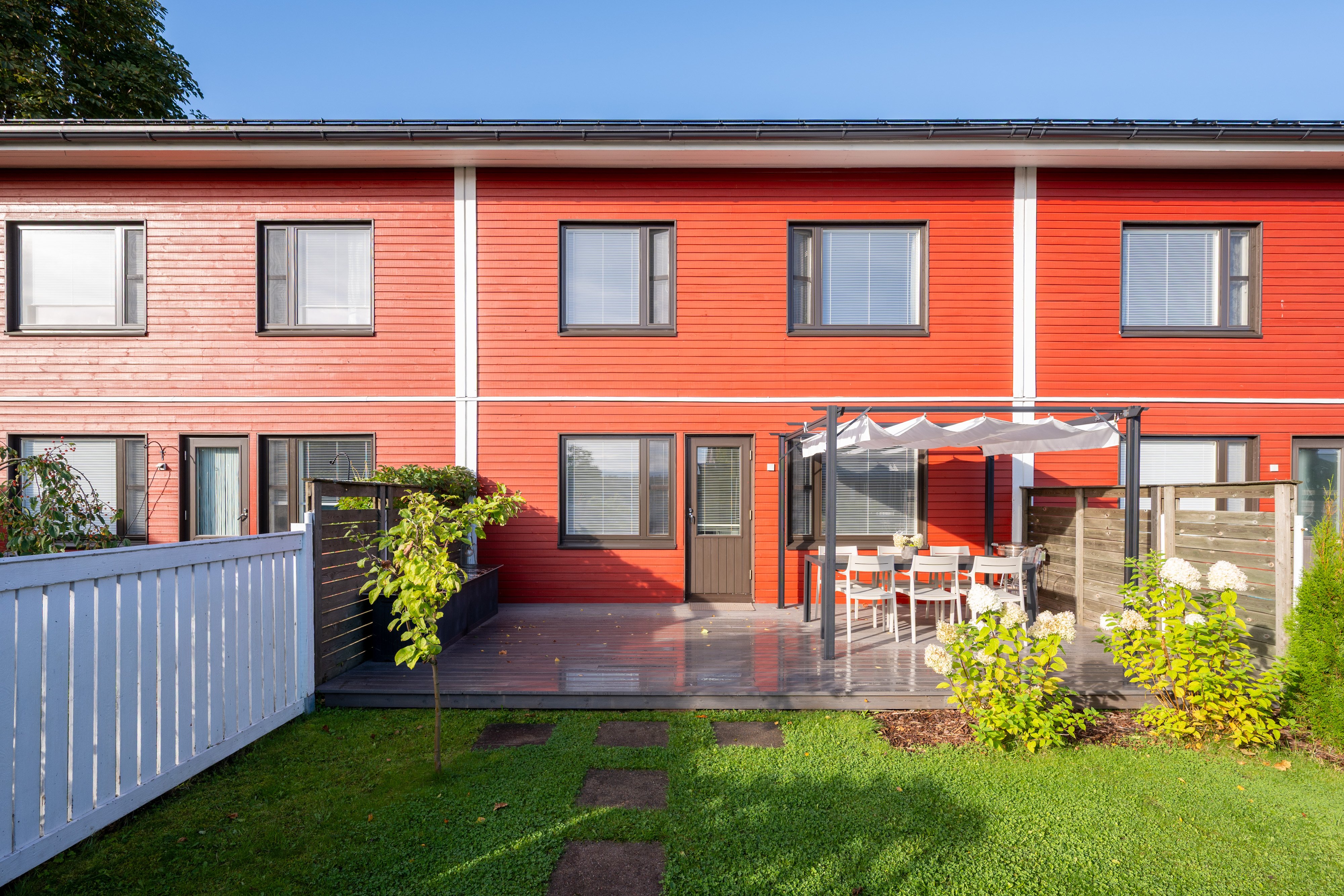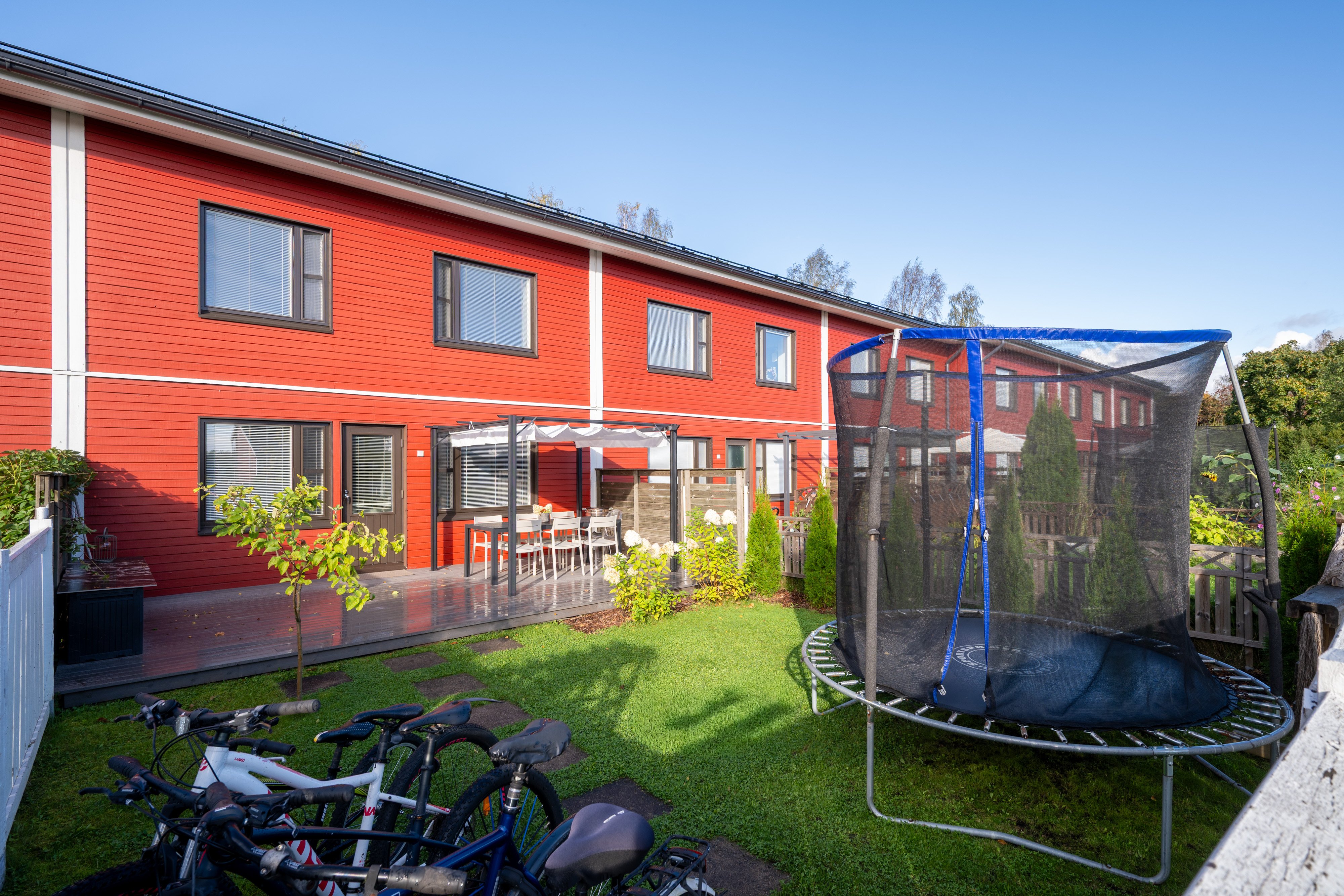 Kaakkoispolku 1:n rivitaloyhtiö on hyvin hoidettu, ja sen mukavat naapurit luovat miellyttävän asuinympäristön. Asunnon piha-alue on aidattu, ja siellä on suuri patio sekä pergola, jotka kutsuvat viettämään aikaa ulkona. Etupihan terassi ja pieni piha-alue on juuri uusittu, mikä lisää asumismukavuutta entisestään. Ulkovarastossa on tilaa liikuntavälineille ja puutarhatyökaluille.