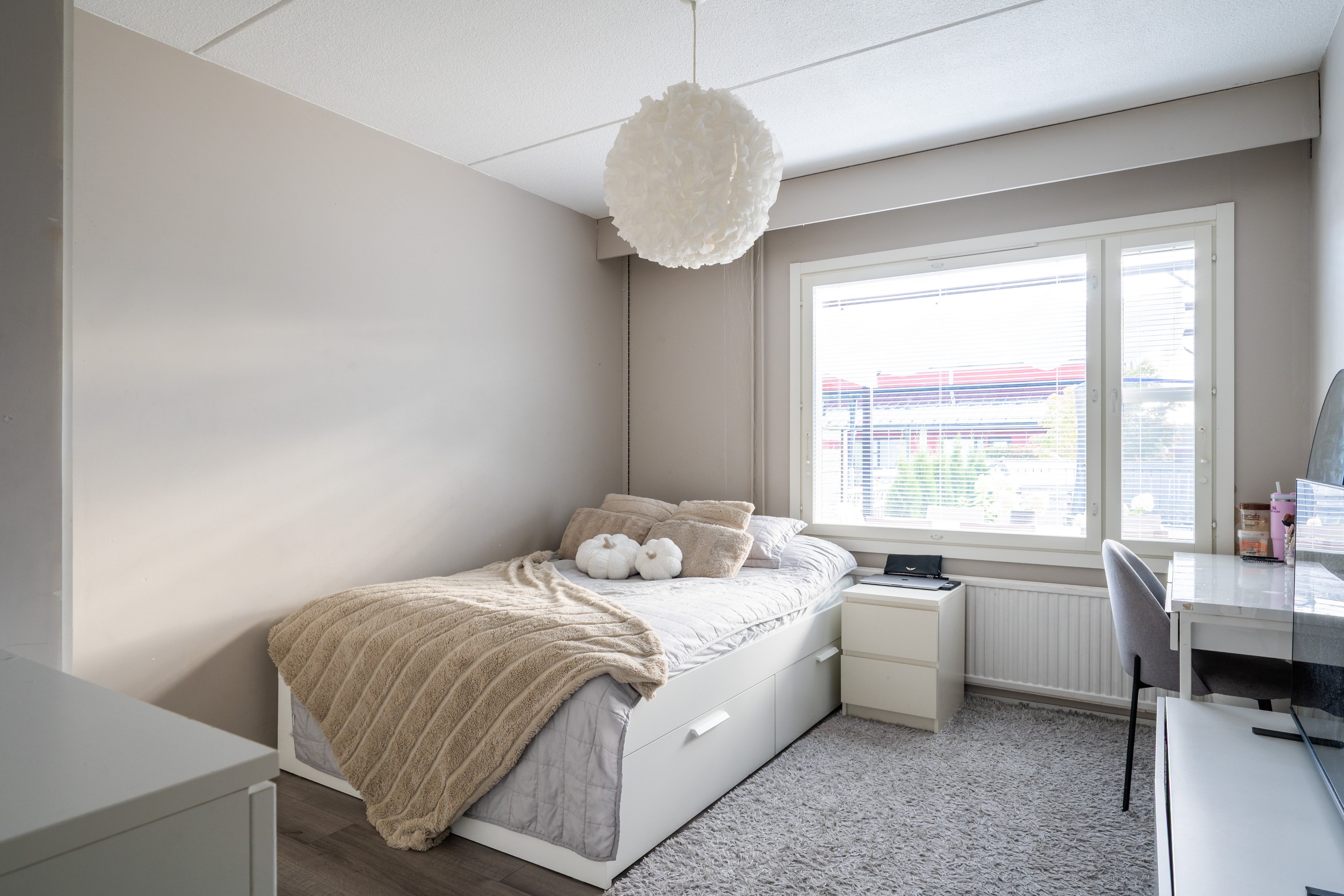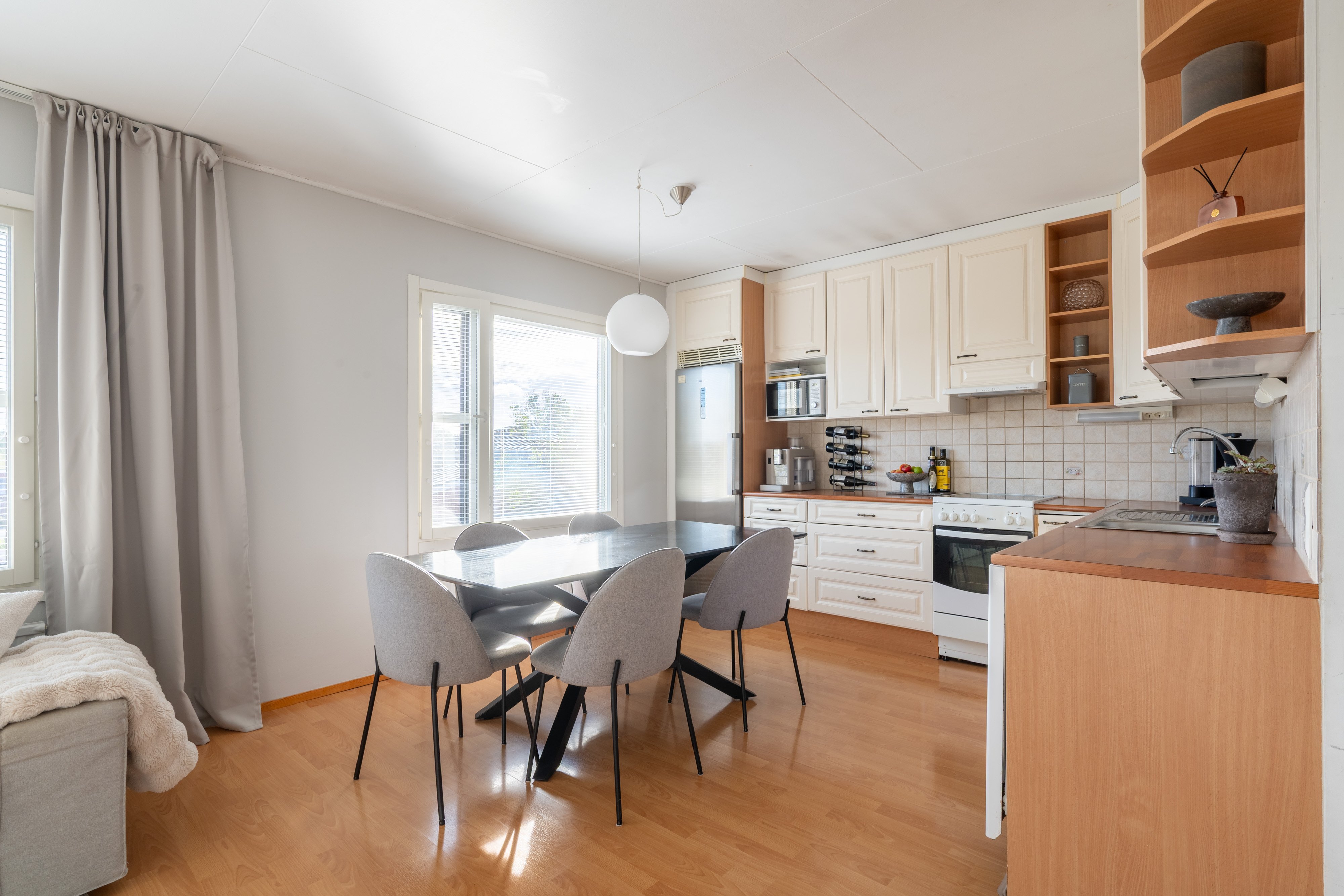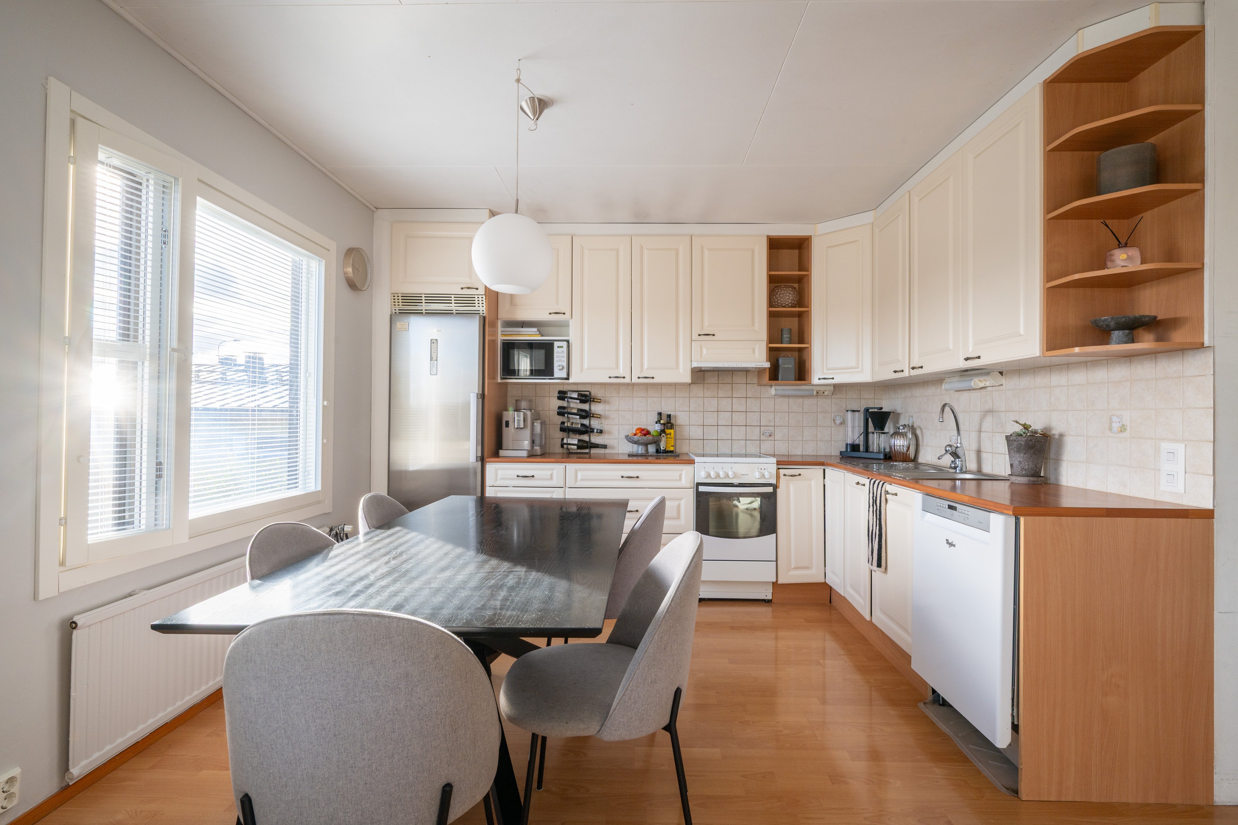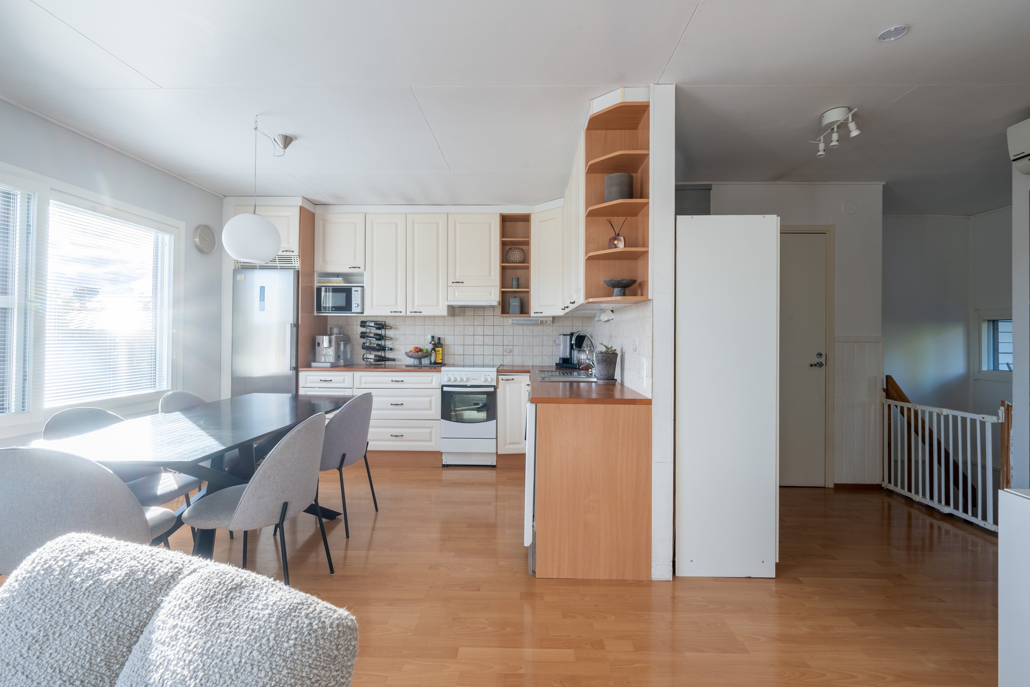 Asunnossa on avokeittiö, valoisa olohuone, kolme makuuhuonetta, sauna/ kylpyhuone ja erillinen wc, sekä ihastuttava takapiha patioineen, mikä tekee siitä ihanteellisen valinnan perheelle.