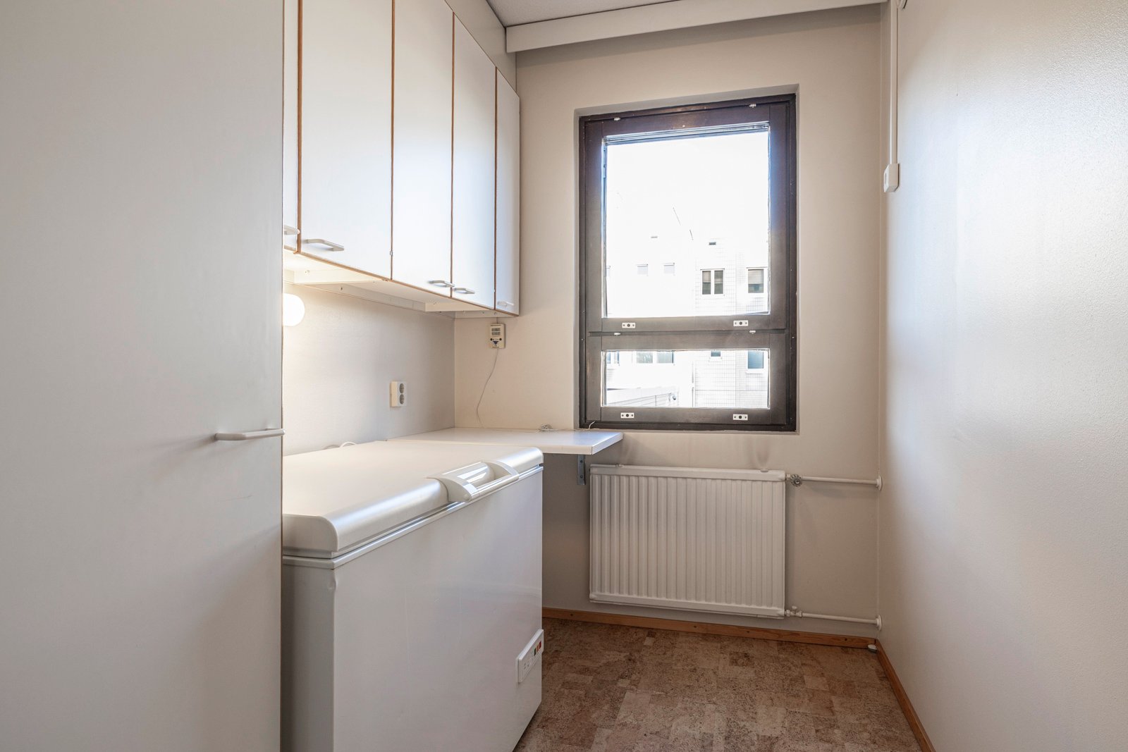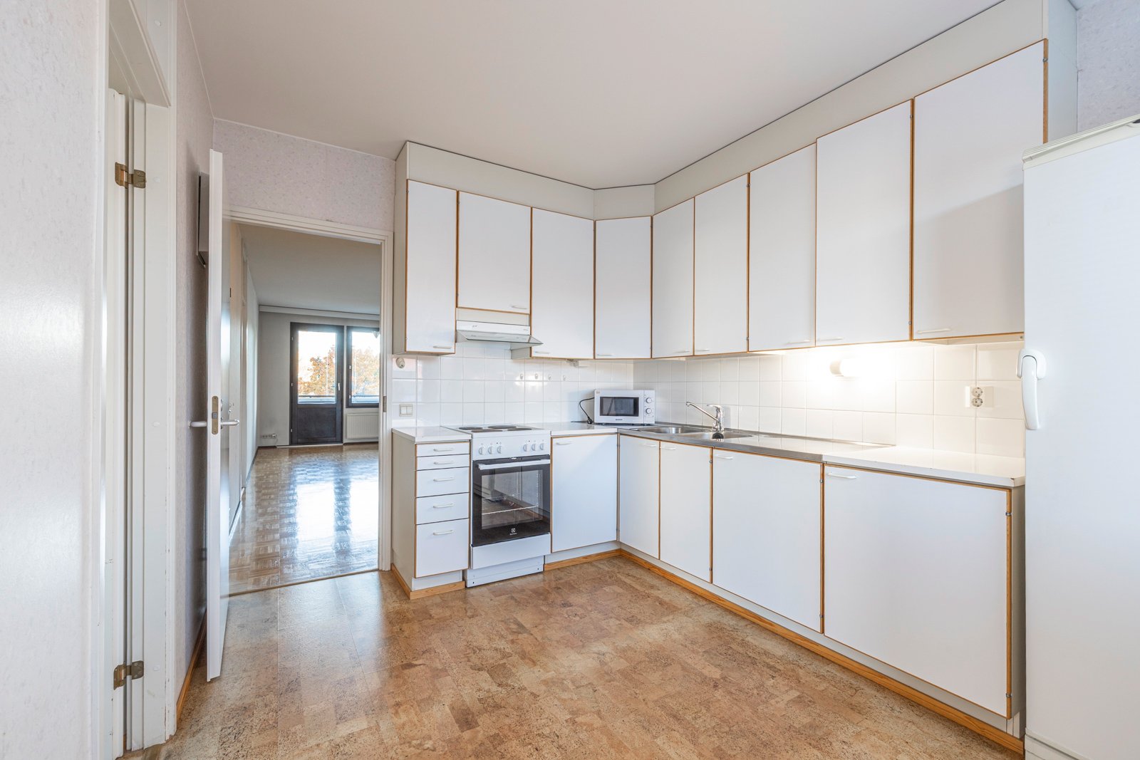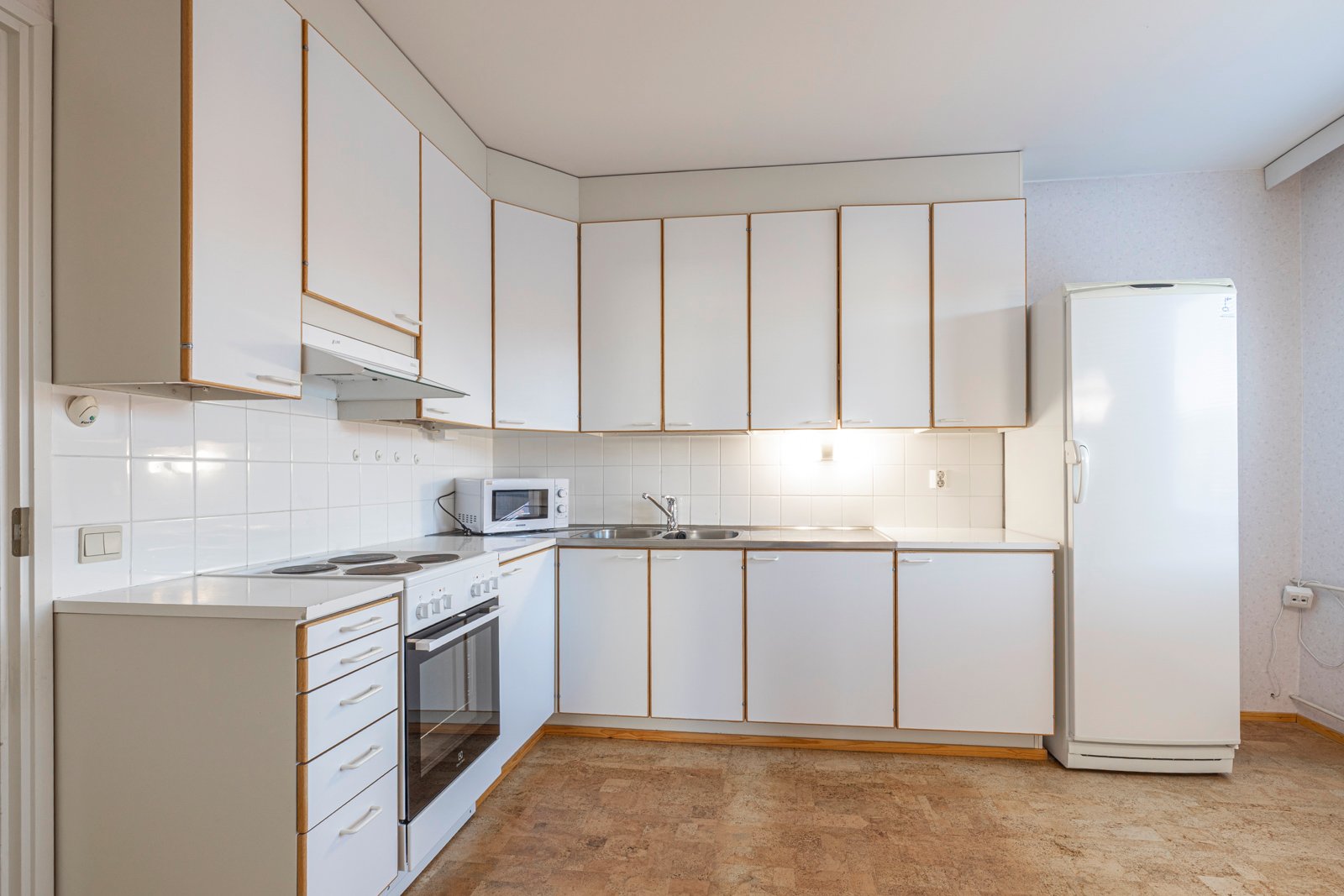 Asunnon etelään suuntautuva lasitettu parveke tarjoaa oivan paikan rentoutua ja nauttia auringonpaisteesta. Tilavan keittiön yhteydessä on käytännöllinen apukeittiö/kodinhoitotila. Kylpyhuone on varusteltu kaikilla tarpeellisilla mukavuuksilla, ja saunan sähkökiuas takaa rentouttavat löylyt.
