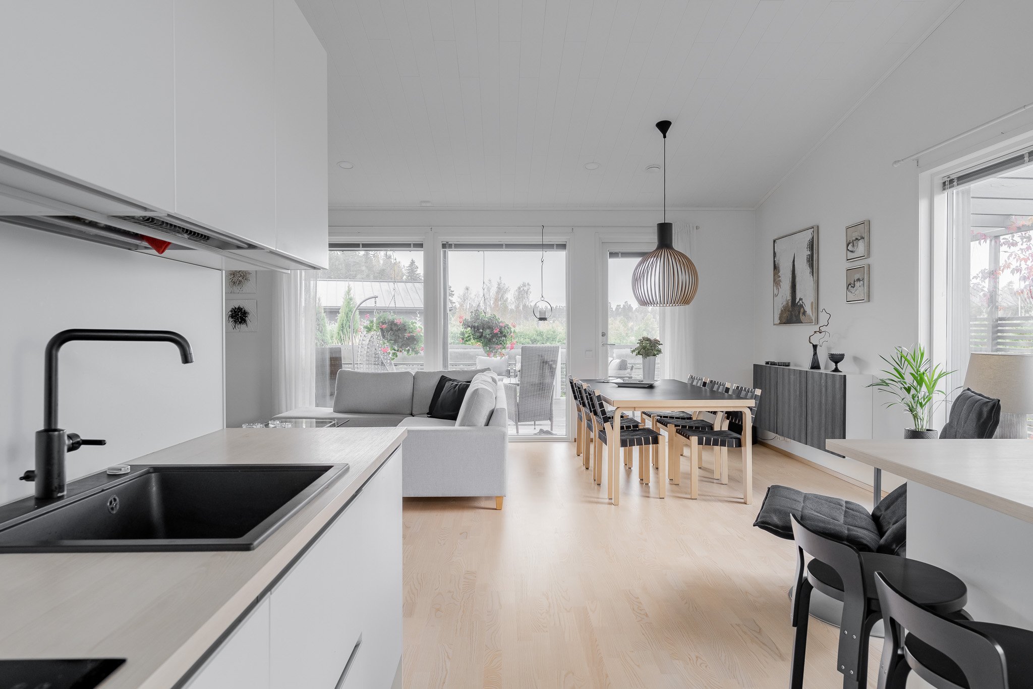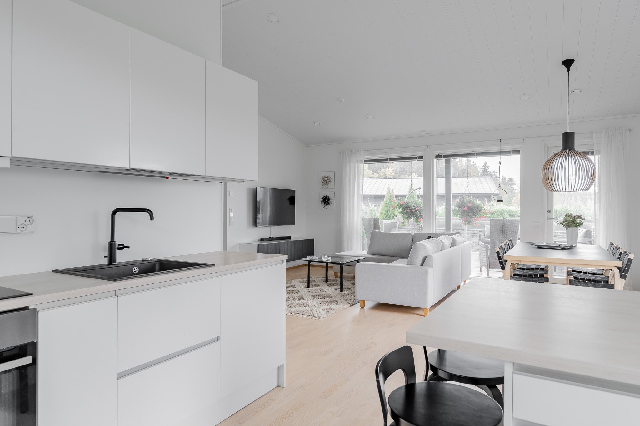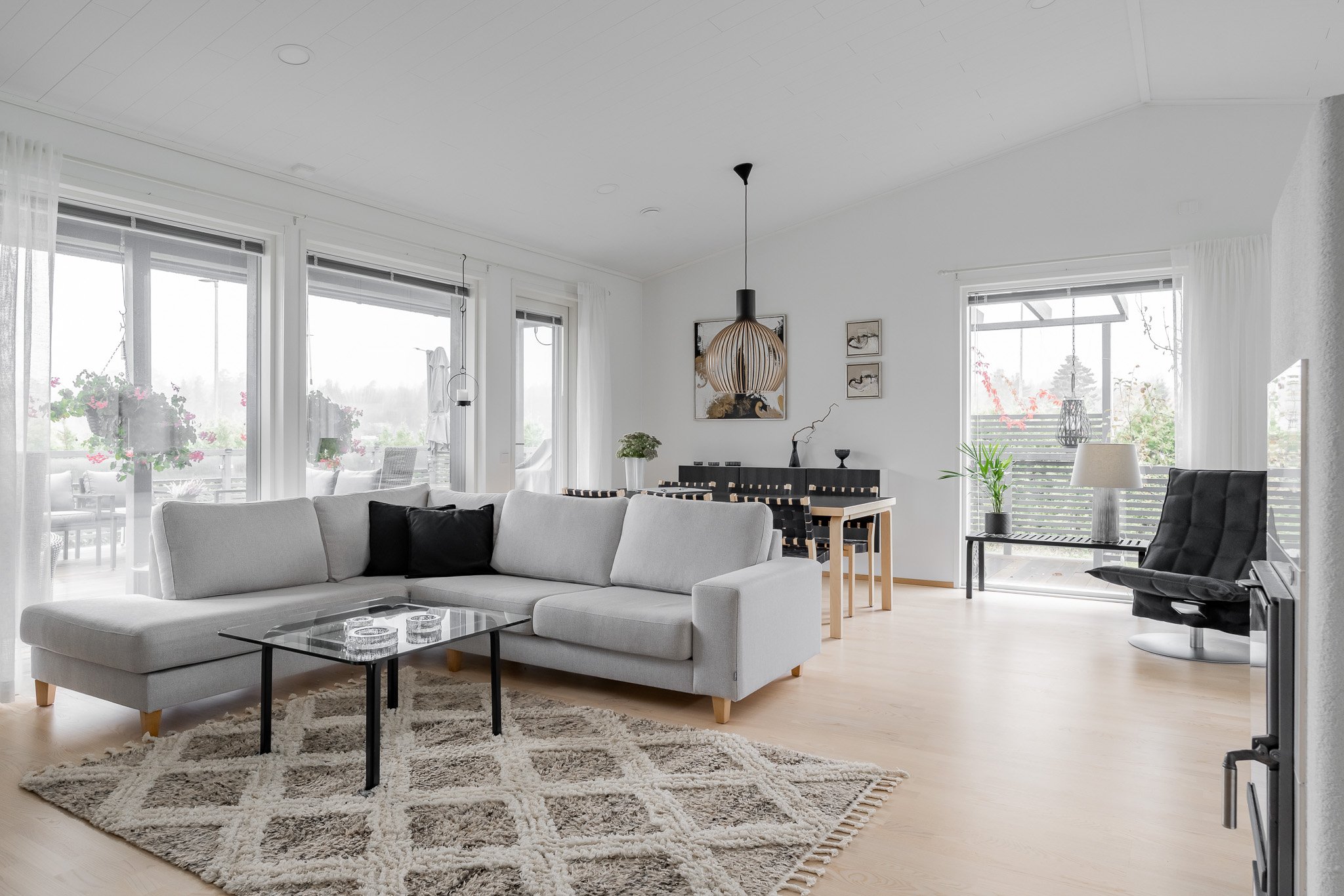 Talo on rakennettu kestävillä ratkaisuilla sekä viimeistelty tyylikkäästi kaikilta osin. Tarkkaan suunnitellun talon keskiössä ovat olleet suuret seurustelutilat sekä runsaan luonnonvalo määrän saavuttaminen sisätiloissa.