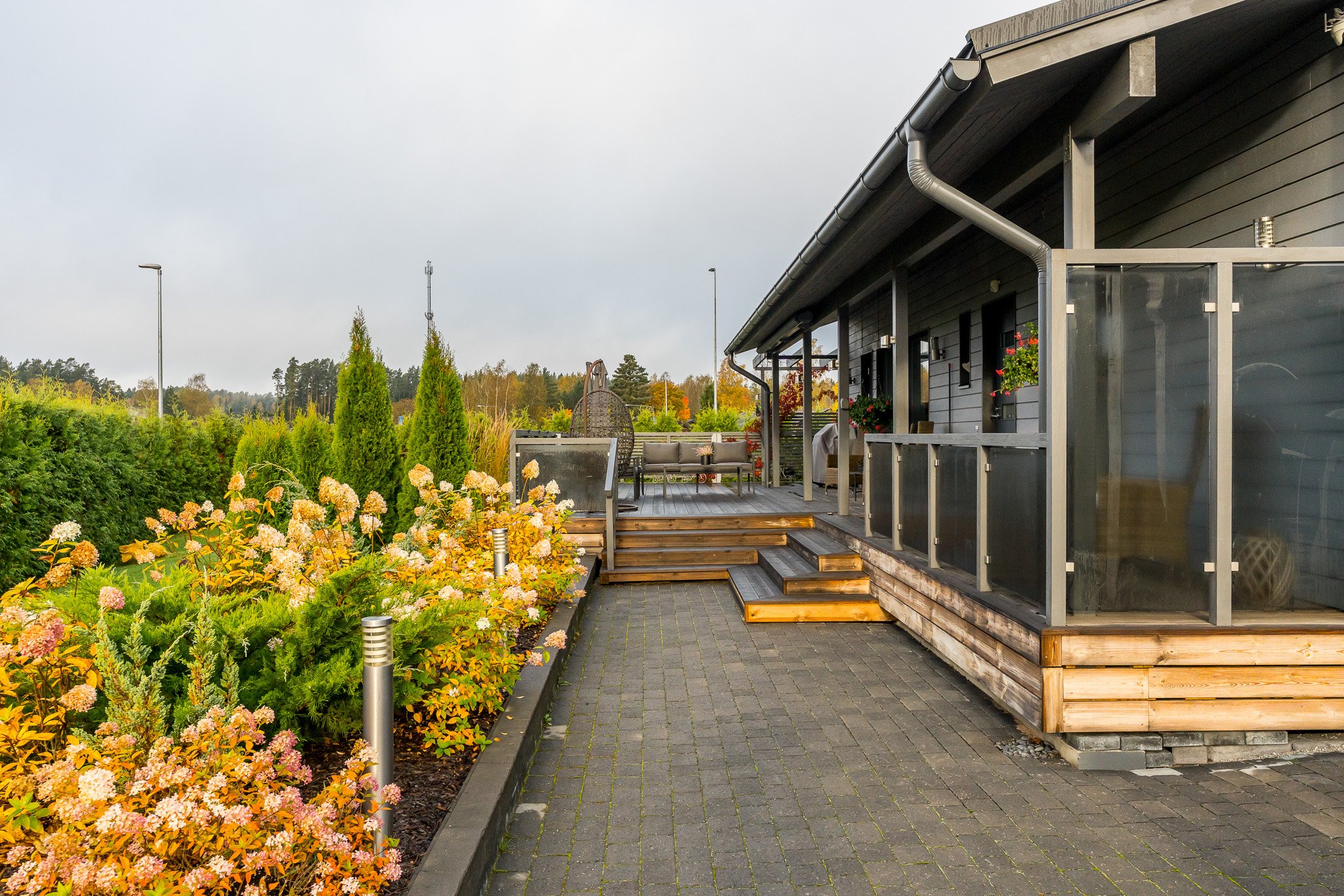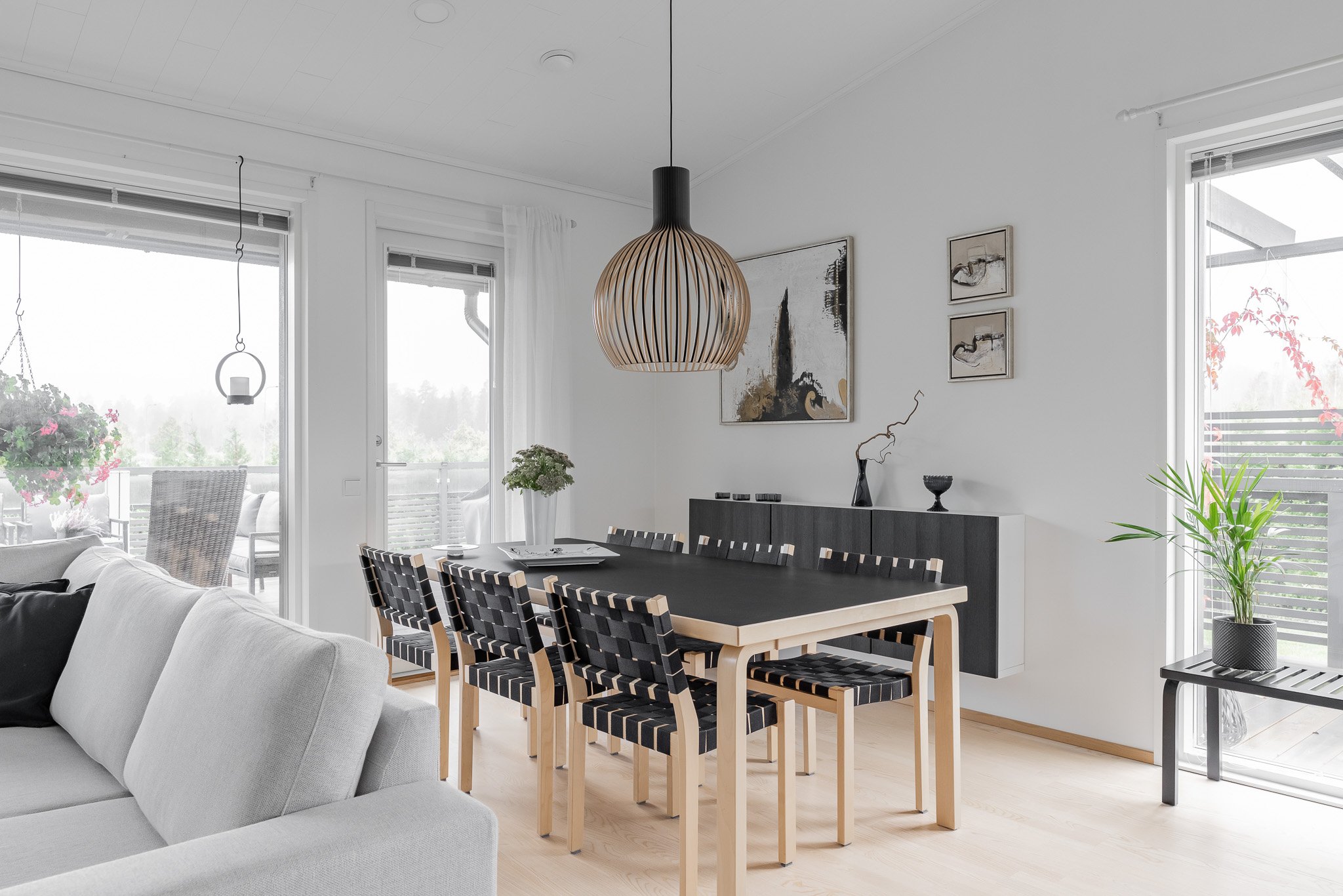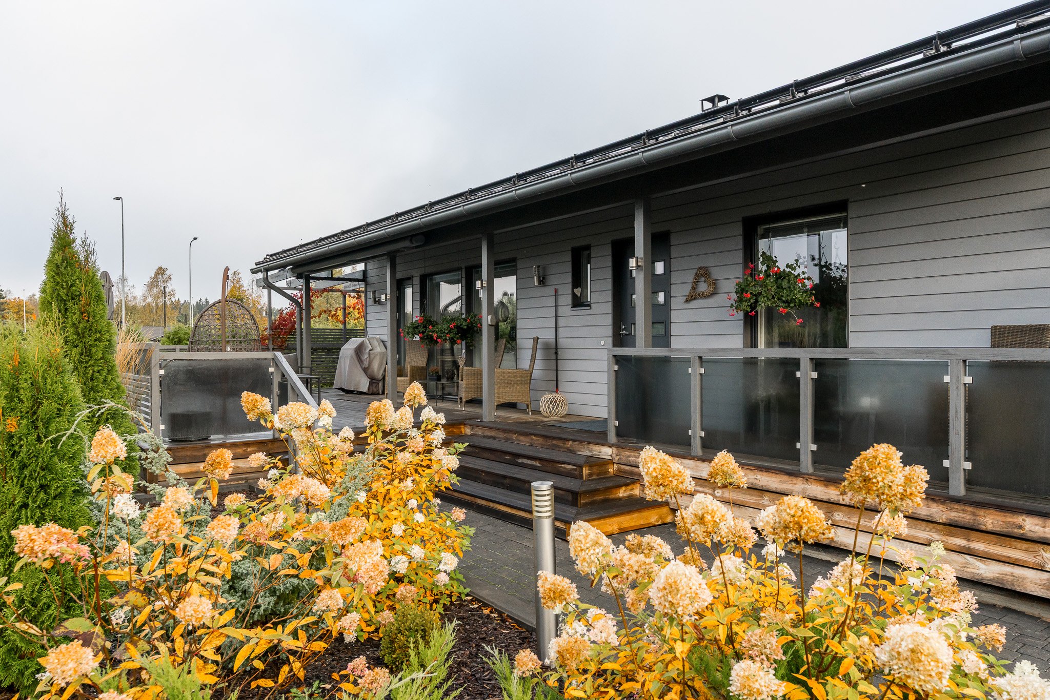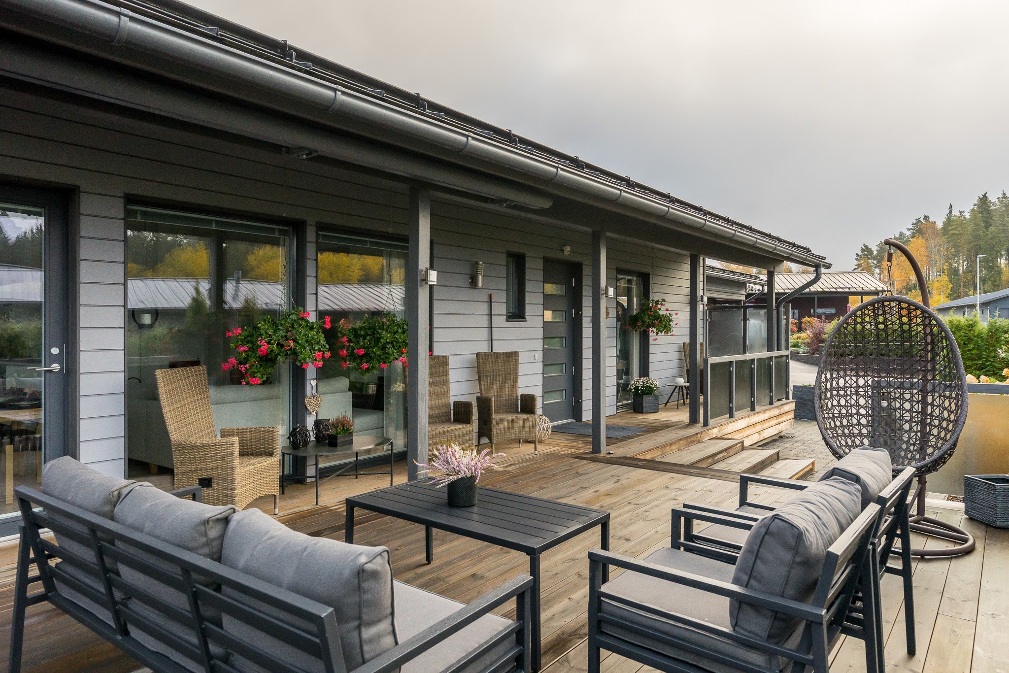 Talo on rakennettu kestävillä ratkaisuilla sekä viimeistelty tyylikkäästi kaikilta osin. Tarkkaan suunnitellun talon keskiössä ovat olleet suuret seurustelutilat sekä runsaan luonnonvalo määrän saavuttaminen sisätiloissa.