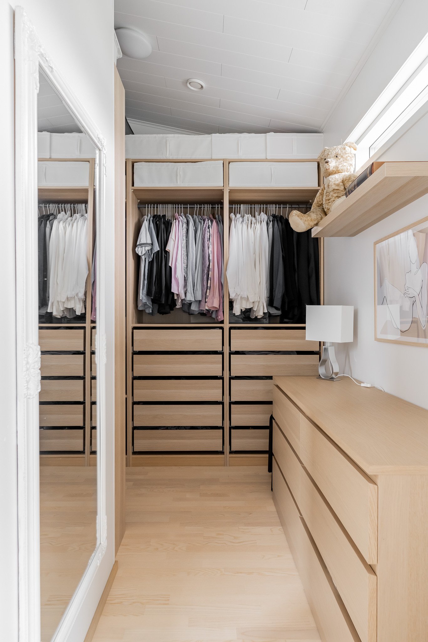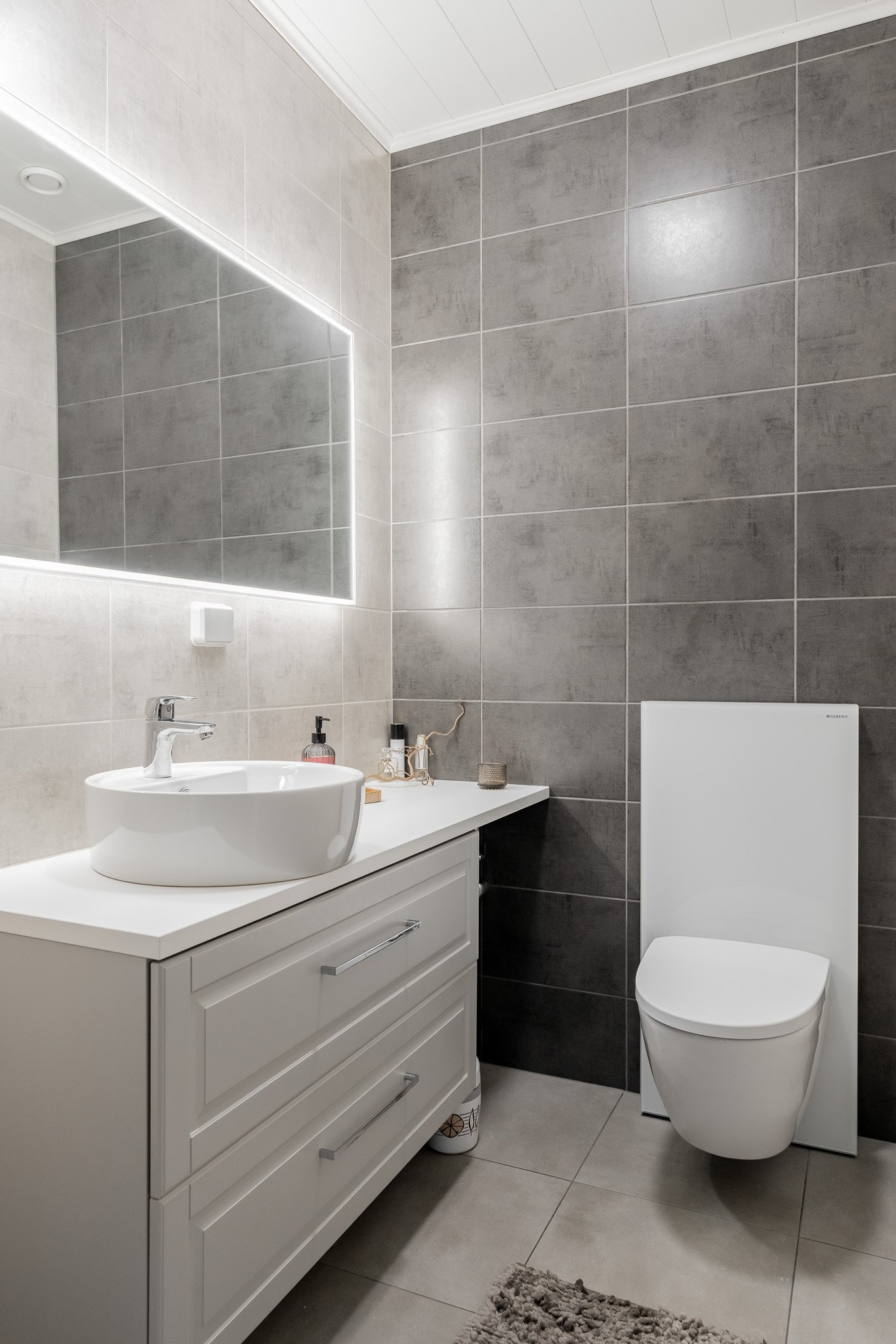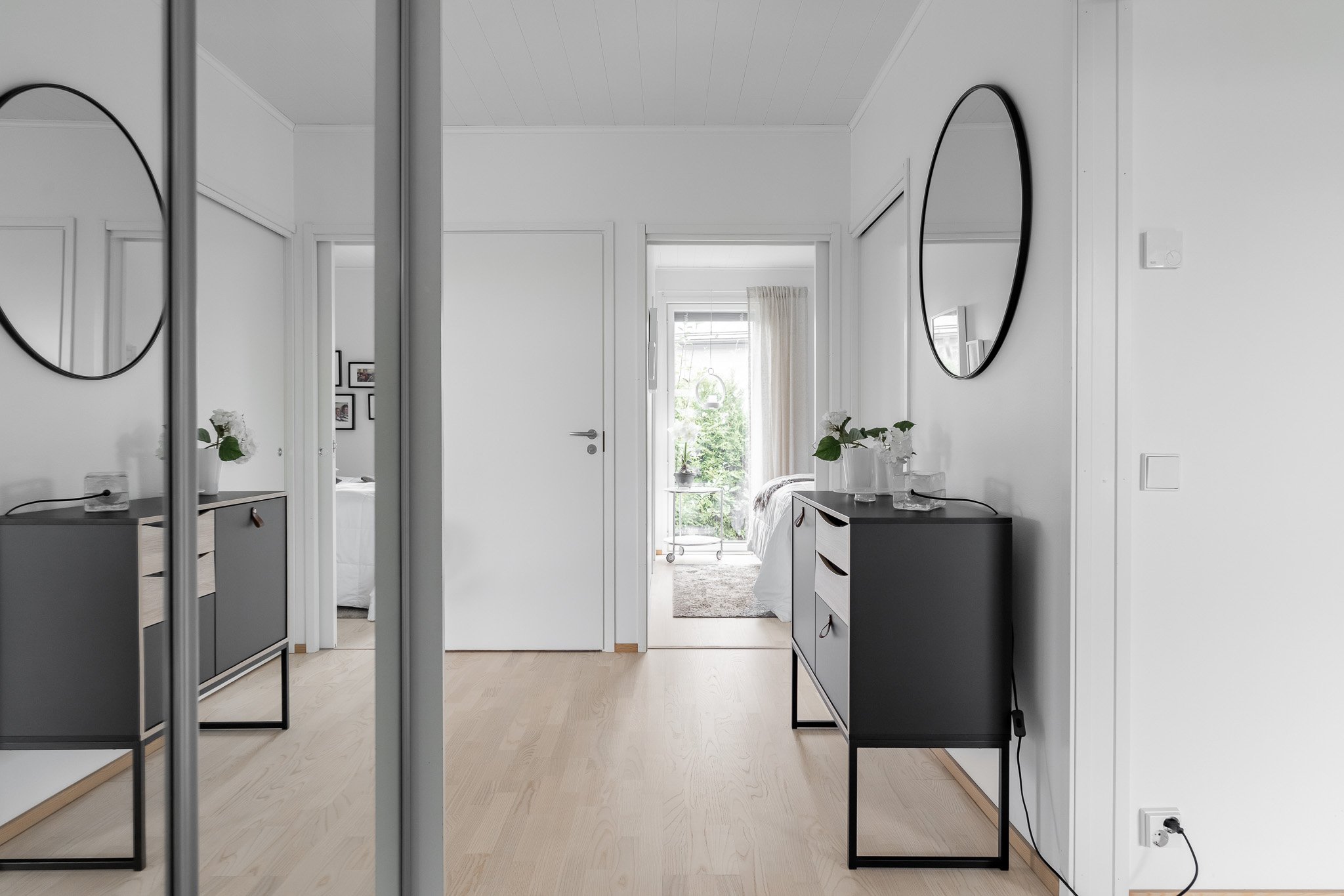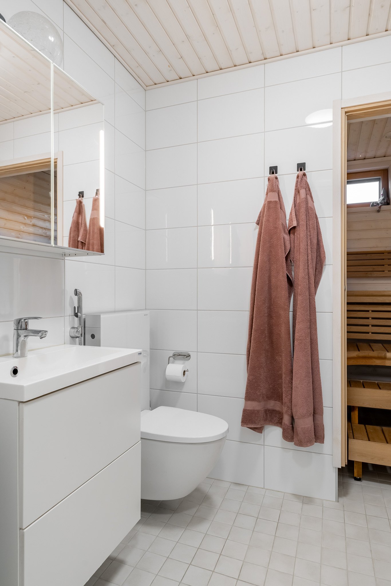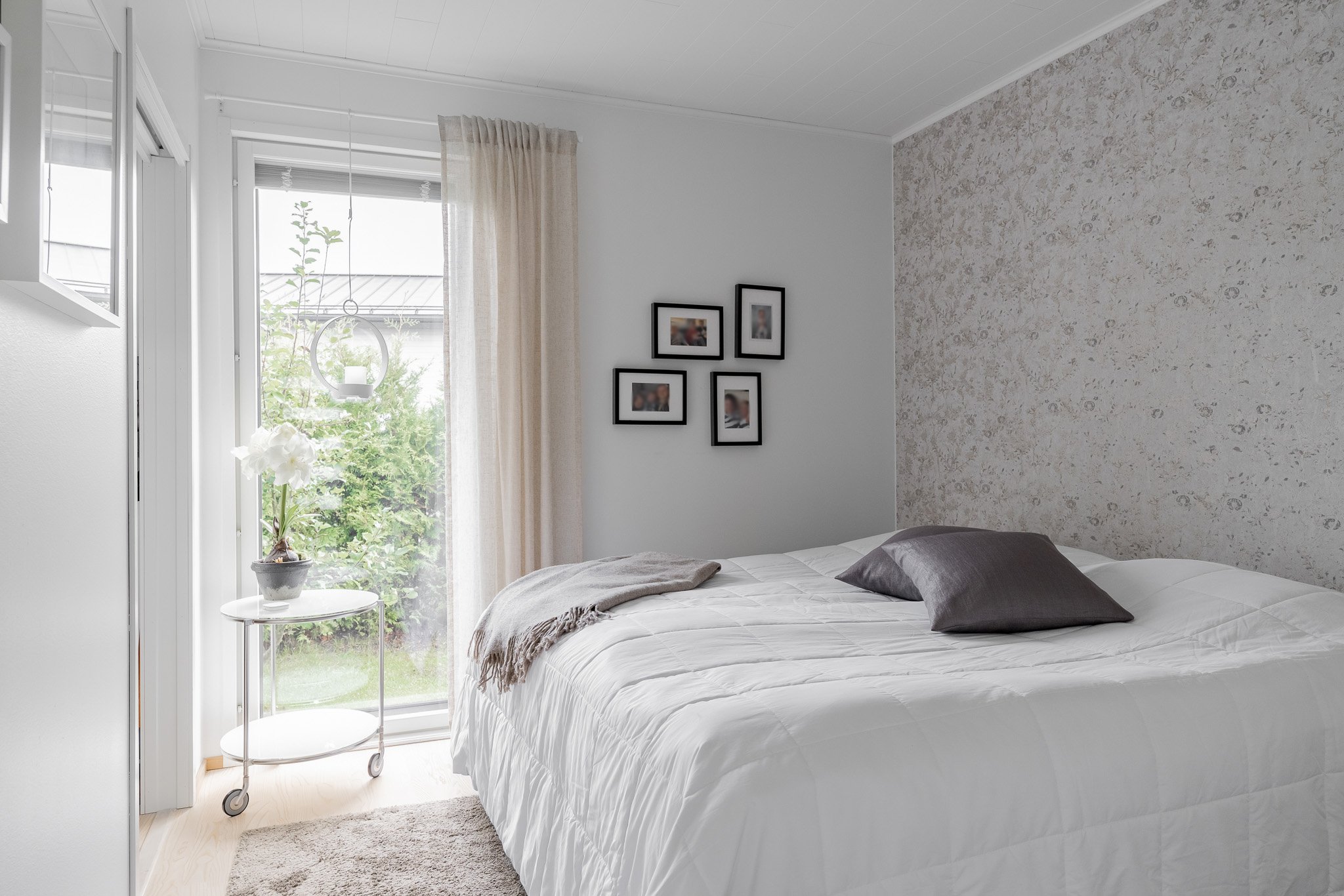 Kaksi makuuhuonetta joista suurempi päämakuuhuone kätkee sisäänsä täydellisesti järjestellyn walk-in vaatehuoneen. Erillinen wc-tila tyylikkäällä valaistulla peilillä sekä allaskaapistolla. Sauna ja pesutilat ovat yhtenäisen harmoniset ja tunnelmalliset. Talossa on myös kodinhoitohuone, josta on oma uloskäynti, mikä tekee arjen askareista sujuvia.