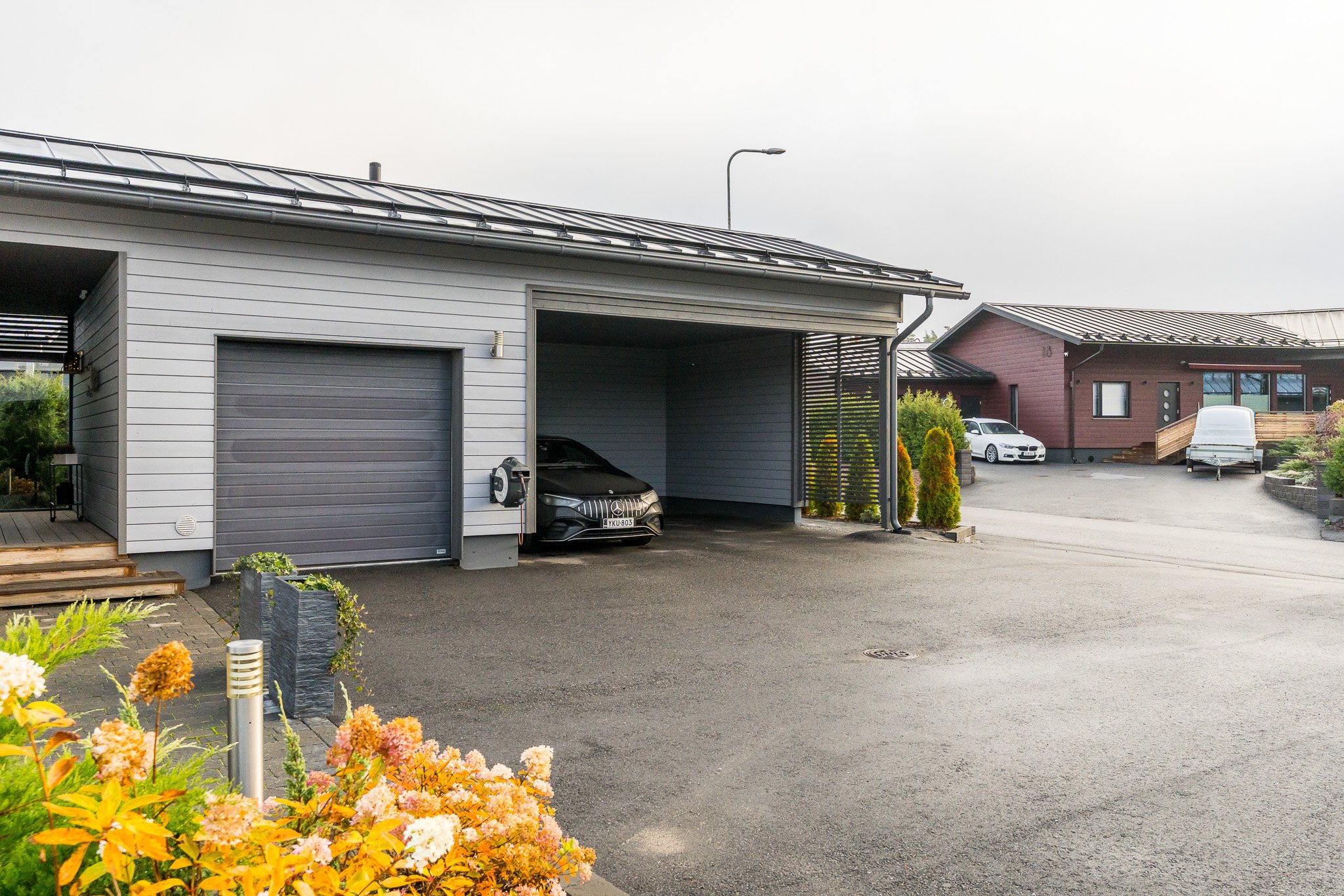 Autotallia lämmittää oma ilmalämpöpumppu, kahden auton katos, valokuitu sekä muut varusteet viimeistelevät tätä kodikasta taloa. Sijainti on rauhallinen, mutta silti lähellä kaupungin palveluita. Liikenneyhteydet ovat hyvät, ja alueella on erinomaiset pyöräilyreitit. Lähettyviltäsi löytyvät lähikauppa, koulu sekä päiväkoti.