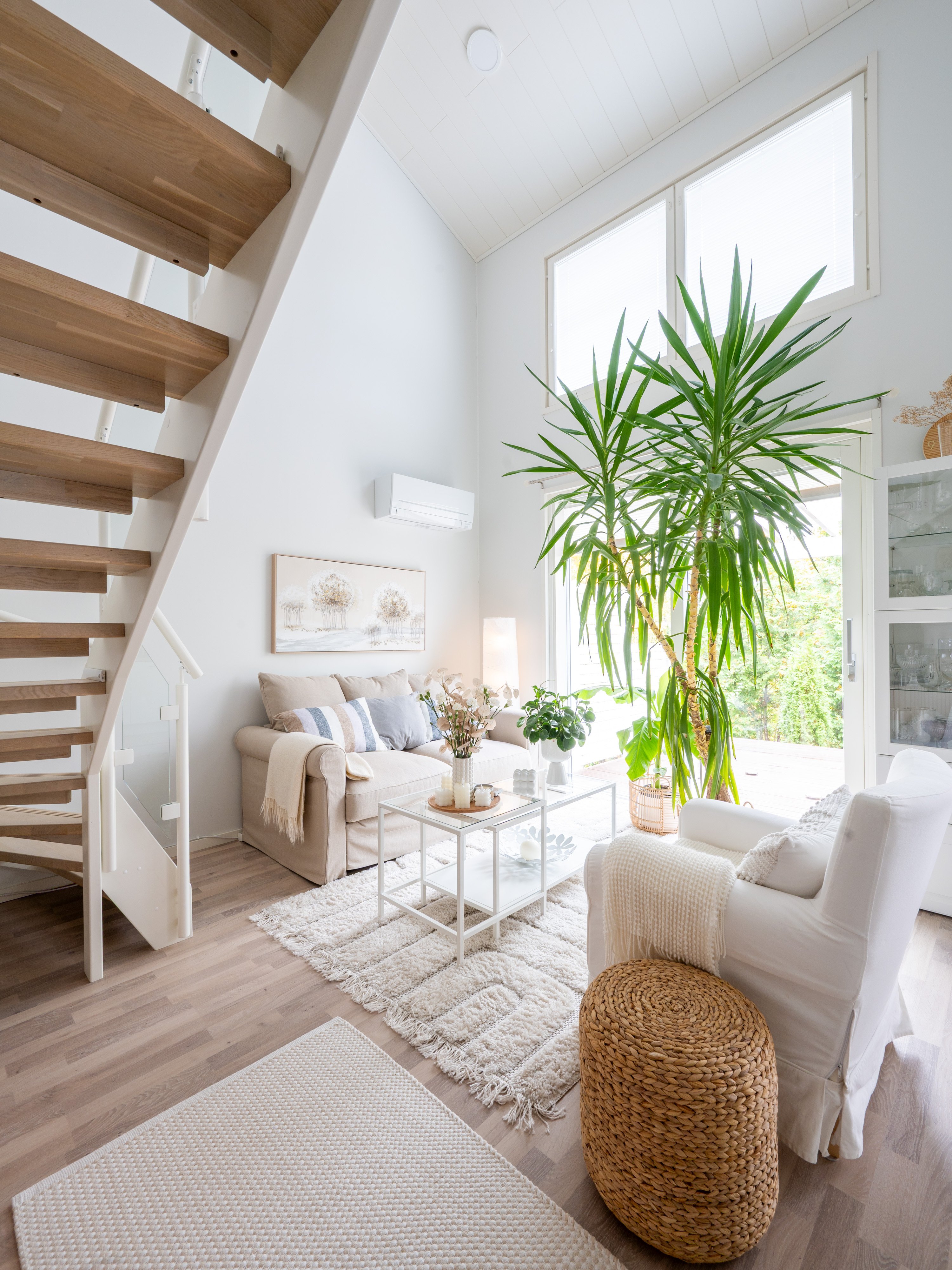 Harvinainen tilaisuus Hirsimäessä – upea paritalokoti huikealla huonekorkeudella.