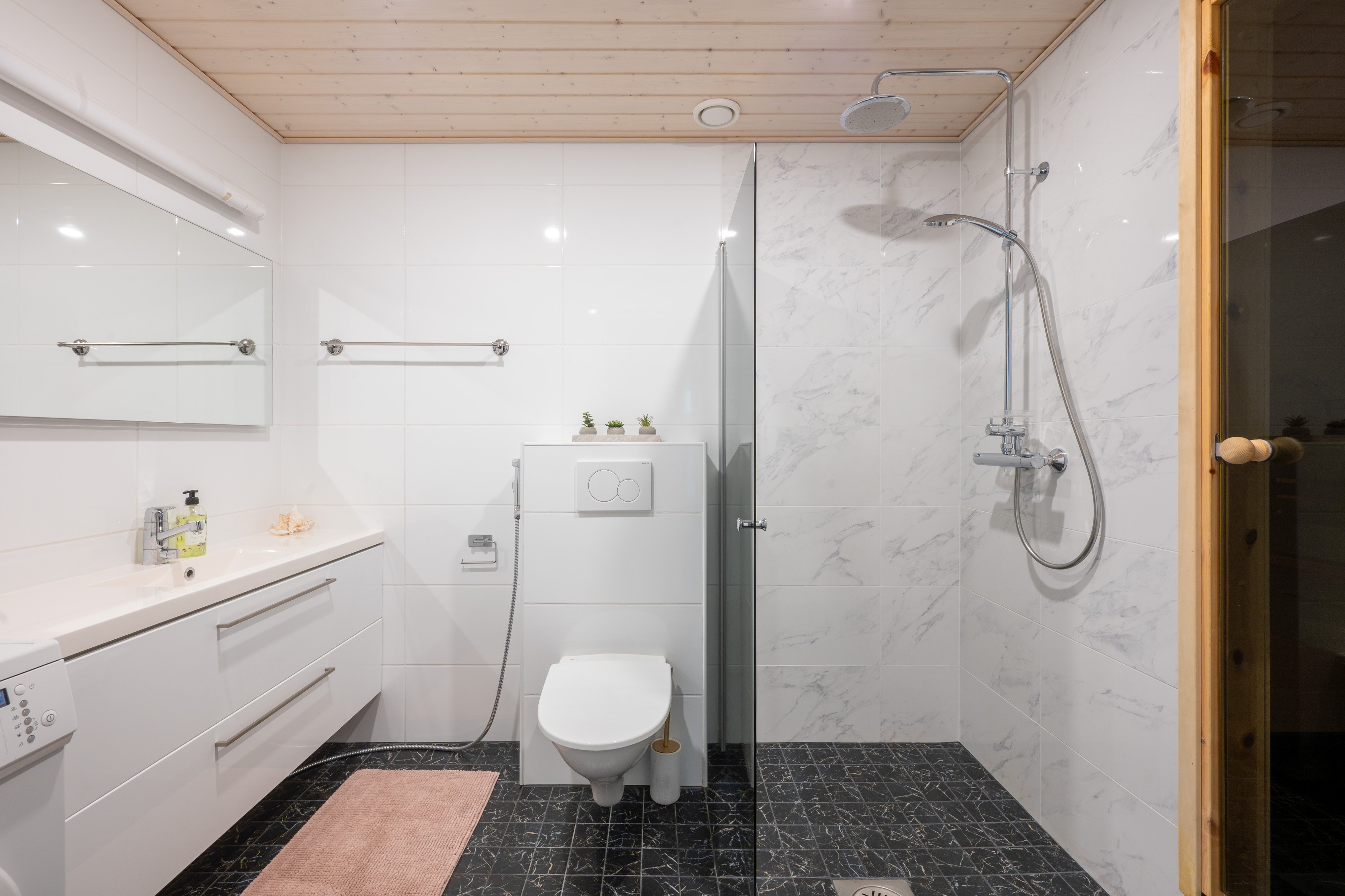 Vuonna 2019 valmistunut koti tarjoaa huoletonta asumista vuosiksi eteenpäin. Korkea huonekorkeus tekee olohuoneesta henkeäsalpaavan tilavan ja valoisan. Käytännöllinen pohjaratkaisu sisältää kaksi makuuhuonetta, työhuoneen (tai kolmannen makuuhuoneen), erillisen WC:n sekä kylpyhuoneen saunalla. Lisäksi kodissa on tilava 28 m2 terassi, varasto heti asunnon edessä sekä oma autokatospaikka.