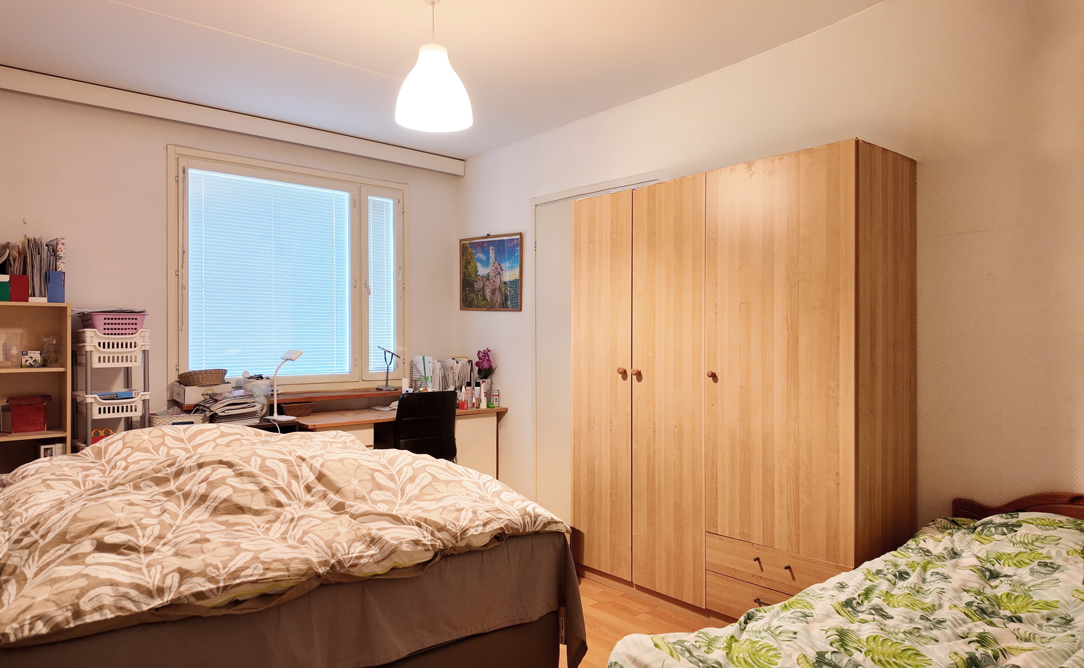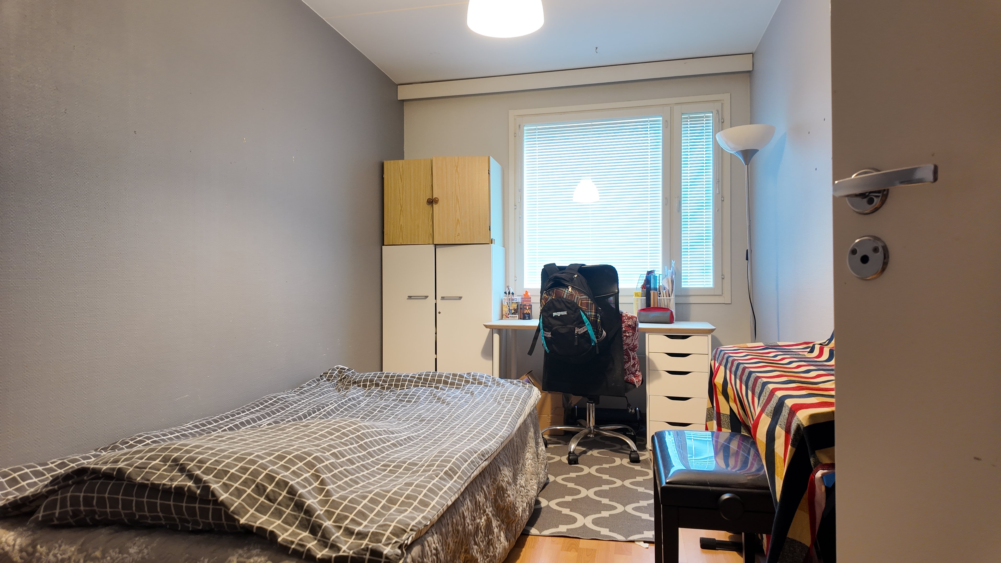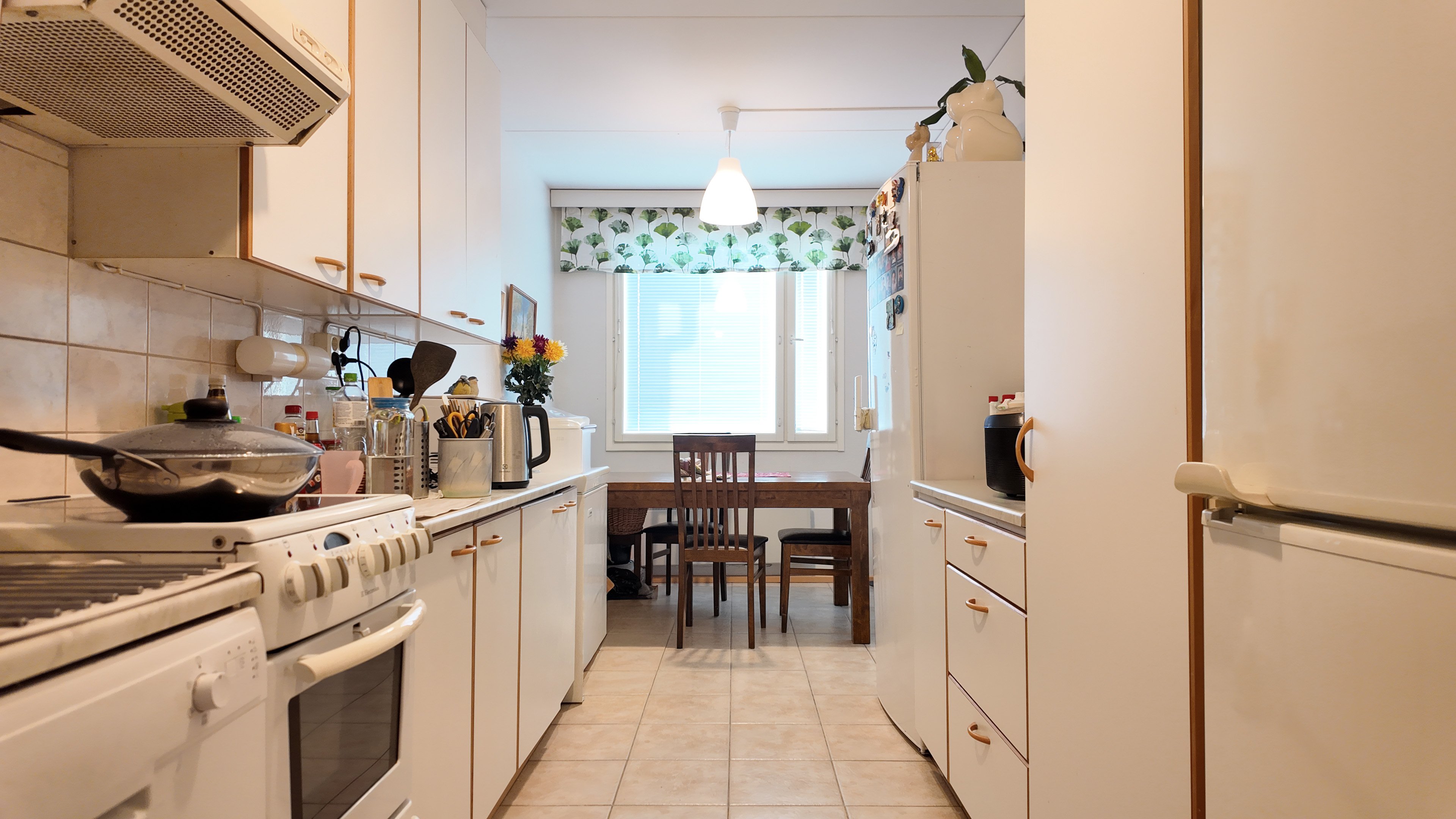 Asunnossa on kaksi makuuhuonetta ja avara olohuone, josta on käynti lasitetulle parvekkeelle. Keittiö on varustettu kaikilla tarvittavilla kodinkoneilla. Huoneisto on vuokrattu määräaikaisesti 1.8.2025–31.7.2026. Tämä tekee kohteesta mm. hyvän sijoitusasunnon.