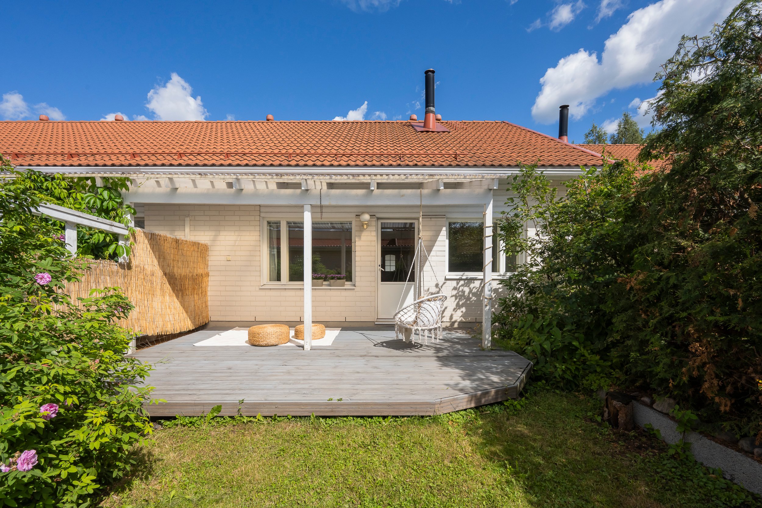 Valoisa läpitalon huoneisto runsaine säilytystiloineen, autokatospaikka omalla osakesarjalla, rentouttava sauna sekä suojaisa oma piha ja katettu terassi luovat täydelliset puitteet viihtyisään asumiseen. Varaava takka auttaa osaltaan lämmityskuluissa ja on ehdoton tunnelman luoja.