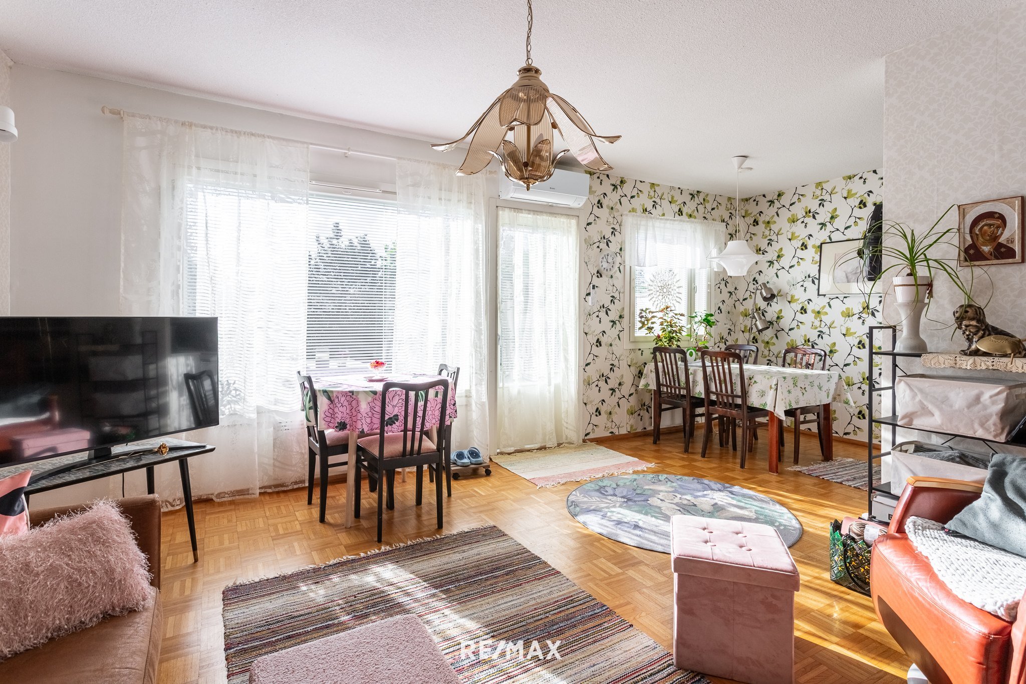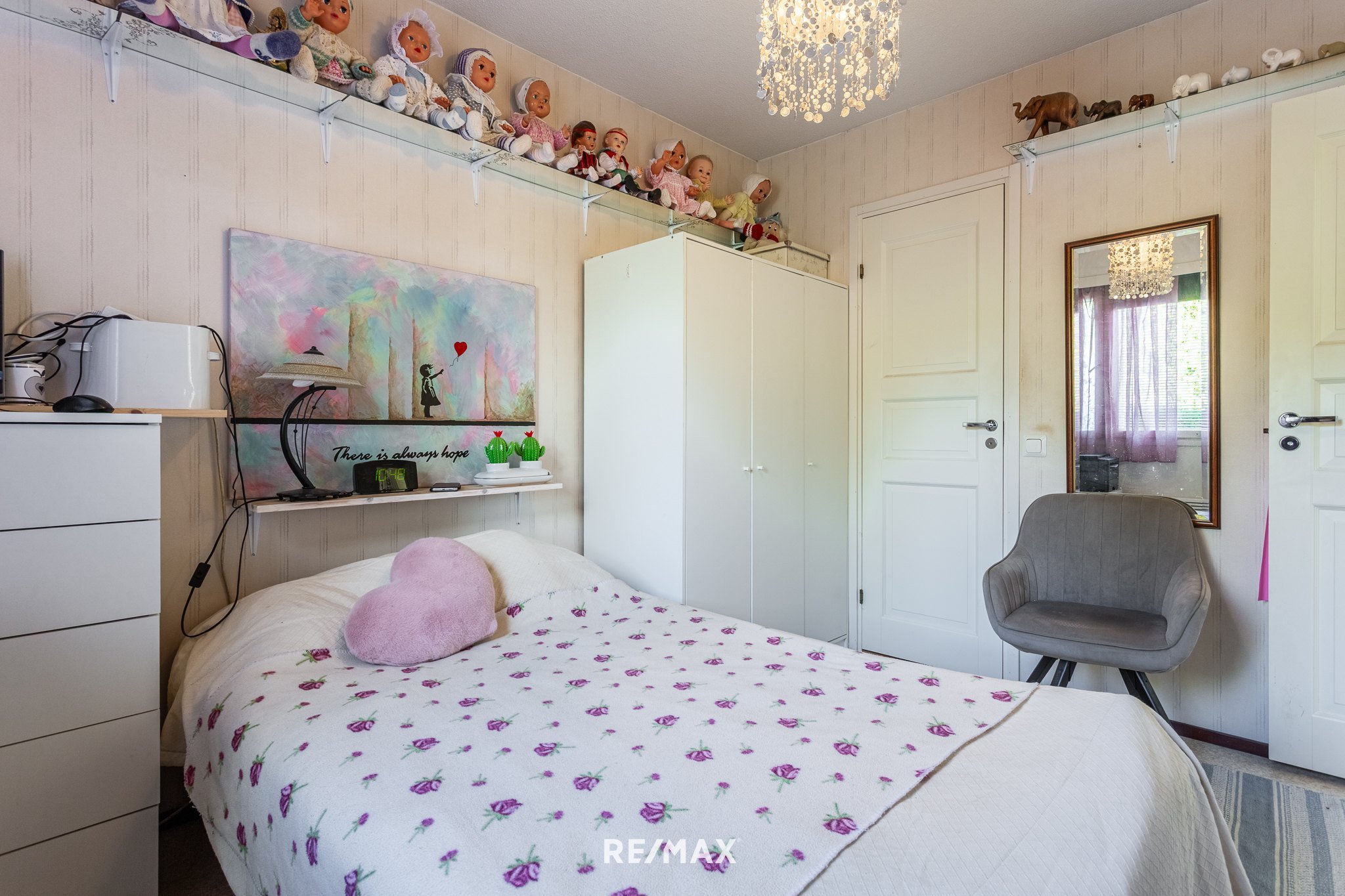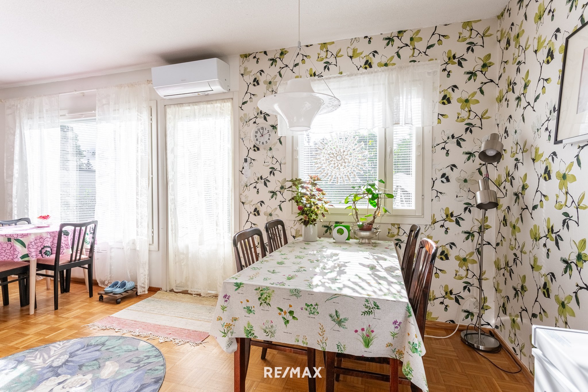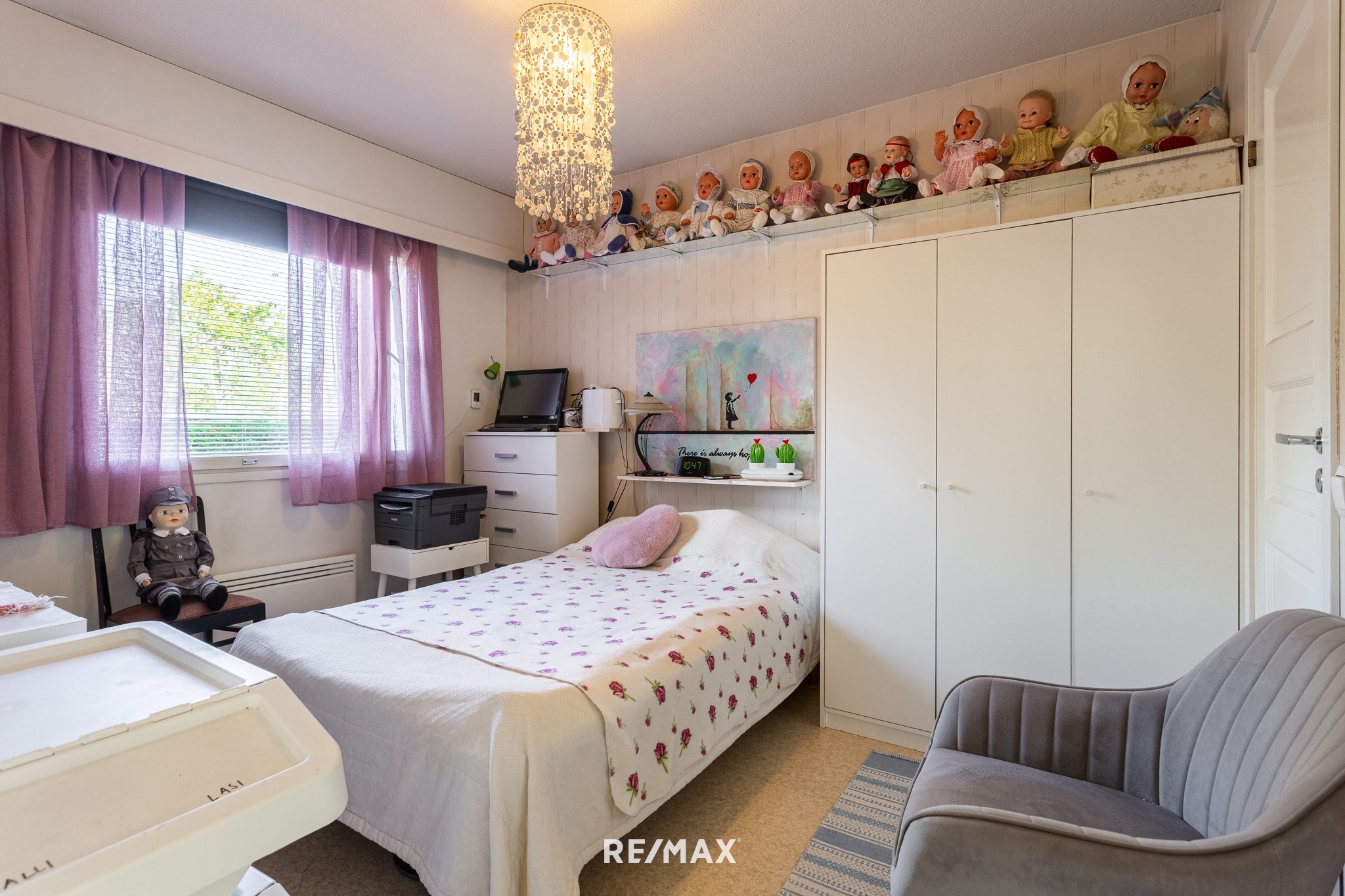 Sähkölämmityksen tukena 2024 asennettu ilmalämpöpumppu, joka hoitaa myös kesähelteillä viilennyspuolen. Erillinen wc ja vaatehuone. Aurinkoinen, aidattu takapiha.