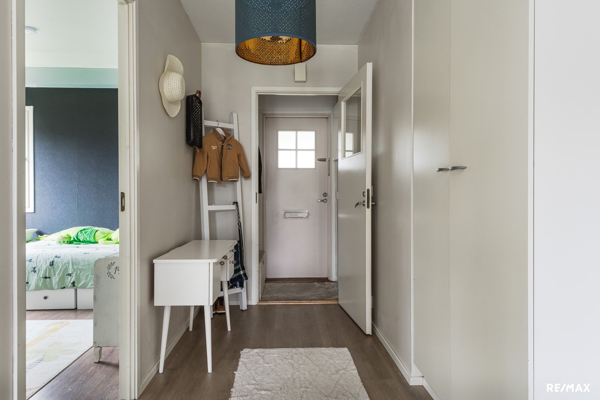 Asunnossa on kaksi tilavaa makuuhuonetta, jotka on sijoitettu eteisen molemmin puolin antaen nukkumarauhaa perheenjäsenille, joilla erilaiset unirytmit. Keittiö on oma tilansa, mutta kuitenkin ruokatilan kautta yhteydessä olohuoneeseen. Etelään avautuva nurmipiha on aidattu puuaidalla ja kulku sinne tapahtuu joko suoraan olohuoneesta tai pihaportin kautta. Asunnossa on myös oma sauna, ilmalämpöpumppu ja valoo-valokuituliittymä.