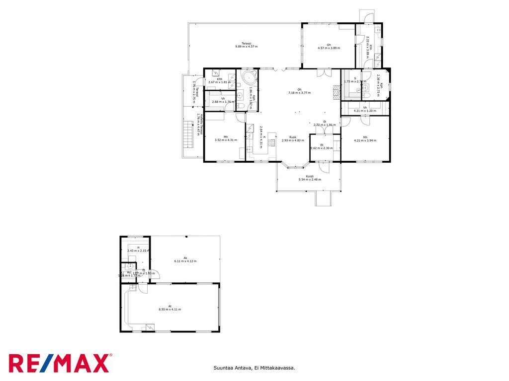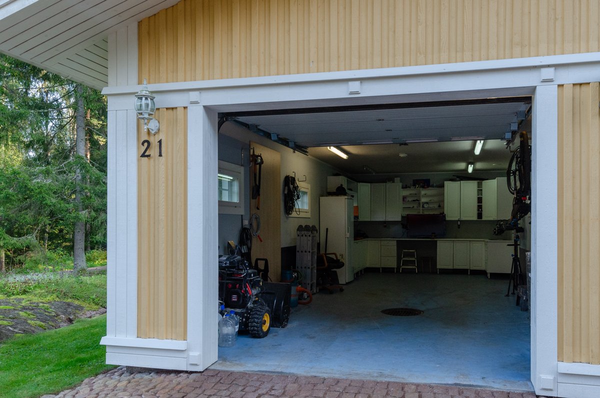 Kokonaisuuteen kuuluu omakotitalon lisäksi autotalli ja autokatos, bonuksena iso sulakekoko, joka mahdollistaa latauspisteen sähköautolle. Autotallin taakse sopii vaikka vene talvisäilöön. Autotallissa WC, lämmin ja kylmä vesi sekä lattialämmitys.