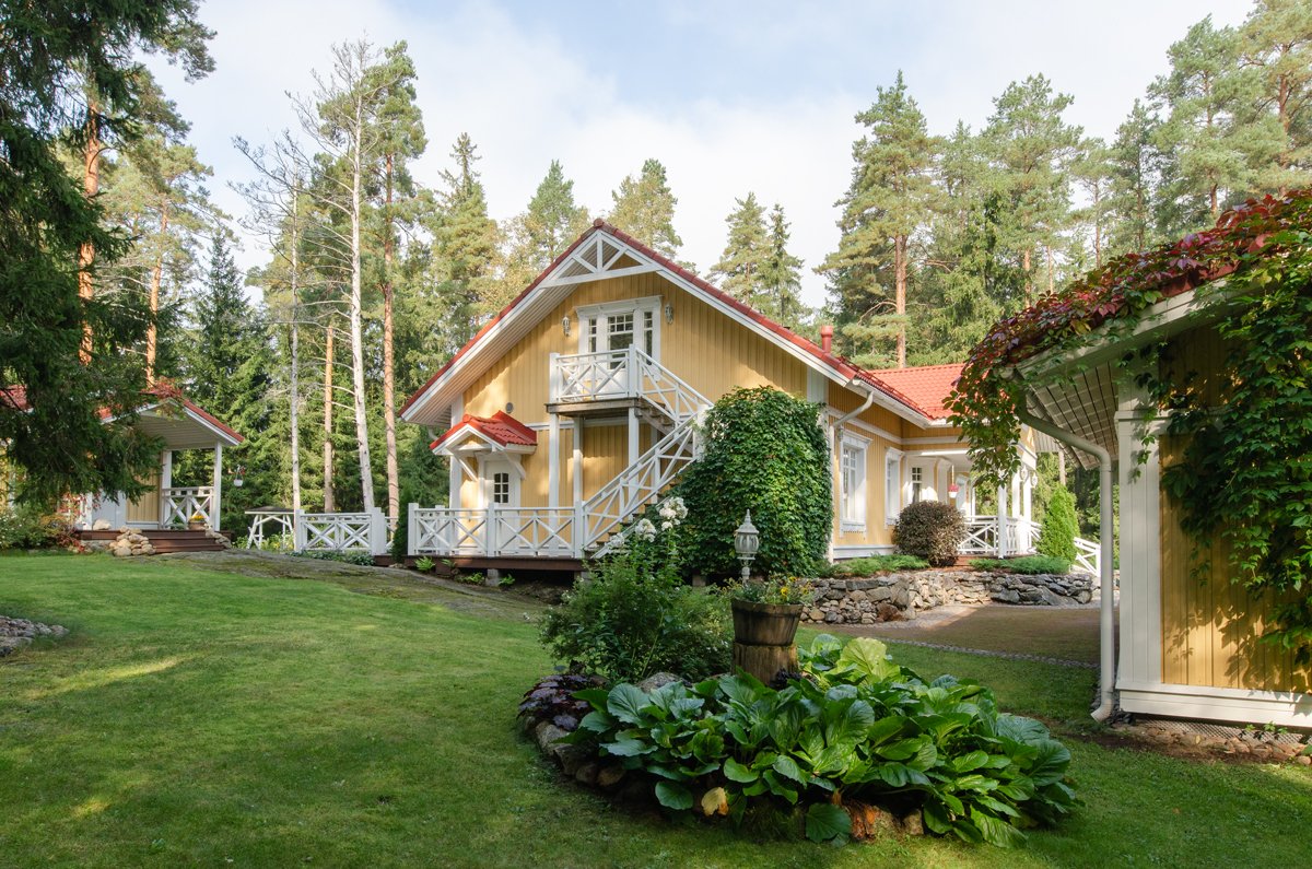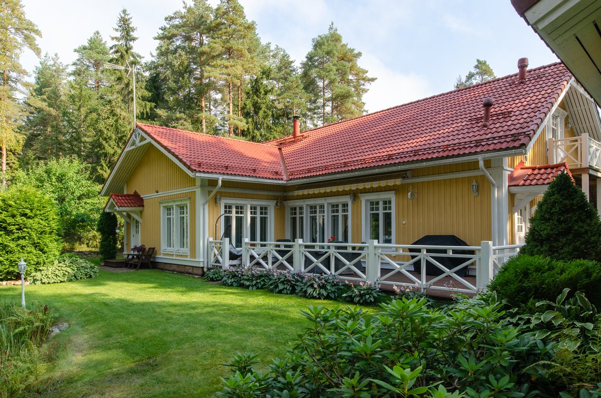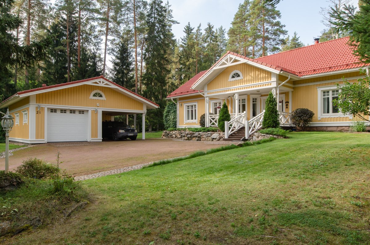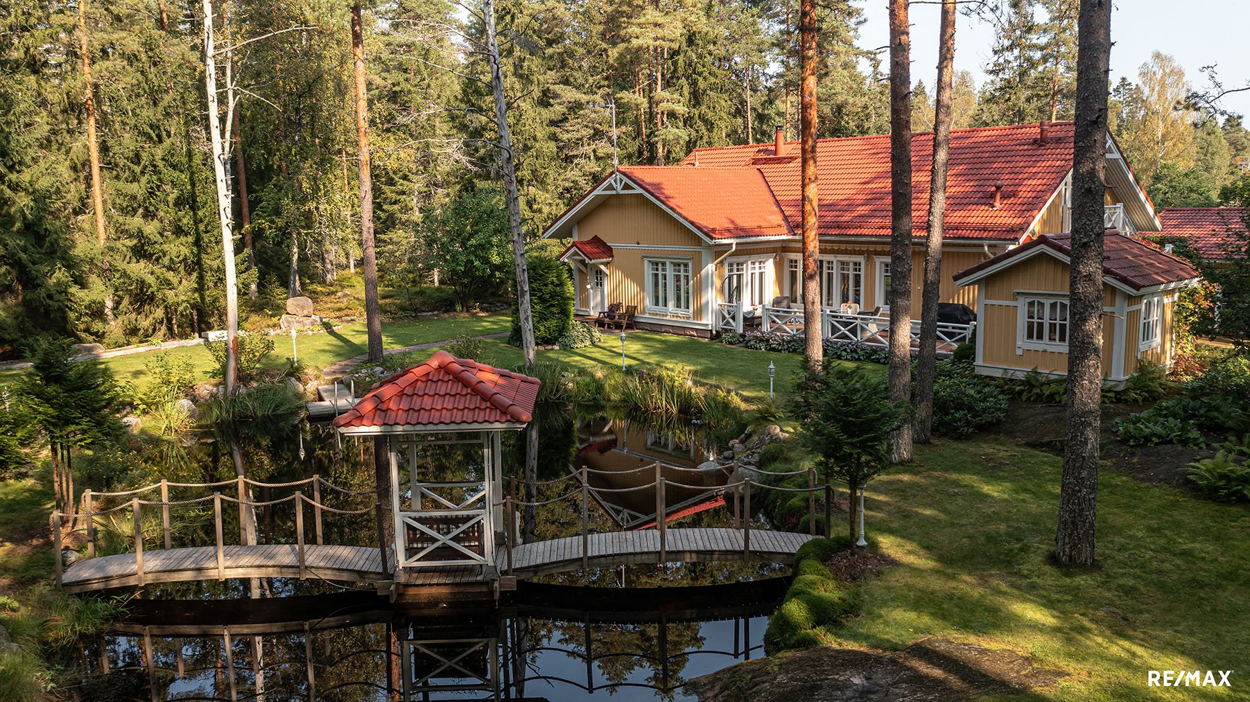 Talosta huokuu laatu ja hillitty luksus. Korkea olohuone suurine ikkunoineen luo valoisan ja avaran tunnelman. Moderni Domus-keittiö kivitasoineen ja laadukkaine Smegin kodinkoneineen ovat merkki laadusta. Talossa on kaksi kylpyhuonetta, joista toisessa on suuri poreamme. Takapihan luonnonlampi on ollut jatkuvasti käytössä uimiseen. Osa pihasta on metsää, josta voi poimia mustikoita. Kauriit, peurat ja jänikset vierailevat takapihalla. Päättyvän tien toiseksi viimeinen talo.