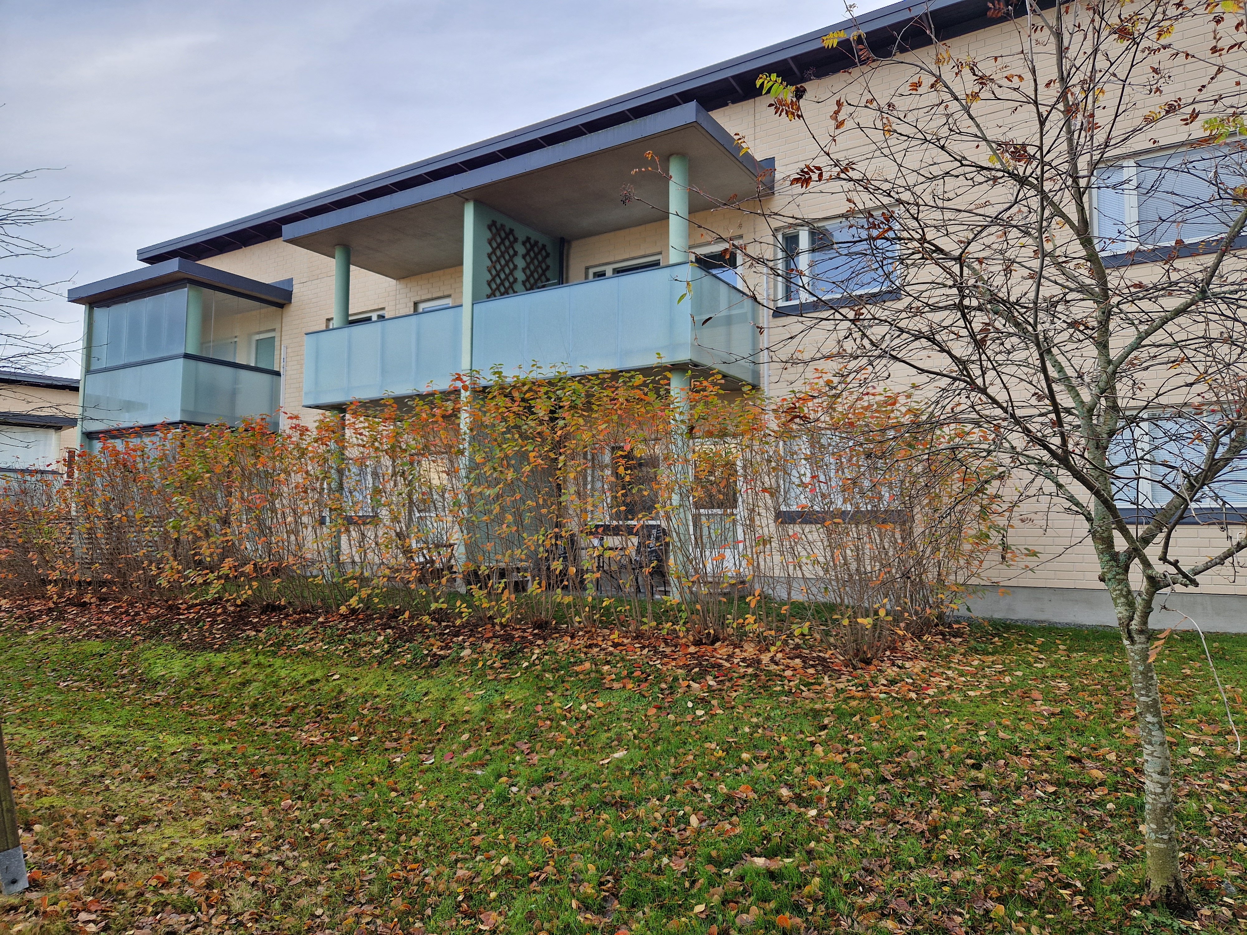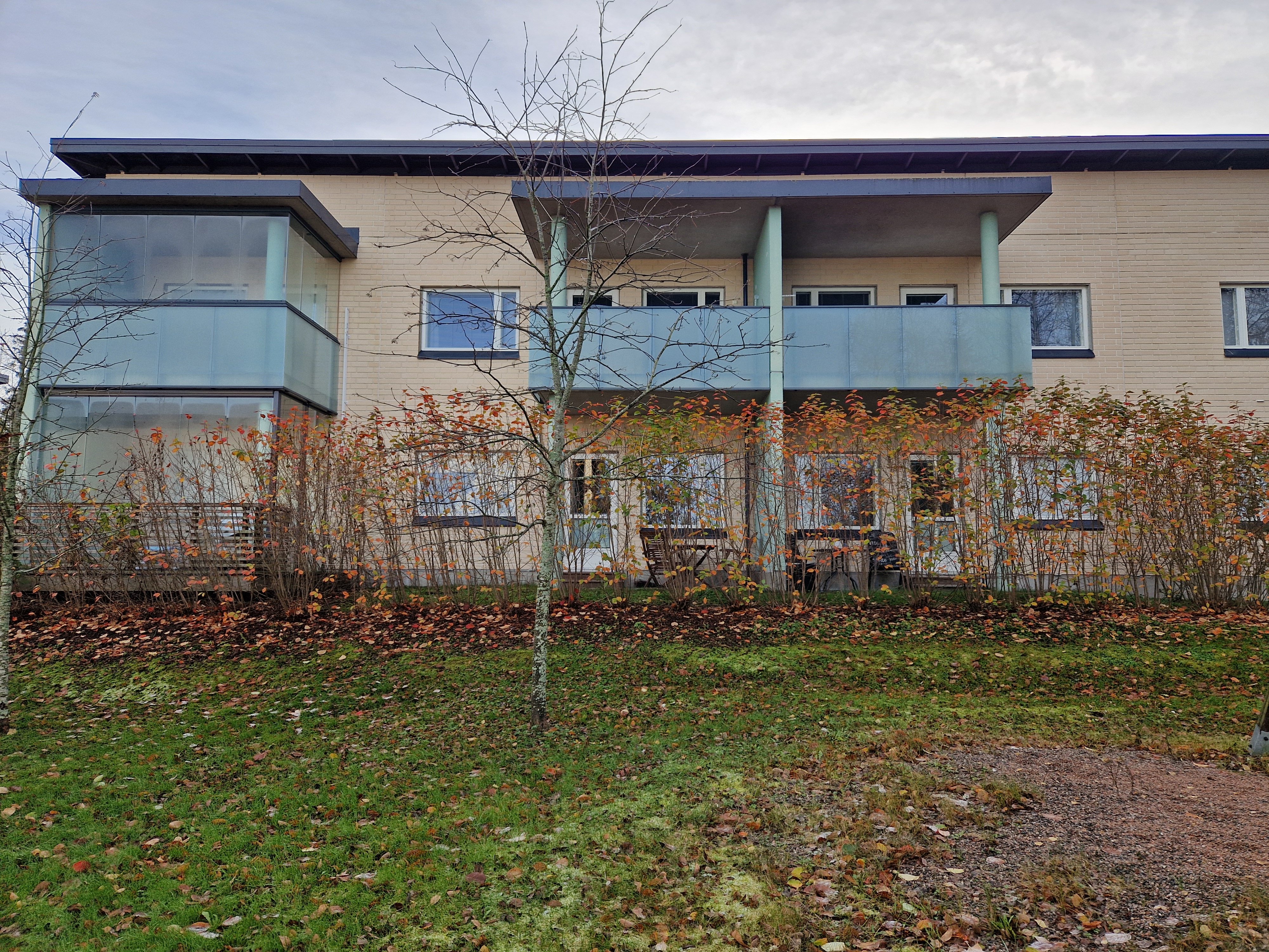 Valoisa ja viehättävä luhtitalokaksio pihalla