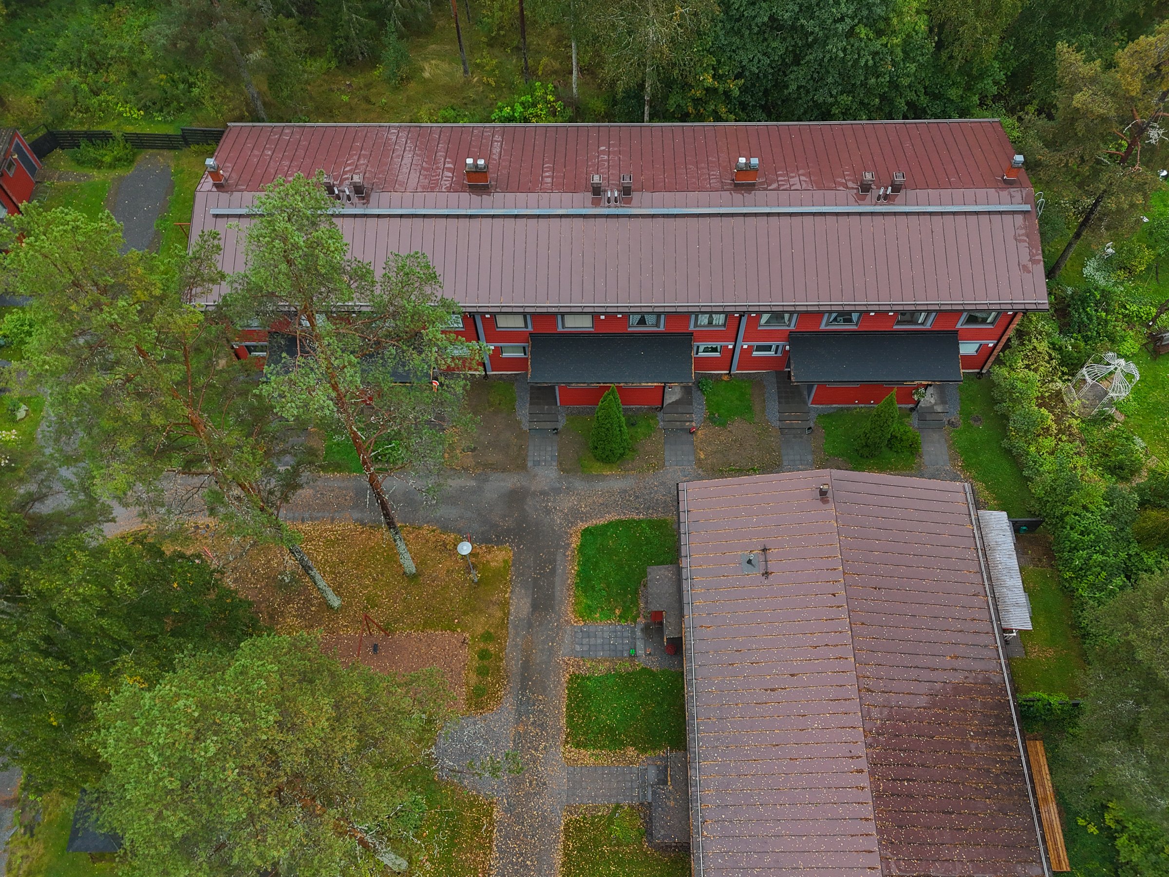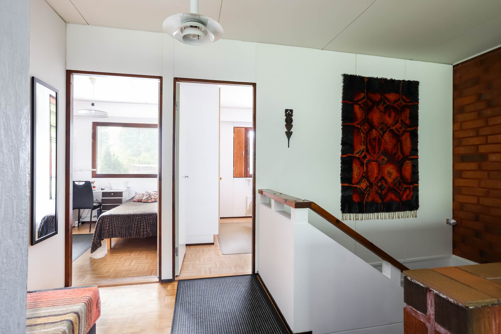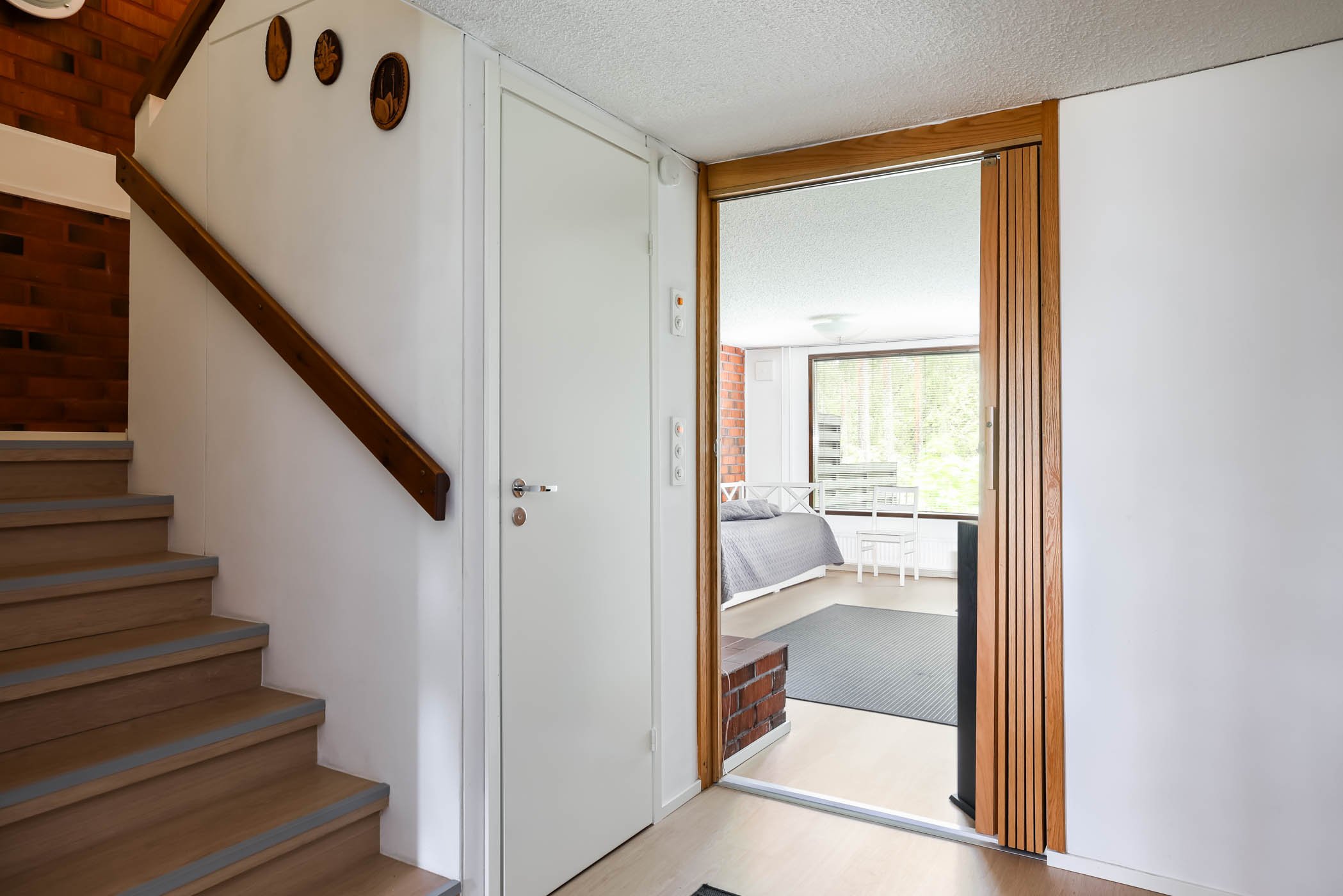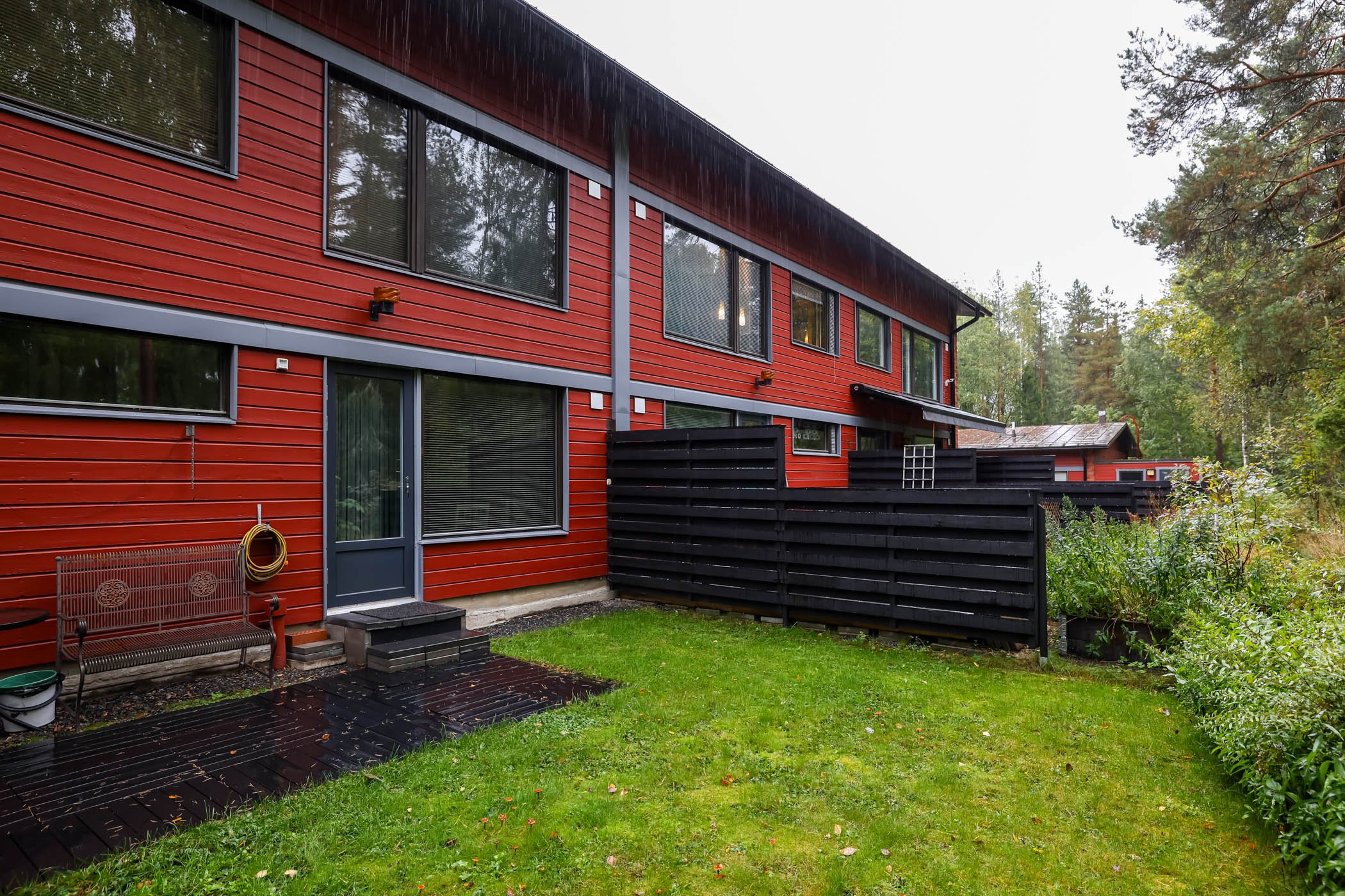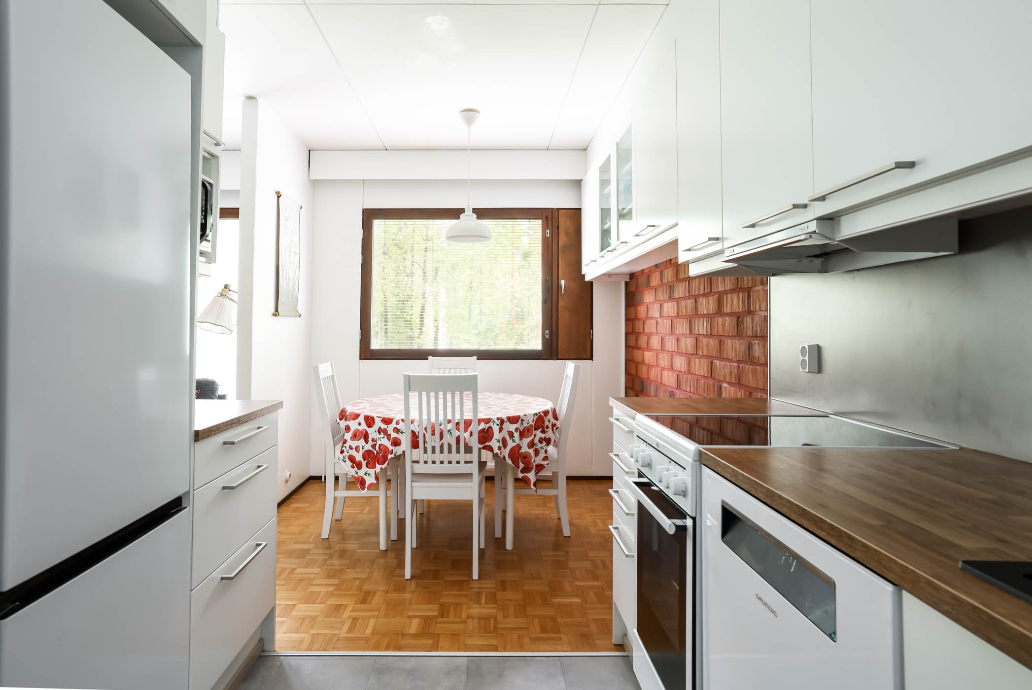 Tämän kodin keittiö on remontoitu laadukkaasti. Sen yhteydessä on viihtyisä paikka ruokailuryhmälle, josta tila yhdistyy luontevasti olohuoneeseen. Yläkerrassa on kaksi makuuhuonetta, alakerrasta löytyy kolmas makuuhuone, sekä tunnelmallinen takkahuone, joka toimisi hyvin esim. vanhempien makuuhuoneena. Takkahuoneesta on käynti etelänpuoleiselle terassille sekä takapihalle, jonka metsänäkymät luovat rauhallisen ja luonnonläheisen ympäristön oleskeluun.