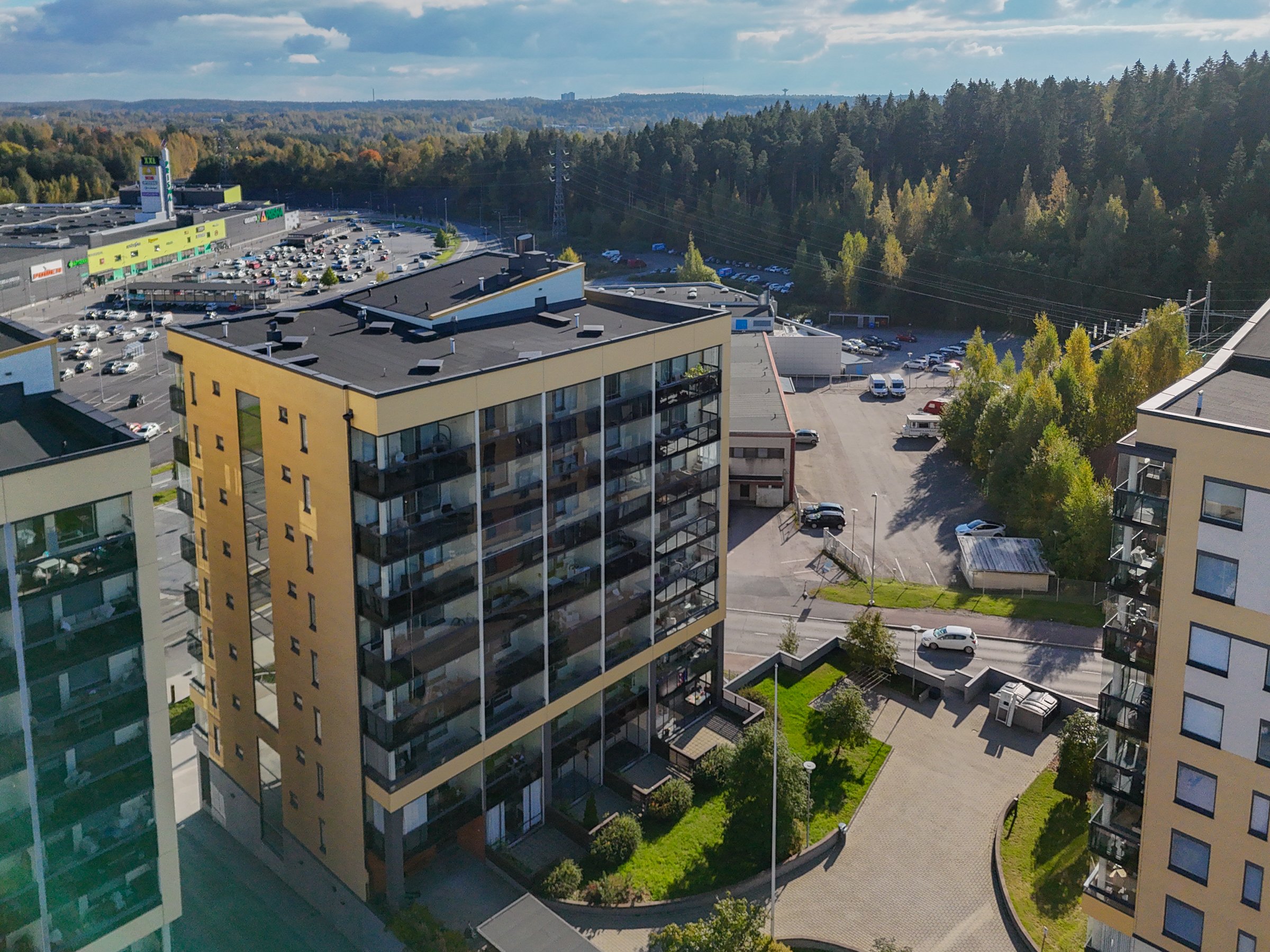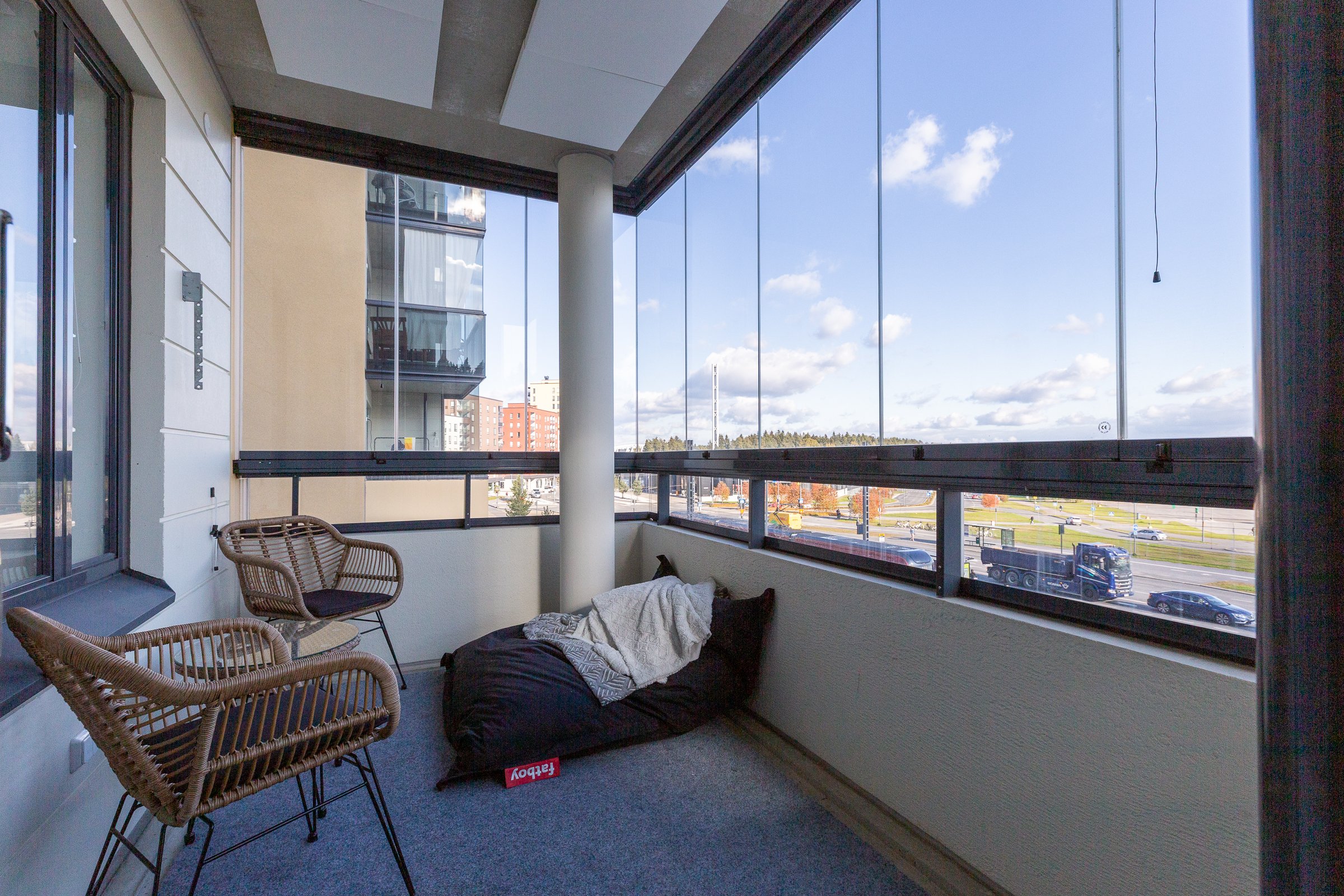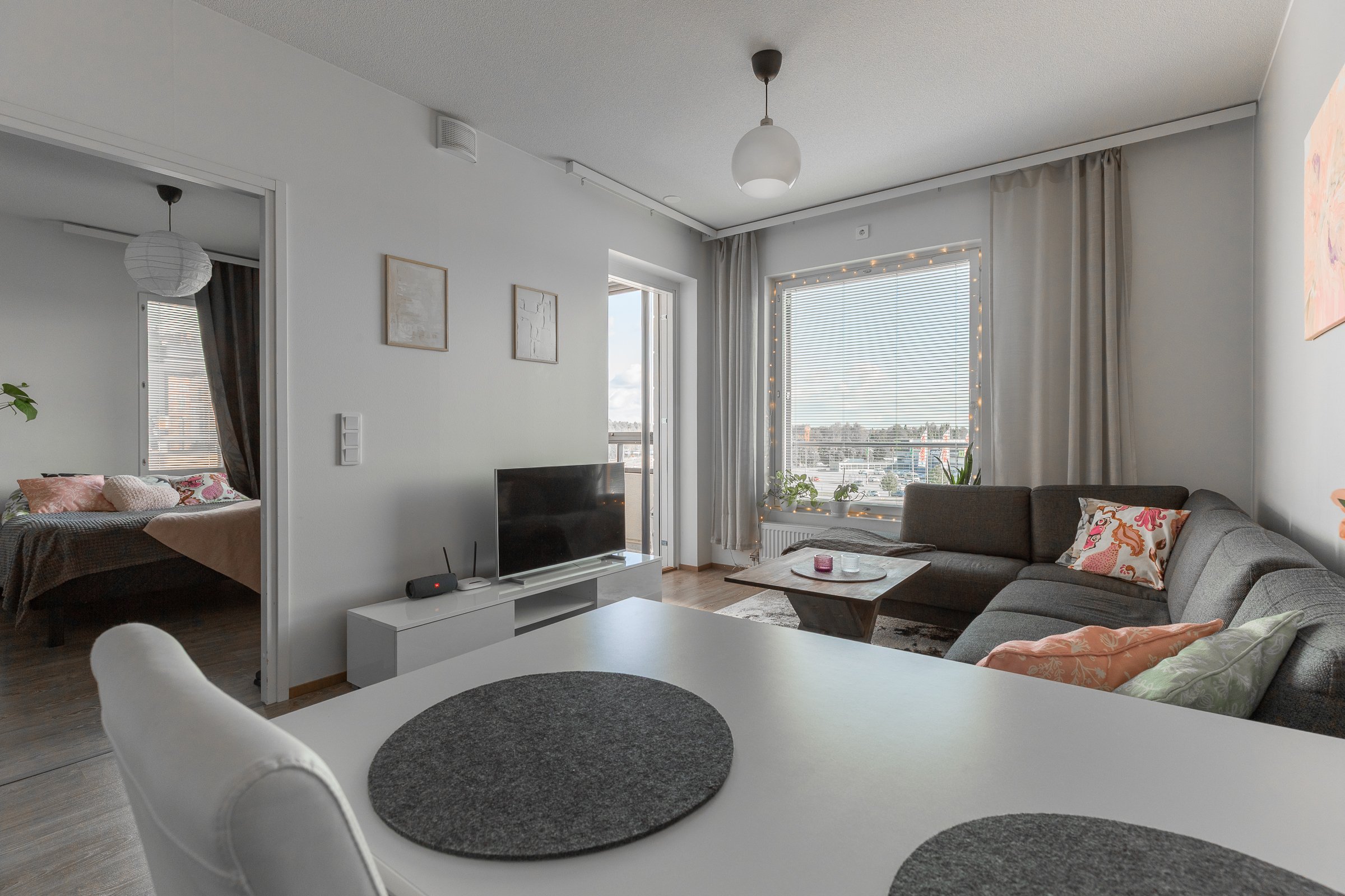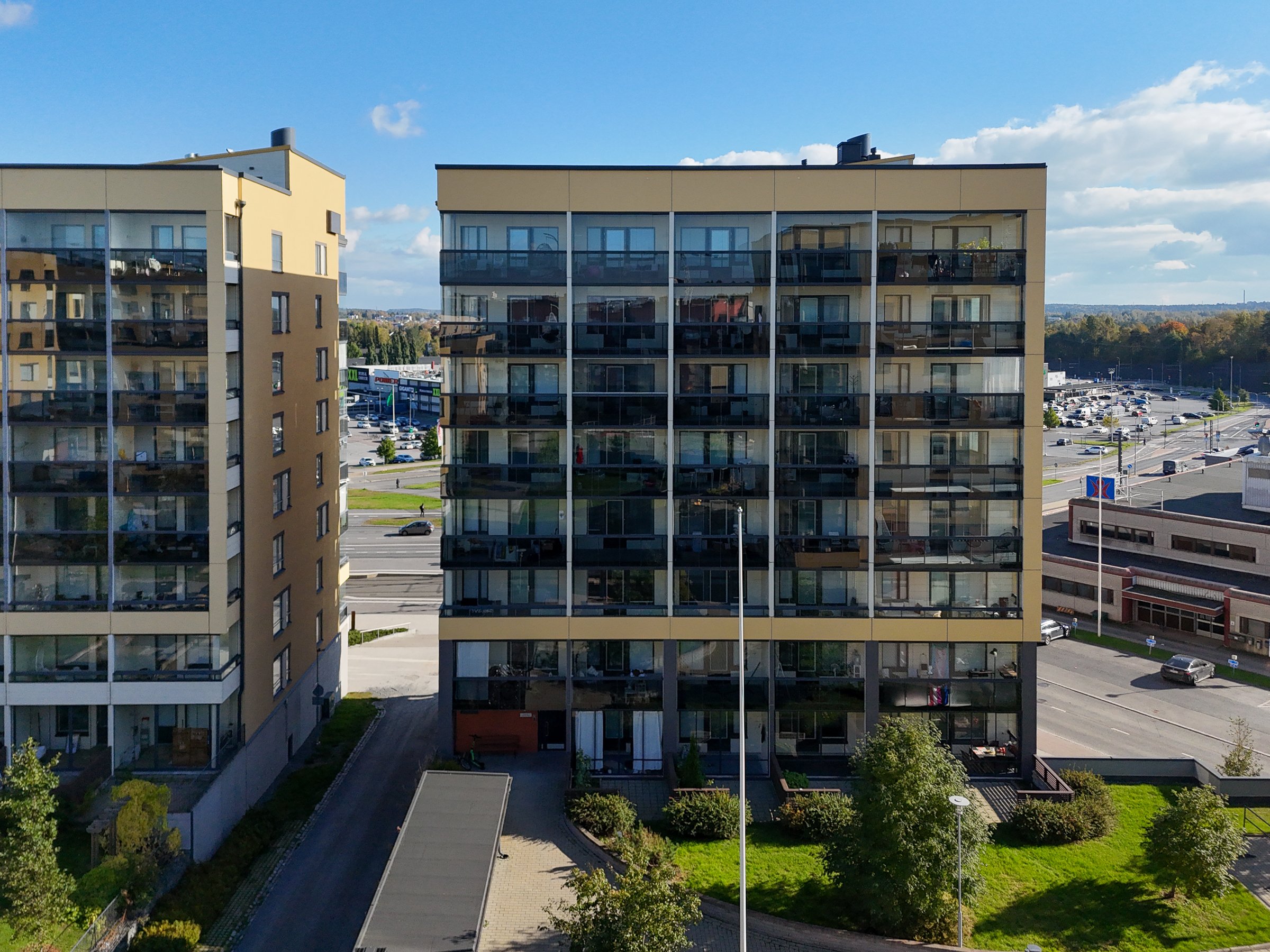 Tässä kolmannen kerroksen kodissa yhdistyvät toimiva pohjaratkaisu ja arjen mukavuudet. Kodin keskipiste on keittiön ja olohuoneen muodostama yhtenäinen tila, joka on helppo sisustaa omien tarpeiden mukaan. Olohuoneesta on käynti tilavalle lasitetulle parvekkeelle, jolta aukeavat avarat näkymät kahteen suuntaan. Makuuhuoneesta löytyy kaapisto. Asuntoihin kuljetaan osin uusitun, hyvin valaistun porraskäytävän kautta, mikä lisää koko taloyhtiön viihtyisää ja arvokasta ilmettä.