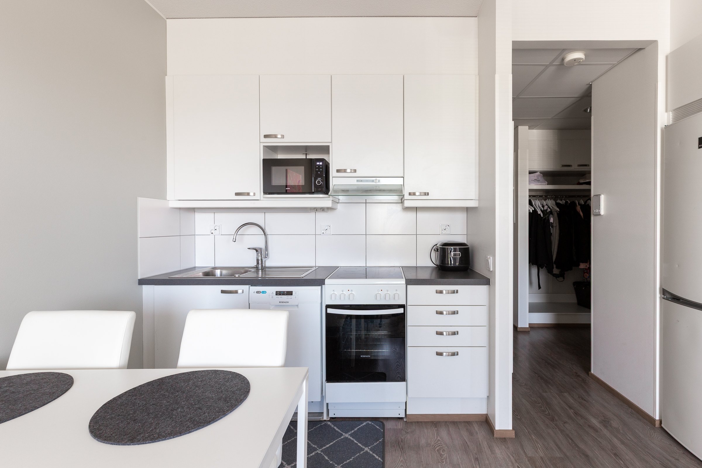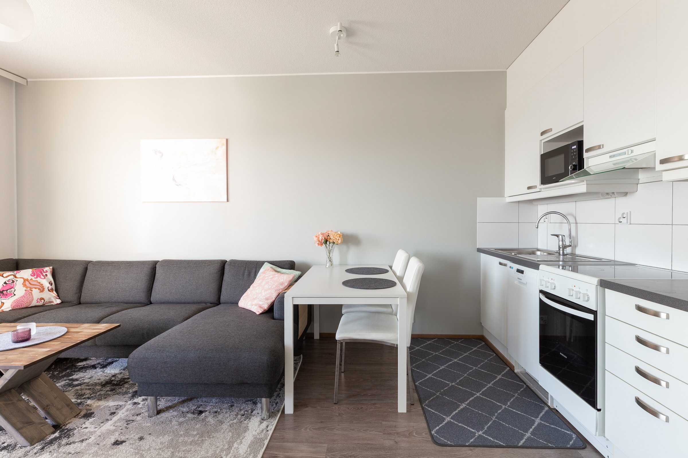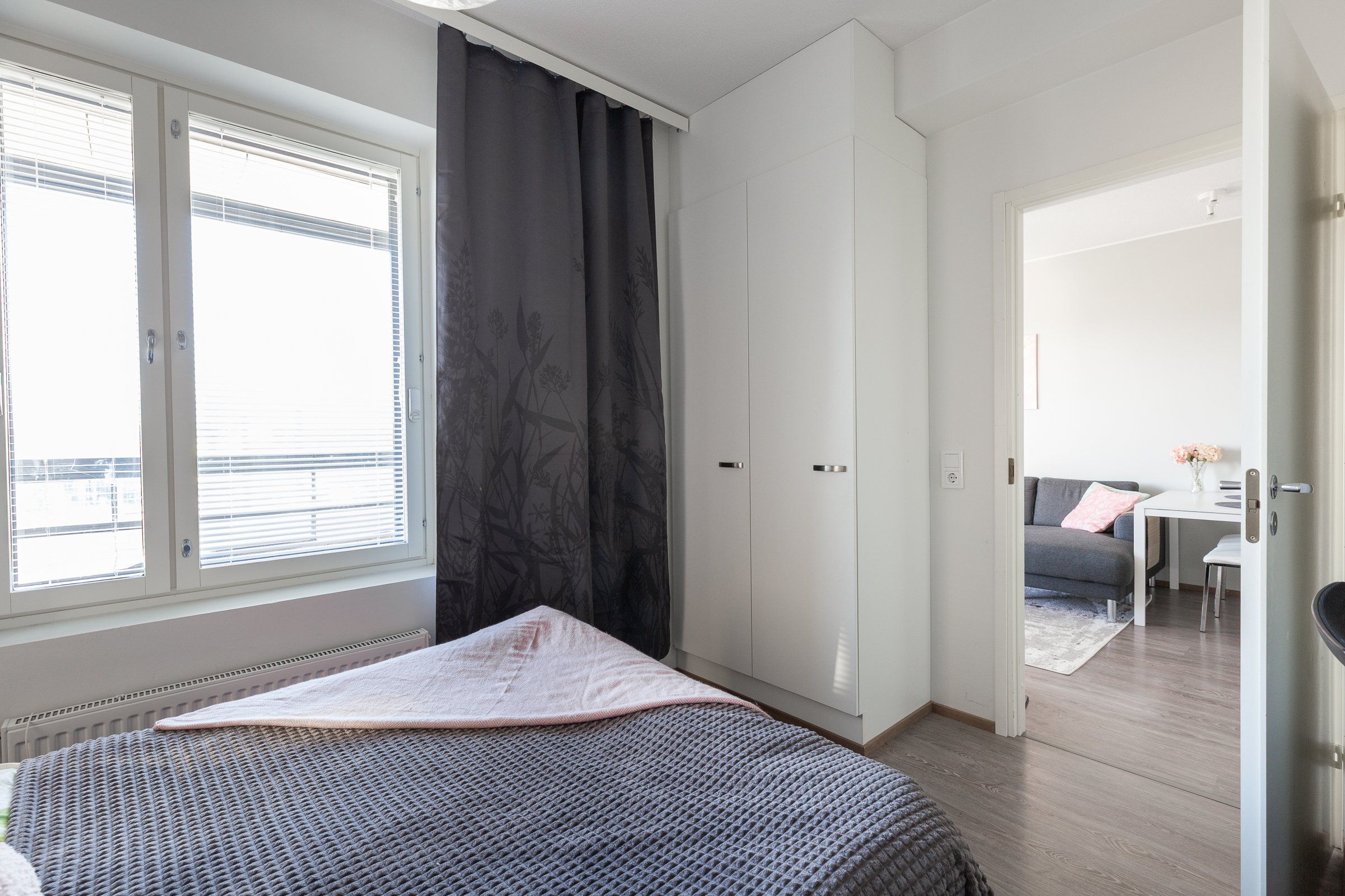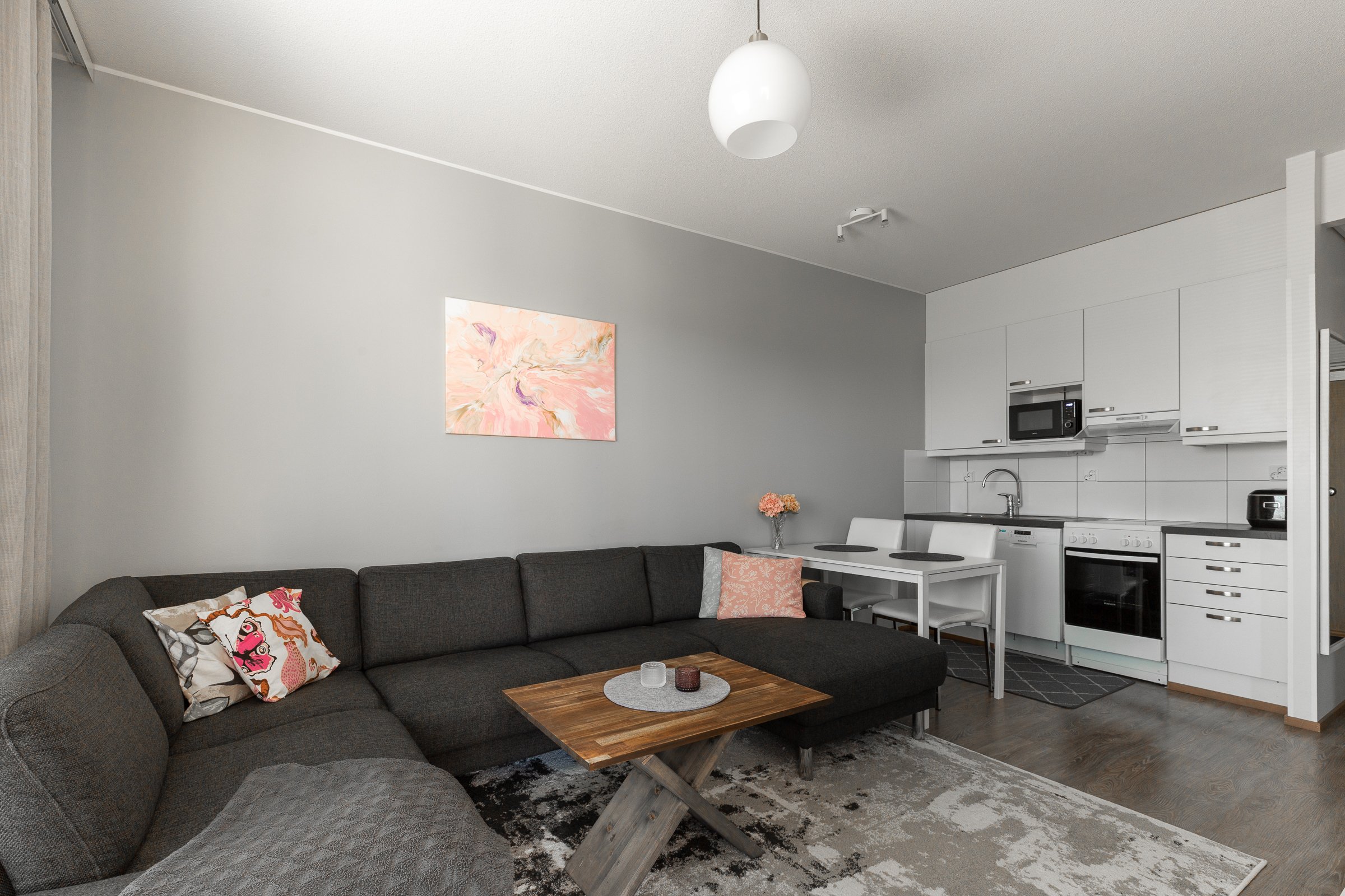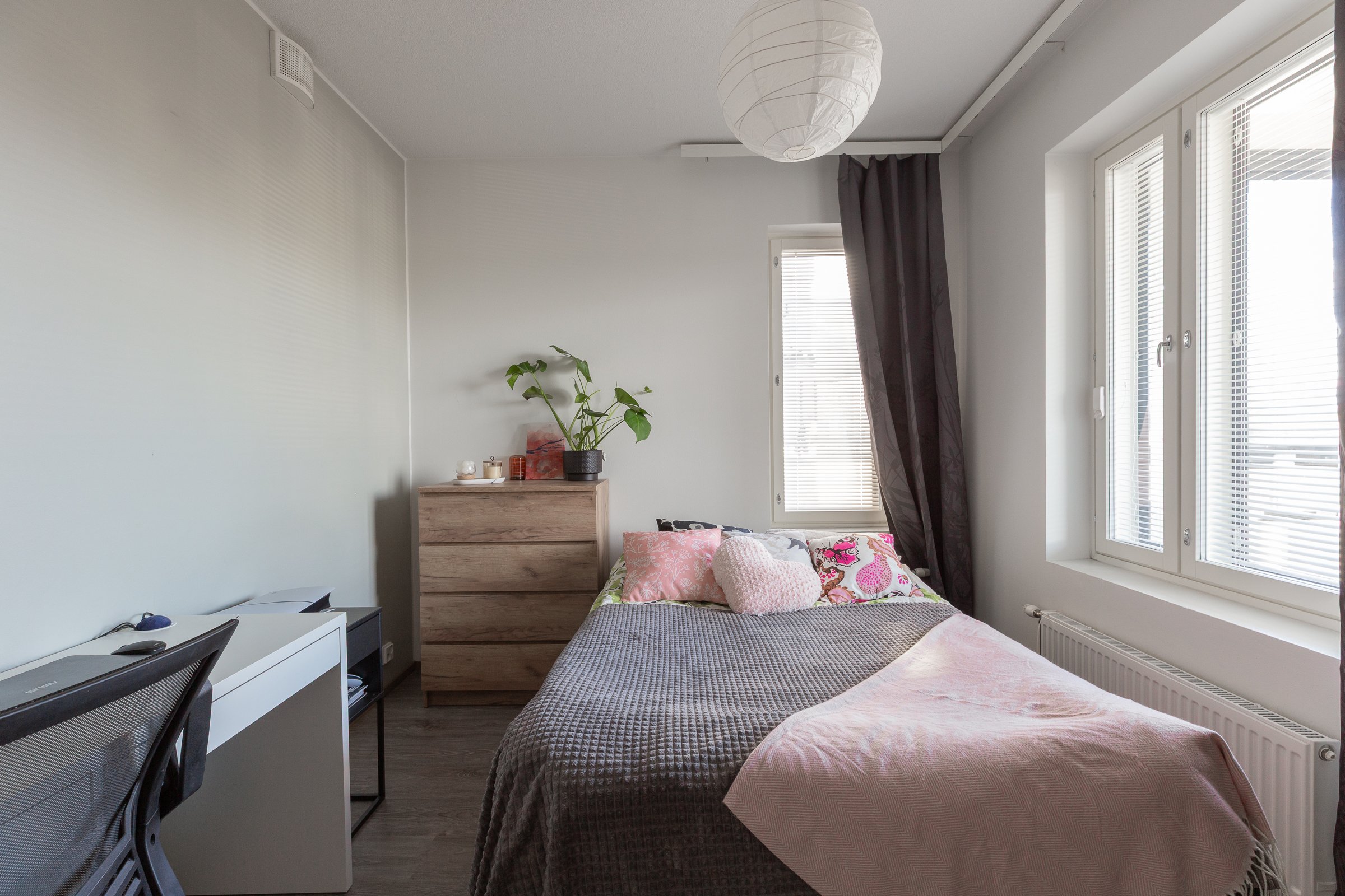 Tässä kolmannen kerroksen kodissa yhdistyvät toimiva pohjaratkaisu ja arjen mukavuudet. Kodin keskipiste on keittiön ja olohuoneen muodostama yhtenäinen tila, joka on helppo sisustaa omien tarpeiden mukaan. Olohuoneesta on käynti tilavalle lasitetulle parvekkeelle, jolta aukeavat avarat näkymät kahteen suuntaan. Makuuhuoneesta löytyy kaapisto. Asuntoihin kuljetaan osin uusitun, hyvin valaistun porraskäytävän kautta, mikä lisää koko taloyhtiön viihtyisää ja arvokasta ilmettä.
