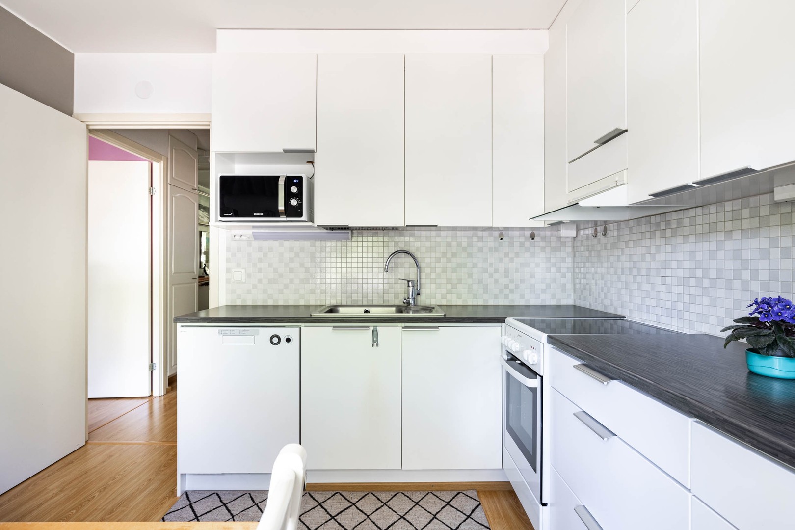 ✨Tilava, hyvin varusteltu keittiö (remontoitu 2010) runsaalla kaappi- ja laskutilalla