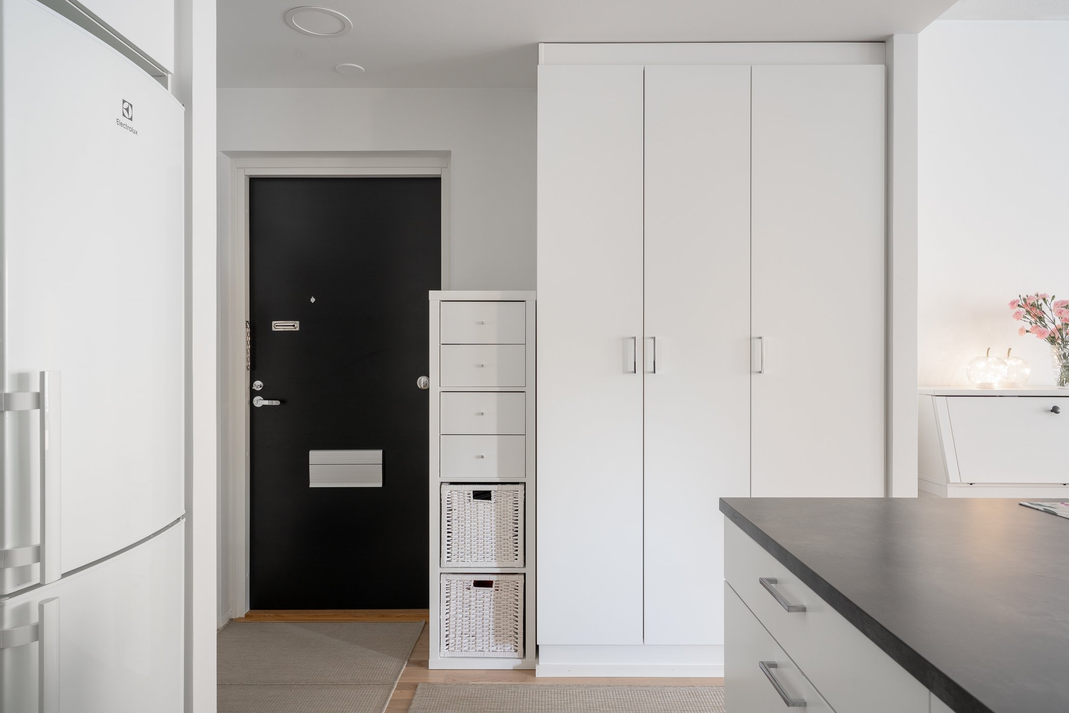 Tämä viihtyisä ja fiksusti suunniteltu kolmannen kerroksen koti on täydellinen valinta sinulle, joka arvostat tehokasta tilankäyttöä ja arjen helppoutta. Keittiö ja olohuone muodostavat toimivan yhtenäisen tilan. Tilan jakajana toimii iso saareke, joka tarjoaa niin säilytys- ja työtilaa, kuin ruokailupaikan. Olohuoneen jatkeena avautuu länteen iso lasitettu parveke.
