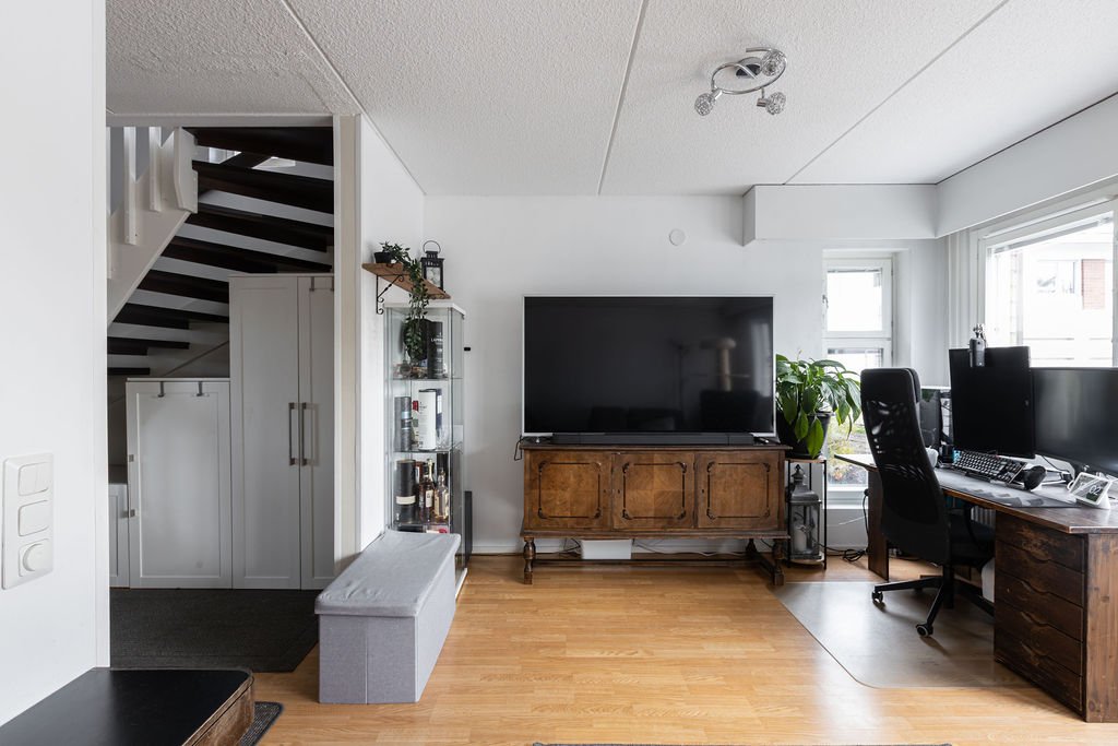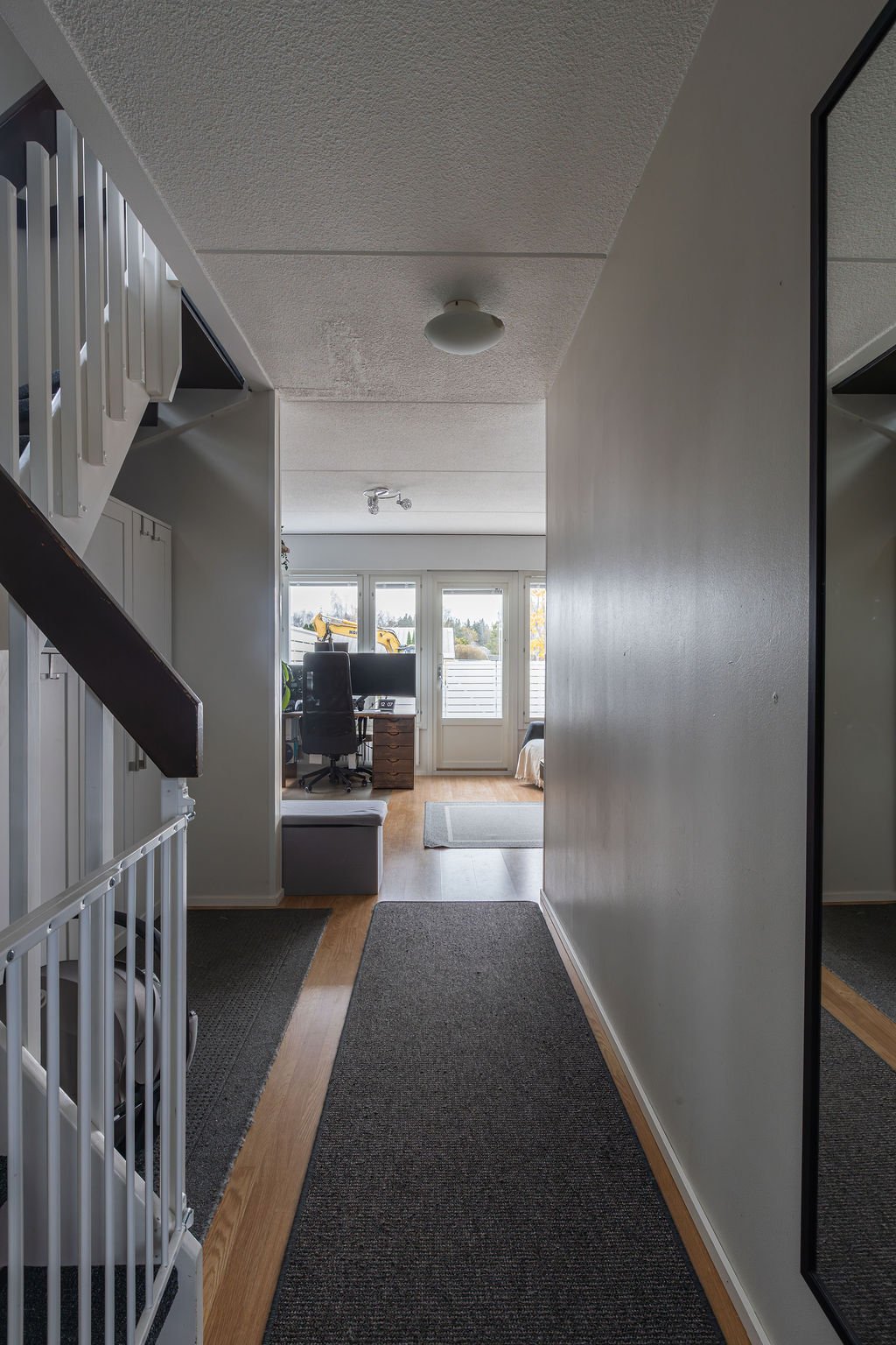 Yläkerrassa on kaksi makuuhuonetta, sekä 2018 remontoitu pesuhuone. Alakerrassa on keittiö, olohuone ja erillinen wc. Asunnon etelään suuntautuva terassi kutsuu nauttimaan auringosta.