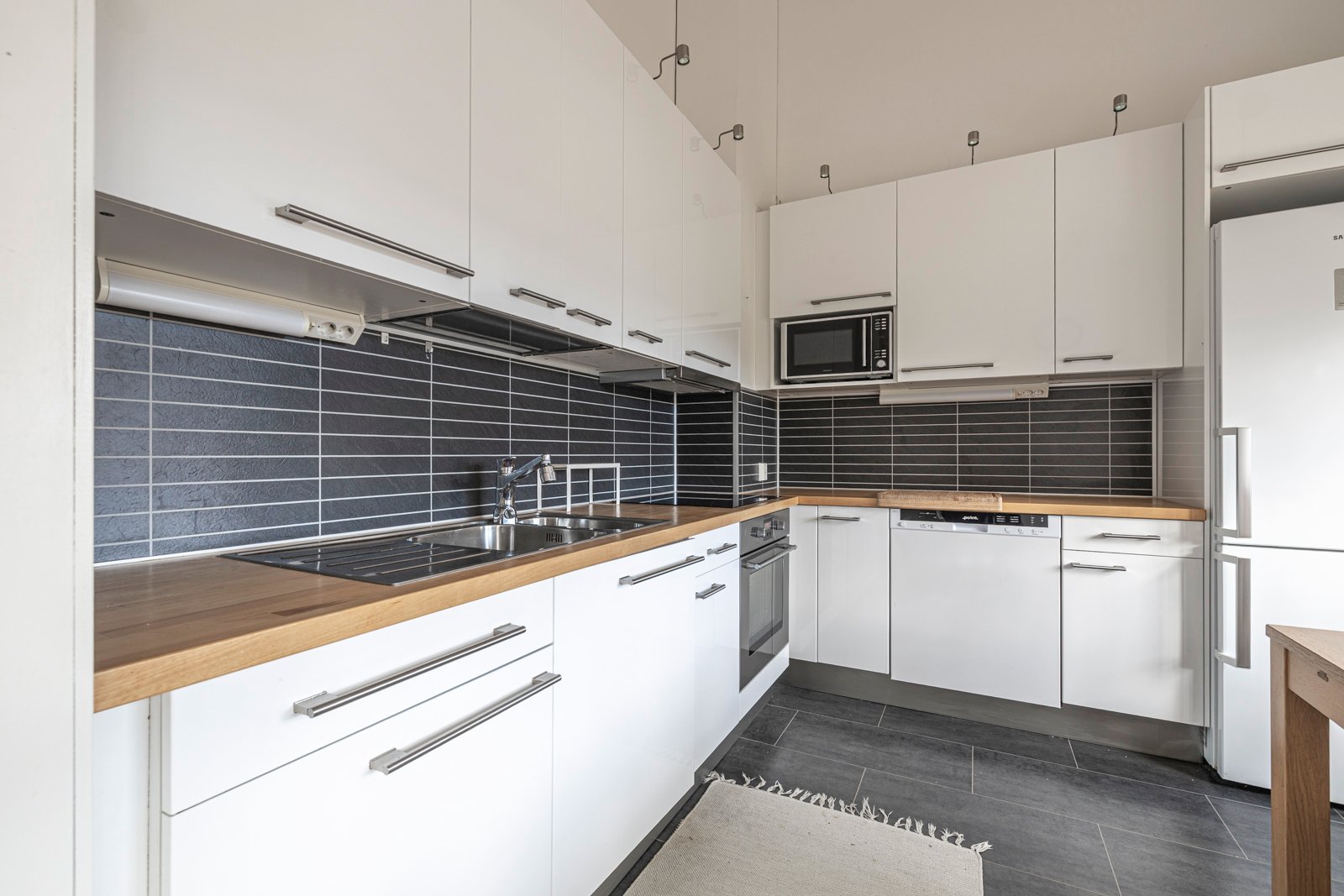 Vuonna 1980 valmistunut ja hyväkuntoinen päätyhuoneiston koti hurmaa valoisuudellaan ja avaruudellaan. 85 neliötä kahdessa kerroksessa tarjoaa tilaa niin yhdessäoloon kuin omaan rauhaankin. Tilava olohuone kutsuu viettämään aikaa perheen ja ystävien kanssa, ja viihtyisä keittiö tekee arjen kokkailuista mukavaa. Oman saunan löylyt viimeistelevät päivän ja tuovat arkeen ripauksen luksusta. Asunnon keittiö on remontoitu 2013 ja pesutilat ja sauna 2022. Asunnon muita pintoja on päivitelty pitkin 2000 lukua.