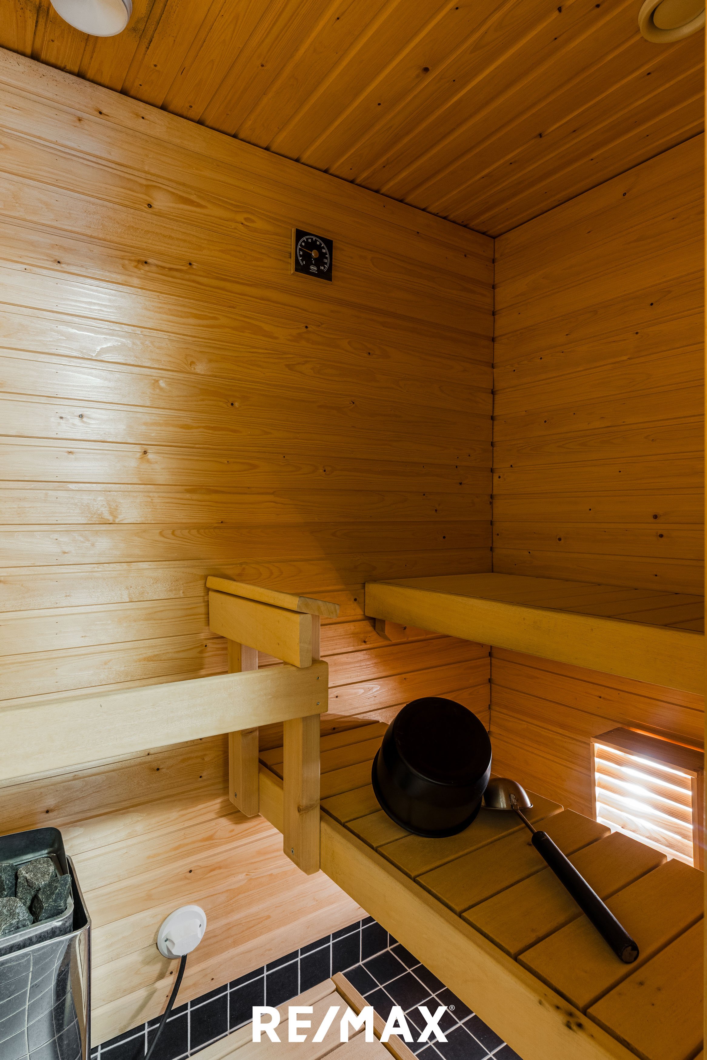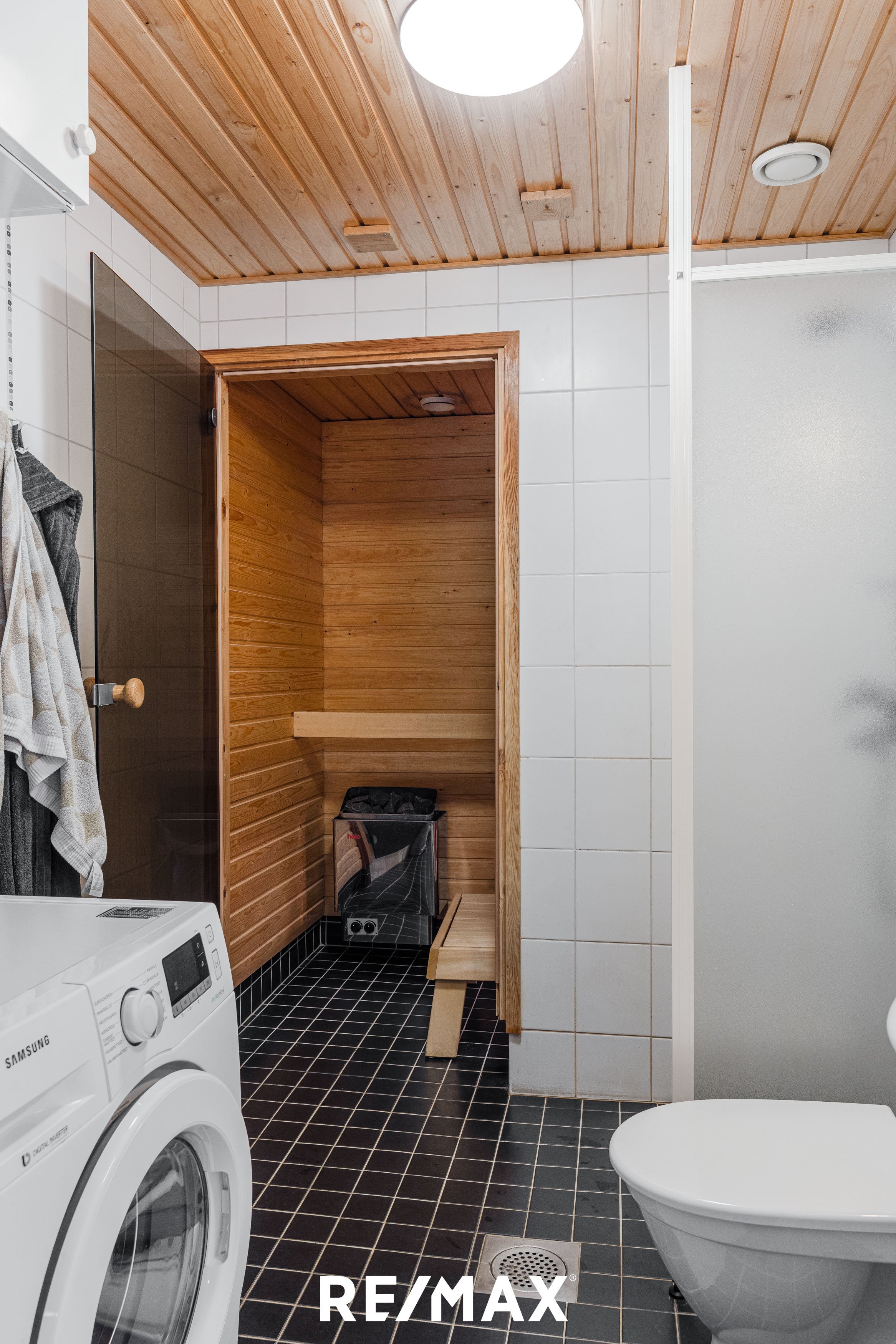 Kaksi makuuhuonetta tarjoavat rauhalliset tilat levätä, ja oma sauna tarjoaa rentoutumishetkiä kiireisen päivän jälkeen.