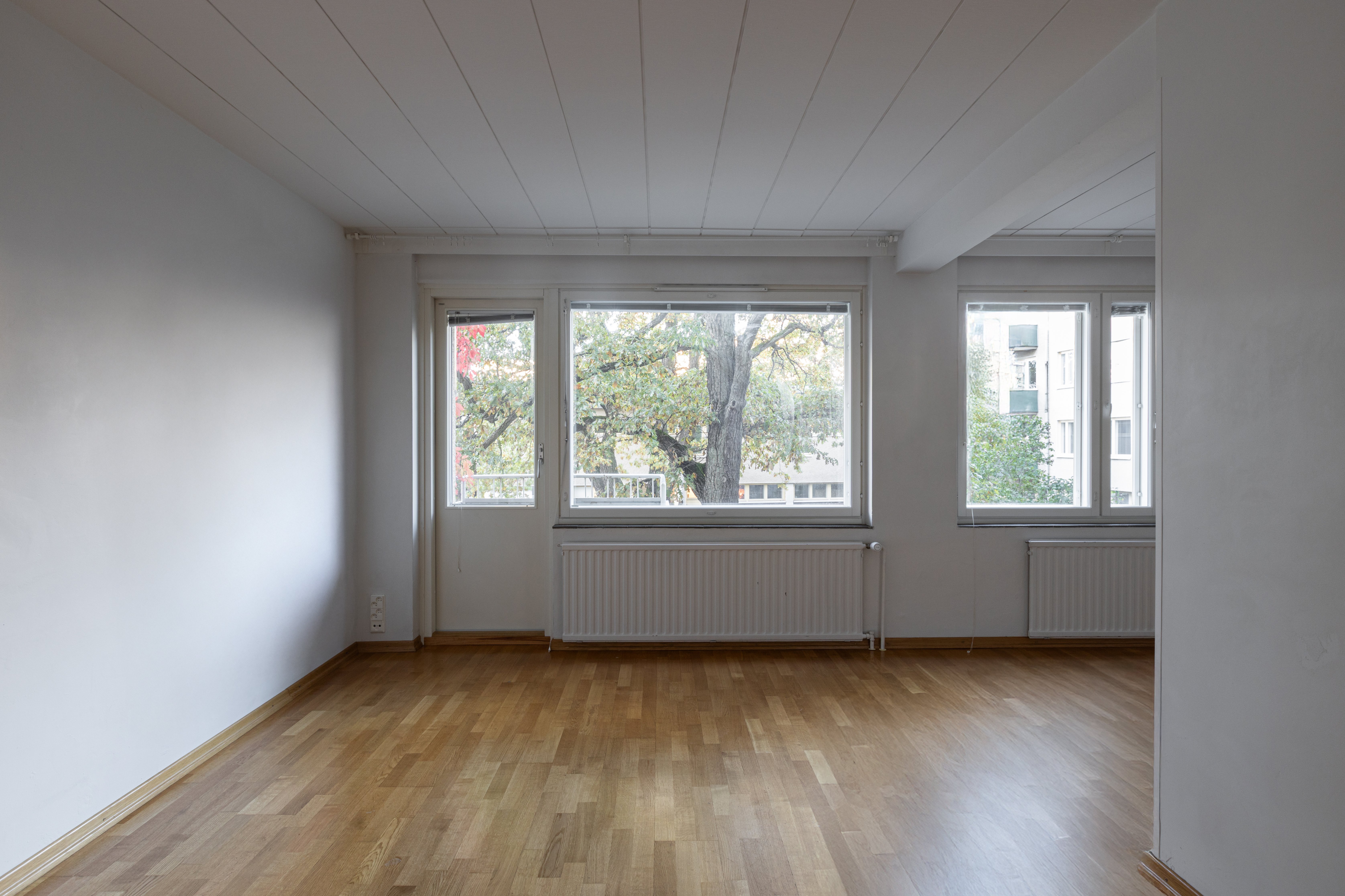 Tämä tilava kaksio sijaitsee Puistokatu 3:n viehättävässä 1950-luvun talossa Turun keskustassa. Kulmahuoneiston 55 neliötä on jaettu käytännöllisesti ja olohuoneesta avautuu parveke taloyhtiön sisäpihan suuntaan.