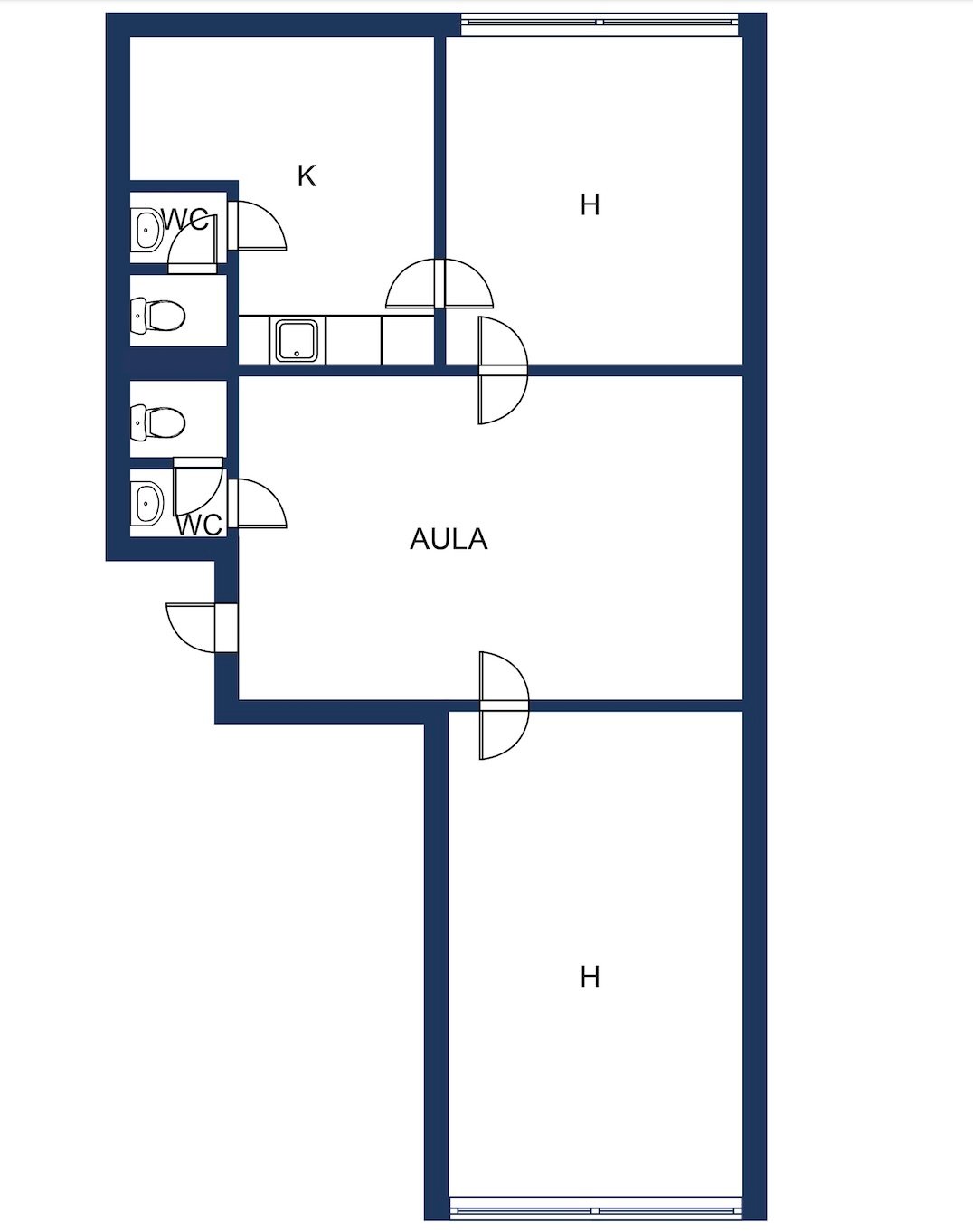 Toimistotila on rakennuksen toisessa kerroksessa ja sisään astut isoon aulatilaan, josta on kulku myös huoneiston toisiin wc-tiloihin. Aulan molemmin puolin on isot ja valoisat toimisto-/ työtila-/ vastaanottohuoneet. Yksityisyys molempiin työhuoneisiin on taattu suljettavien ovien ja välissä sijaitsevan aulan ansiosta. Toisen huoneen yhteydessä on erillinen keittiö/ taukotilansa, jonka yhteydessä on myös toinen wc.