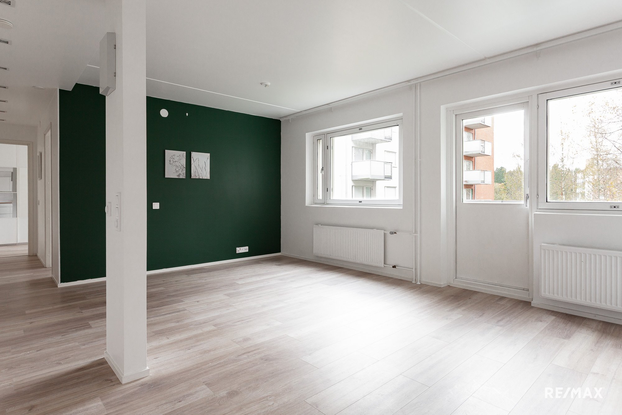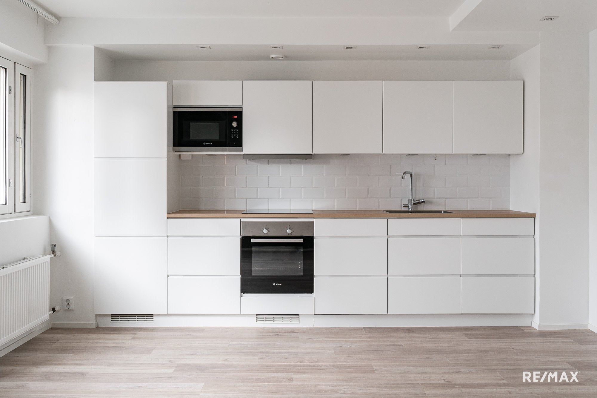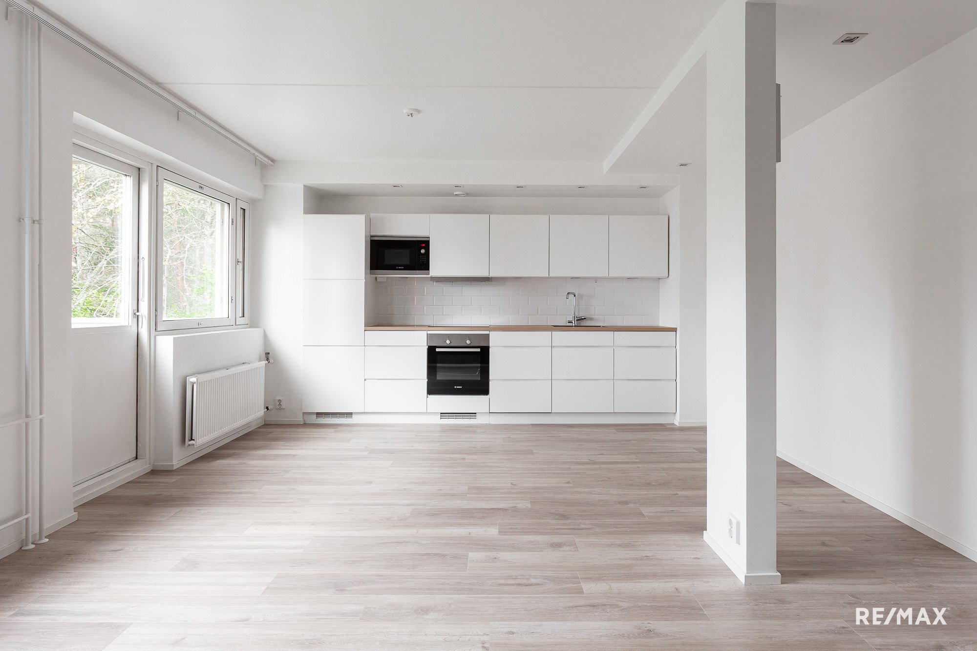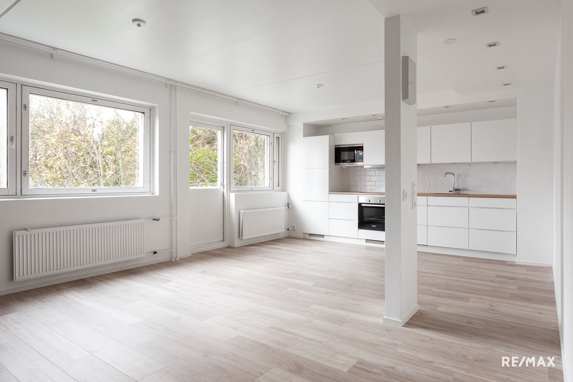 Asunnossa on kaksi makuuhuonetta, tilava olohuone/moderni avokeittiö. Laminaattilattiat ja maalatut seinät luovat raikkaan ja nykyaikaisen ilmeen. . Parveke tarjoaa mukavan lisätilan.