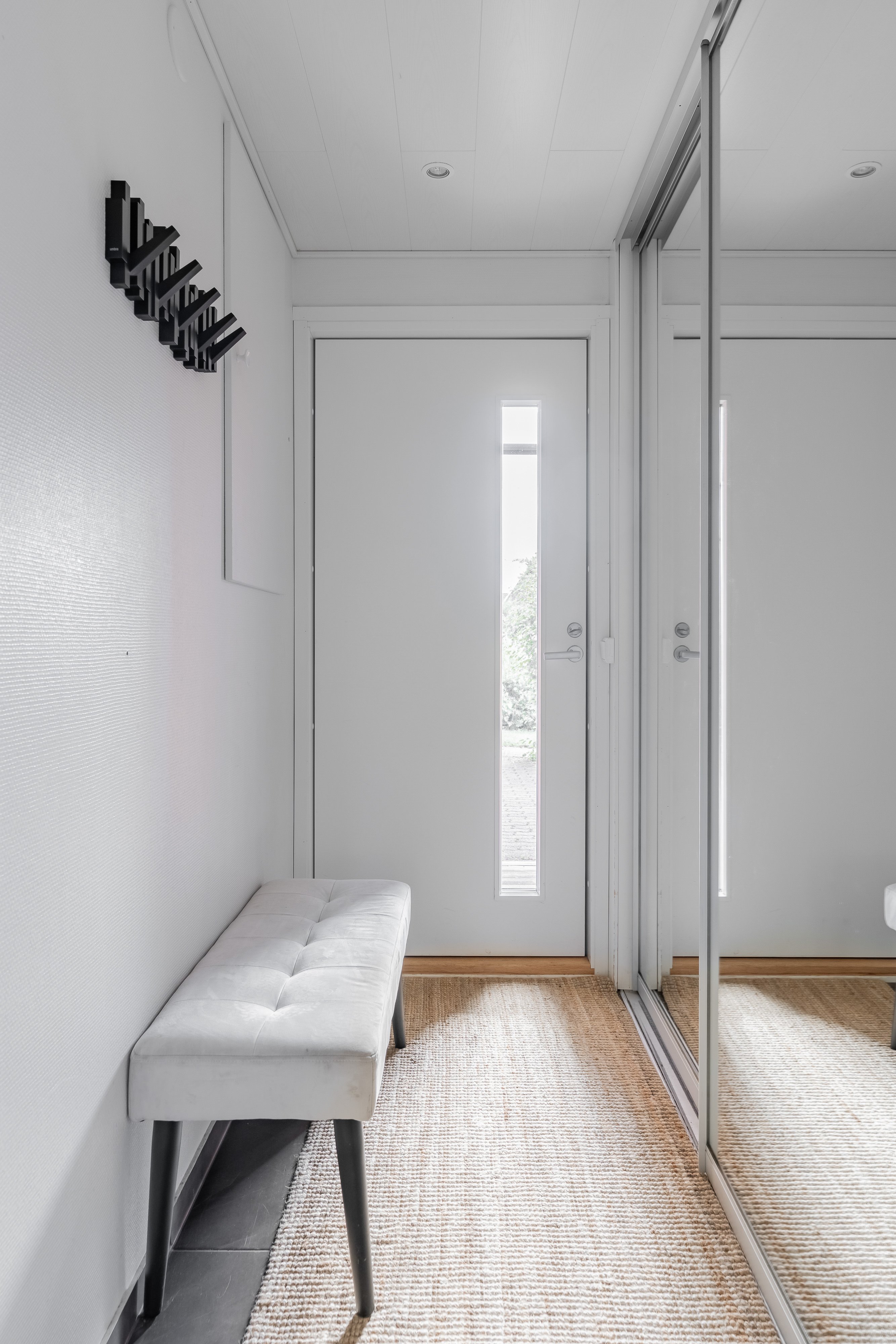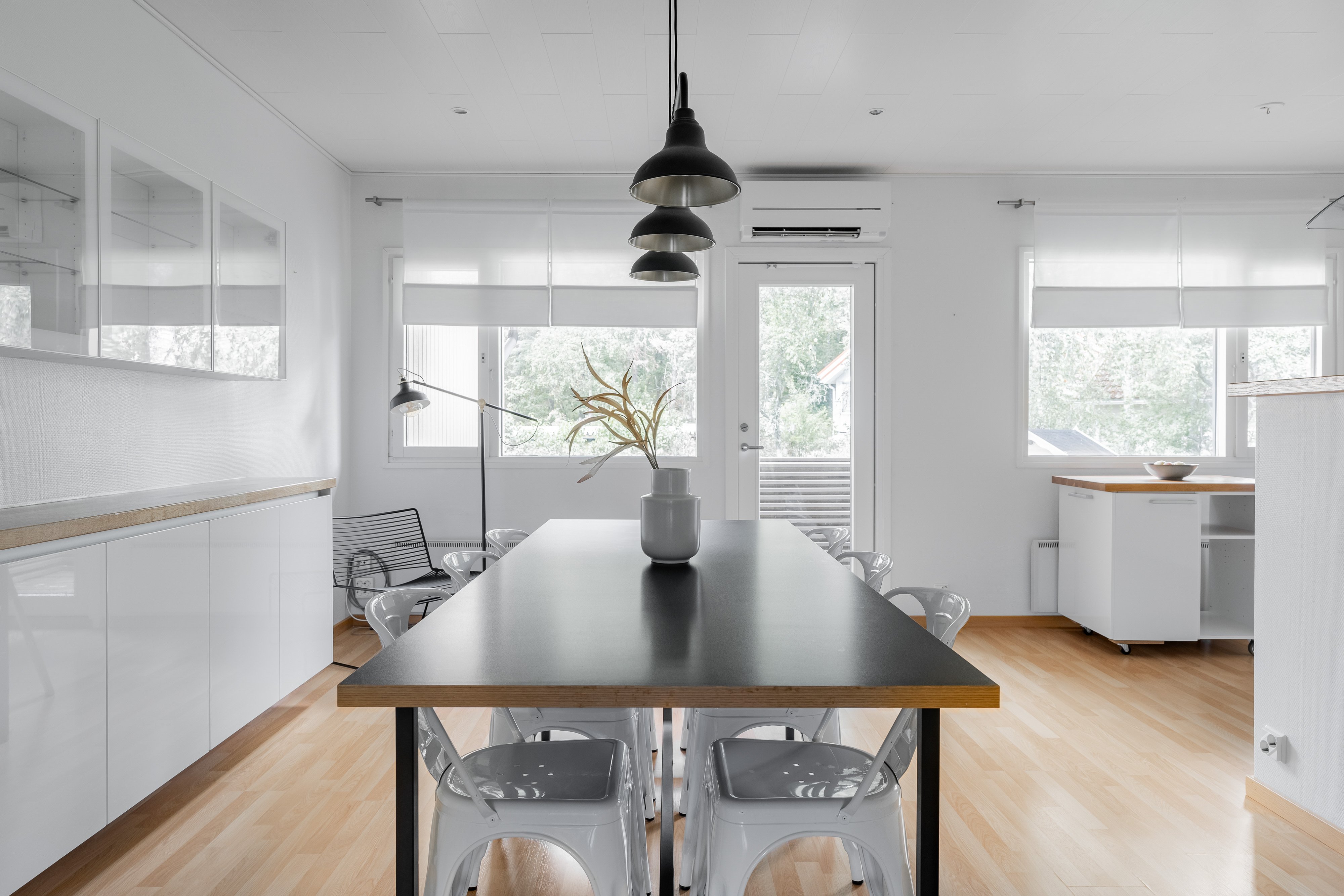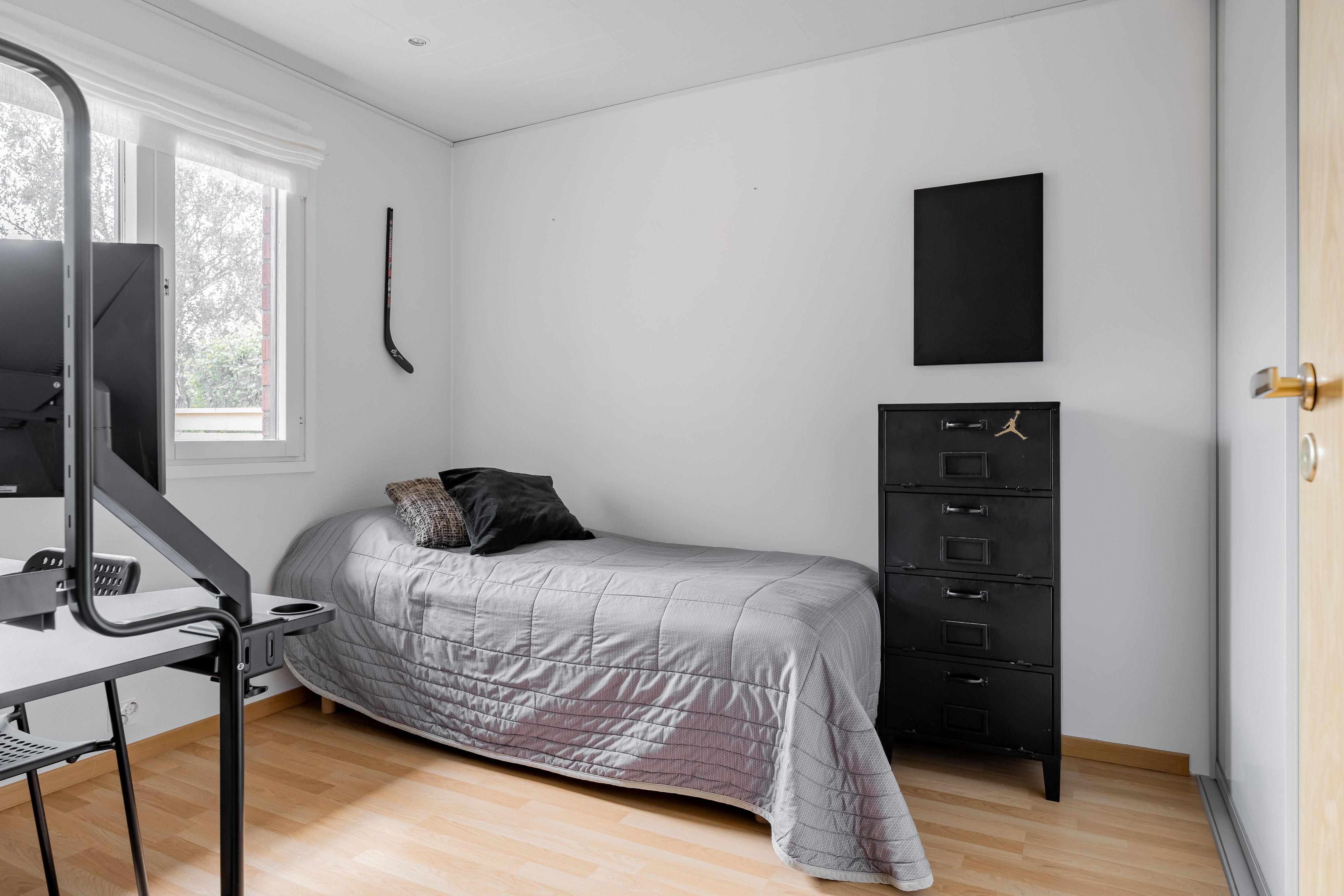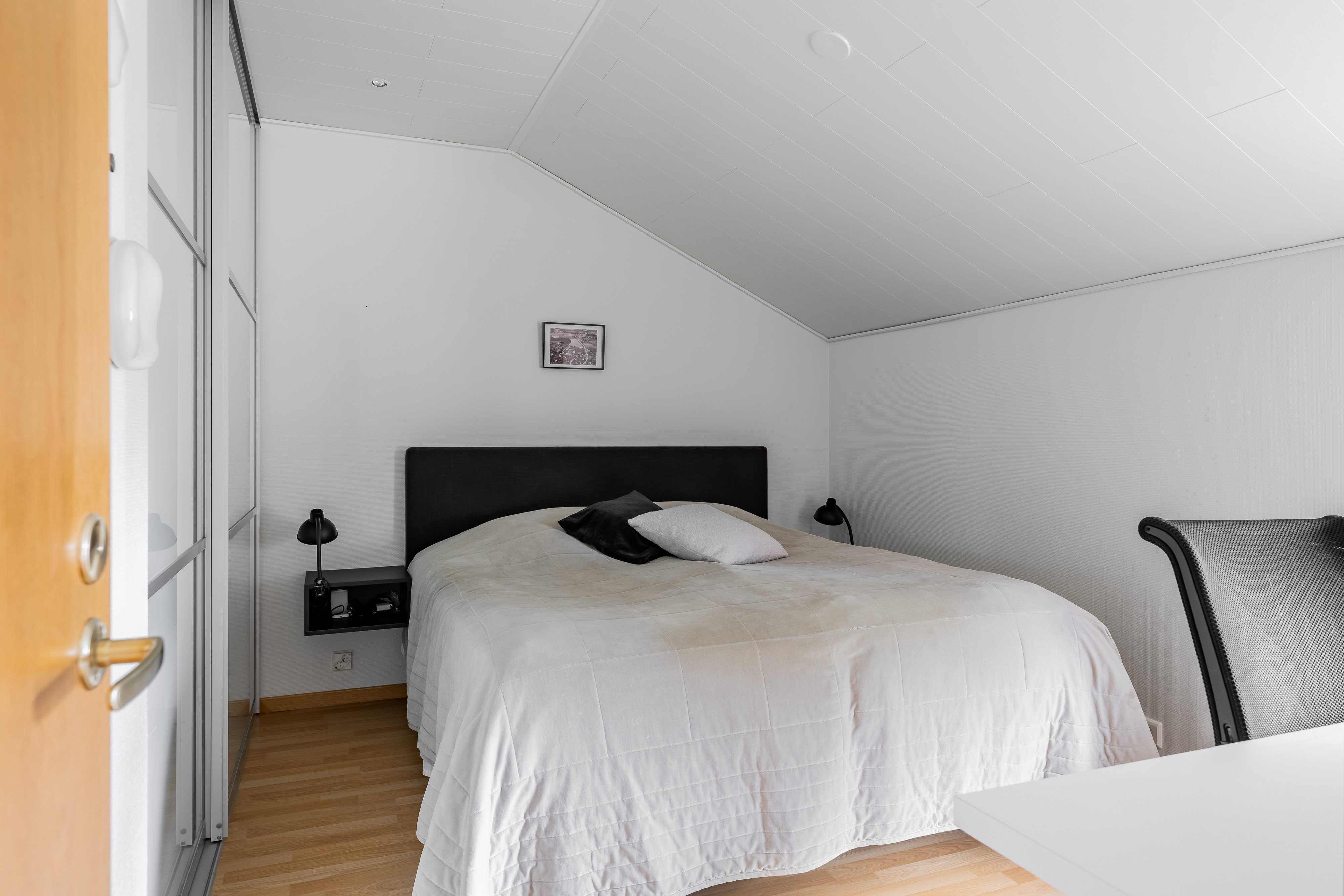 Asunnon alakerrassa on kaksi makuuhuonetta ja viihtyisä sekä avoin olohuone, josta on käynti takapihan terassille. Yläkerrassa sijaitsee kolmas makuuhuone, ruokailutila sekä avokeittiö, joka on varusteltu saarekkeella ja modernilla kodinkoneilla. Yläkerran yhteydessä on myös parveke ja erillinen wc. Yläkerran ruokailutila on muutettavissa helposti toiseksi olohuoneeksi, sillä ruokapöytä sopii lähemmäs keittiötäkin. Eteisessä on käytännöllinen liukuovellinen säilytystila, joka soveltuu hyvin vaikka harrastusvälineille.