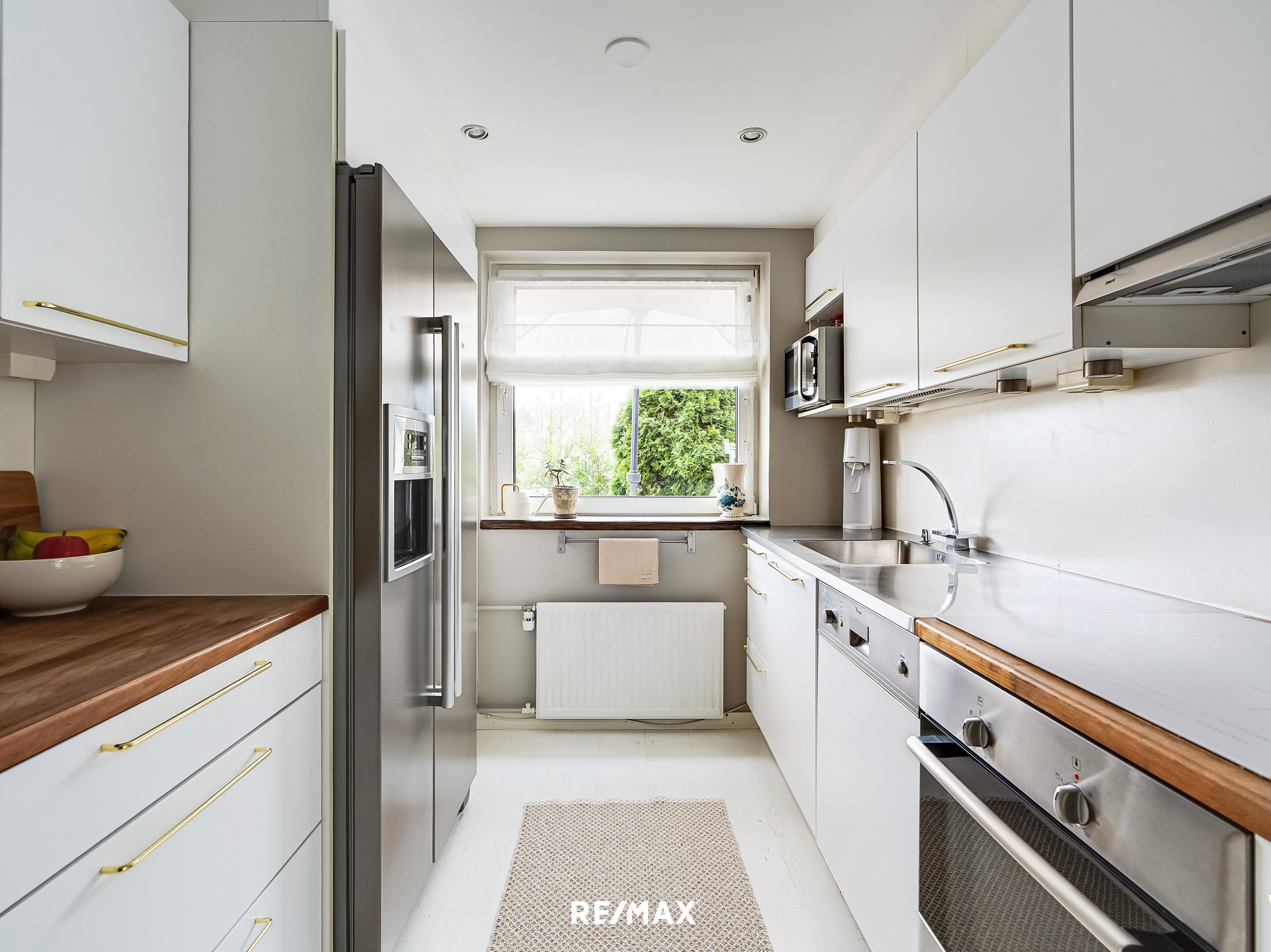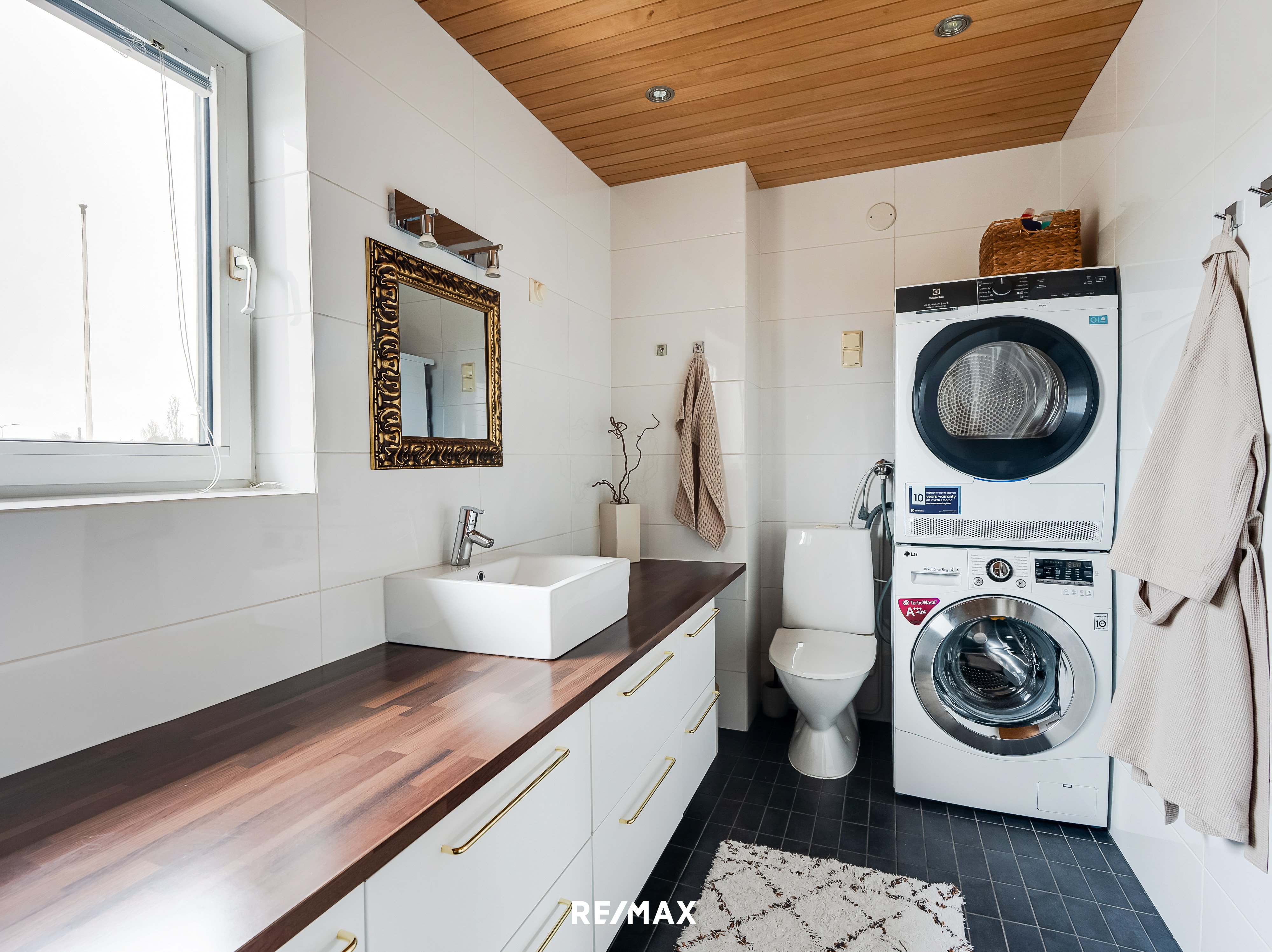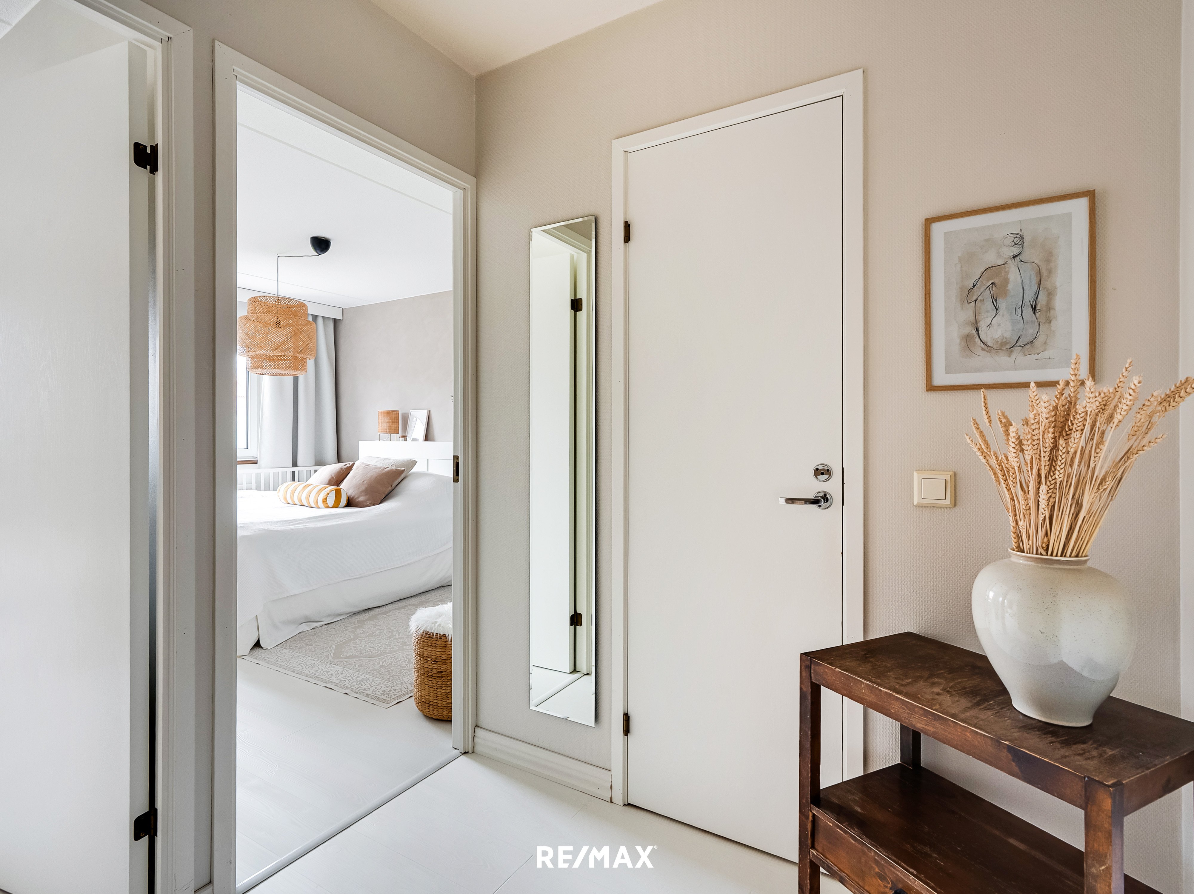 Koti on kerrassaan kaunis ja siitä on pidetty hyvää huolta. Sisään astuessasi huomaat valtaisat isot olohuoneen ikkunat, jotka johdattavat tien asunnon jättimäiselle takaterassille, jossa vietät kesäpäiviä nautiskellen niin aurinko- kuin varjopaikoistakin.