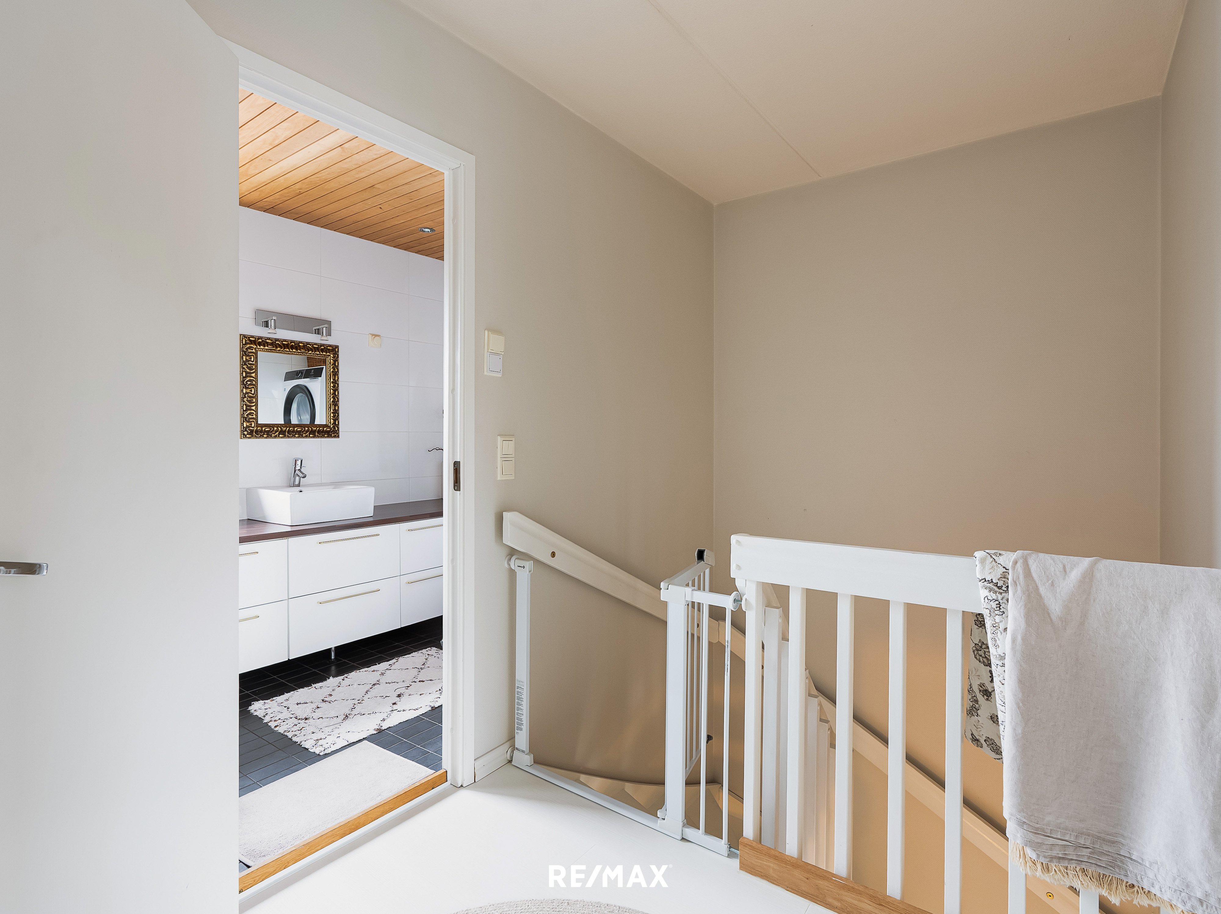Yläkerrassa sijaitsevat kodin kaksi kunnon kokoista makuuhuonetta, sekä ihana walk-in closet. Yläkerrasta löytyy myös valoisat kylpyhuonetilat isoine saunoineen. Kylppärissä on myös kunnolla säilytystilaa sekä tilaa viikkailuun ja vaatehuoltoon.