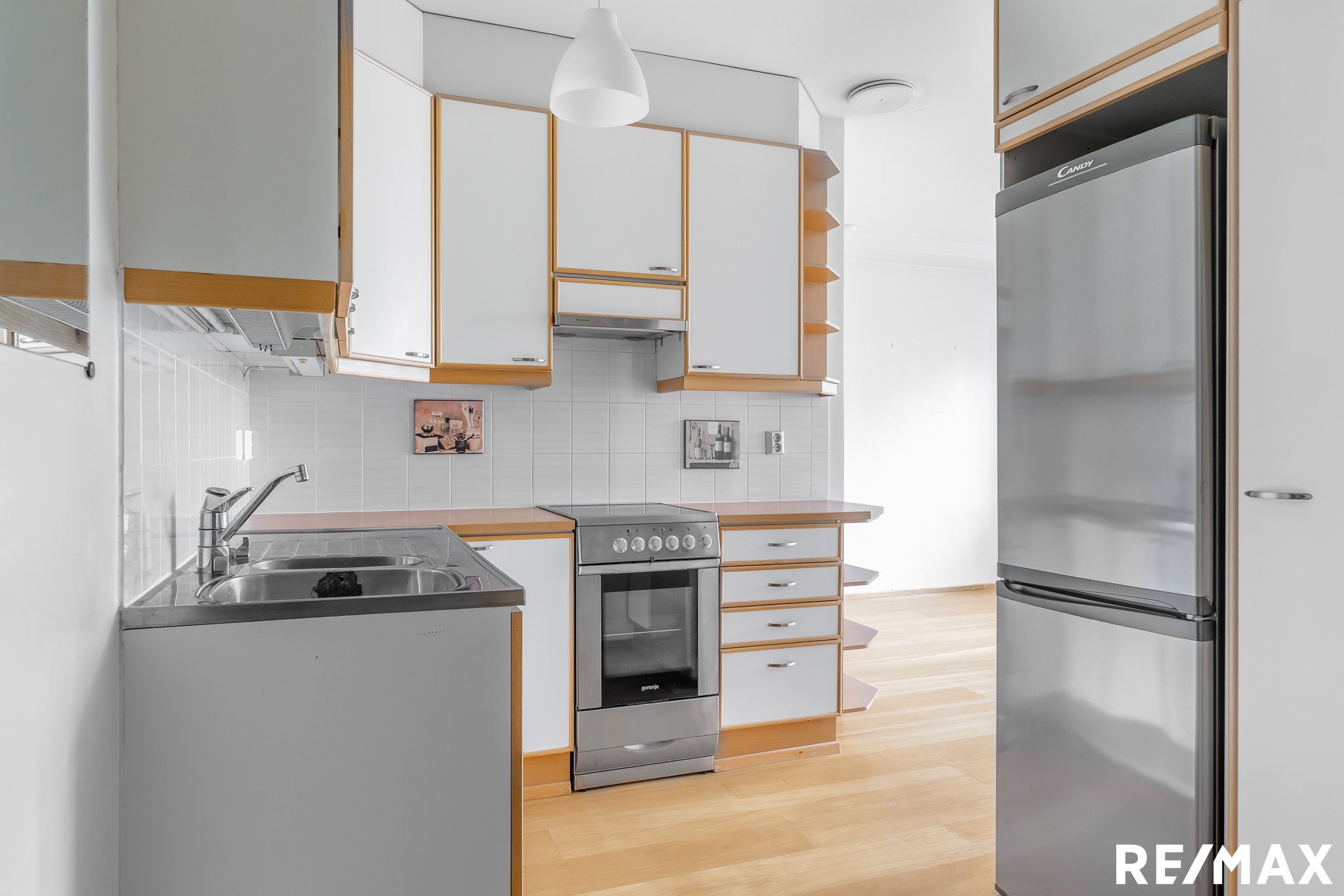 Asunnossa on parkettilattia ja vaaleat maalatut seinät. Keittiössä on kaikki arkeen tarvittava, sekä sopivasti laskutilaa asunnon kokoon nähden. Kylpyhuoneessa on pesukoneliitäntä ja laatoitettu lattia, mikä helpottaa arjen askareita. Kylpyhuoneen saneeraus alkamassa yhtiön toimesta lähikuukausien aikana.