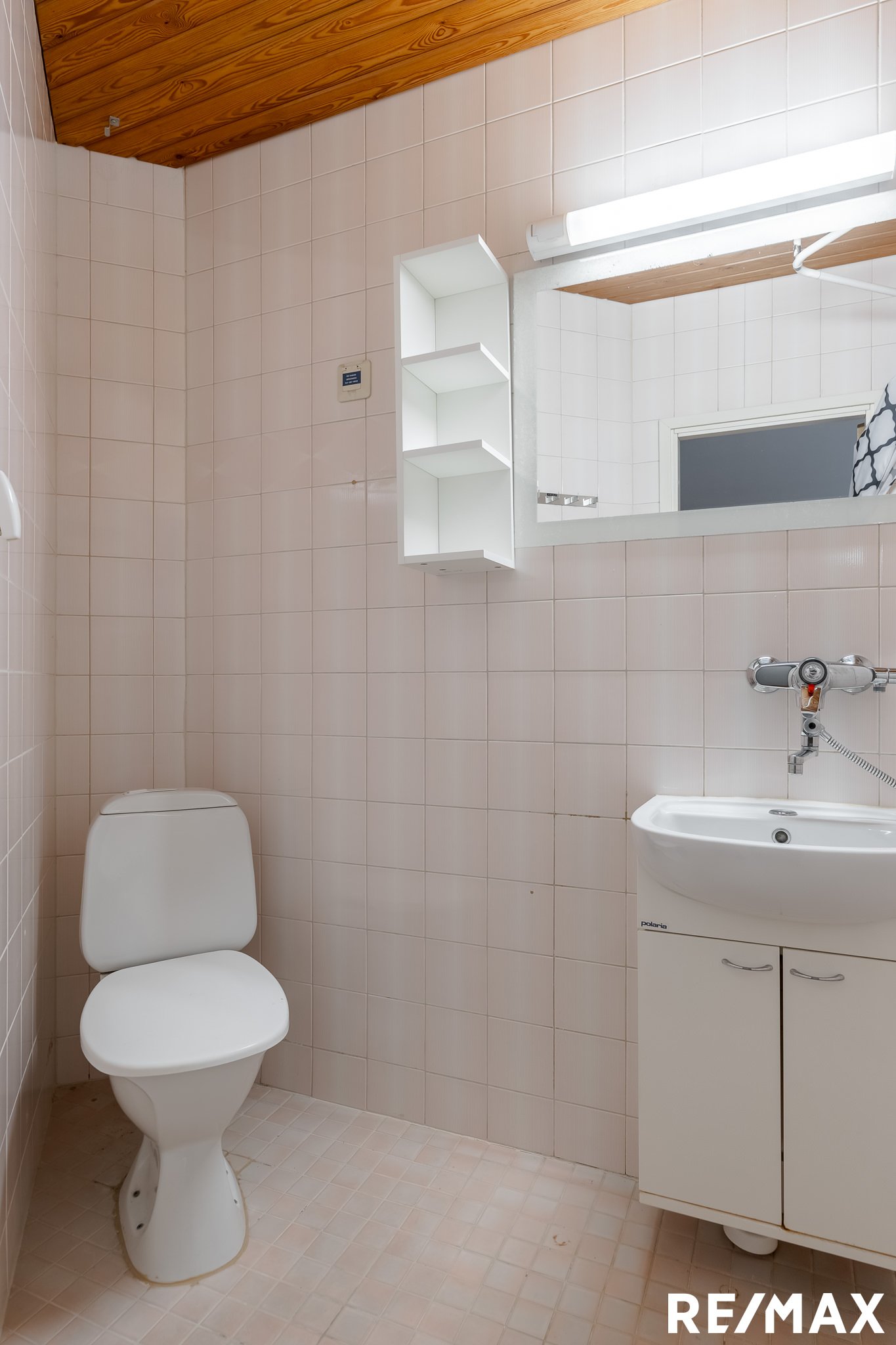 WC-istuin, pesukoneliitäntä, pesuallas ja peili