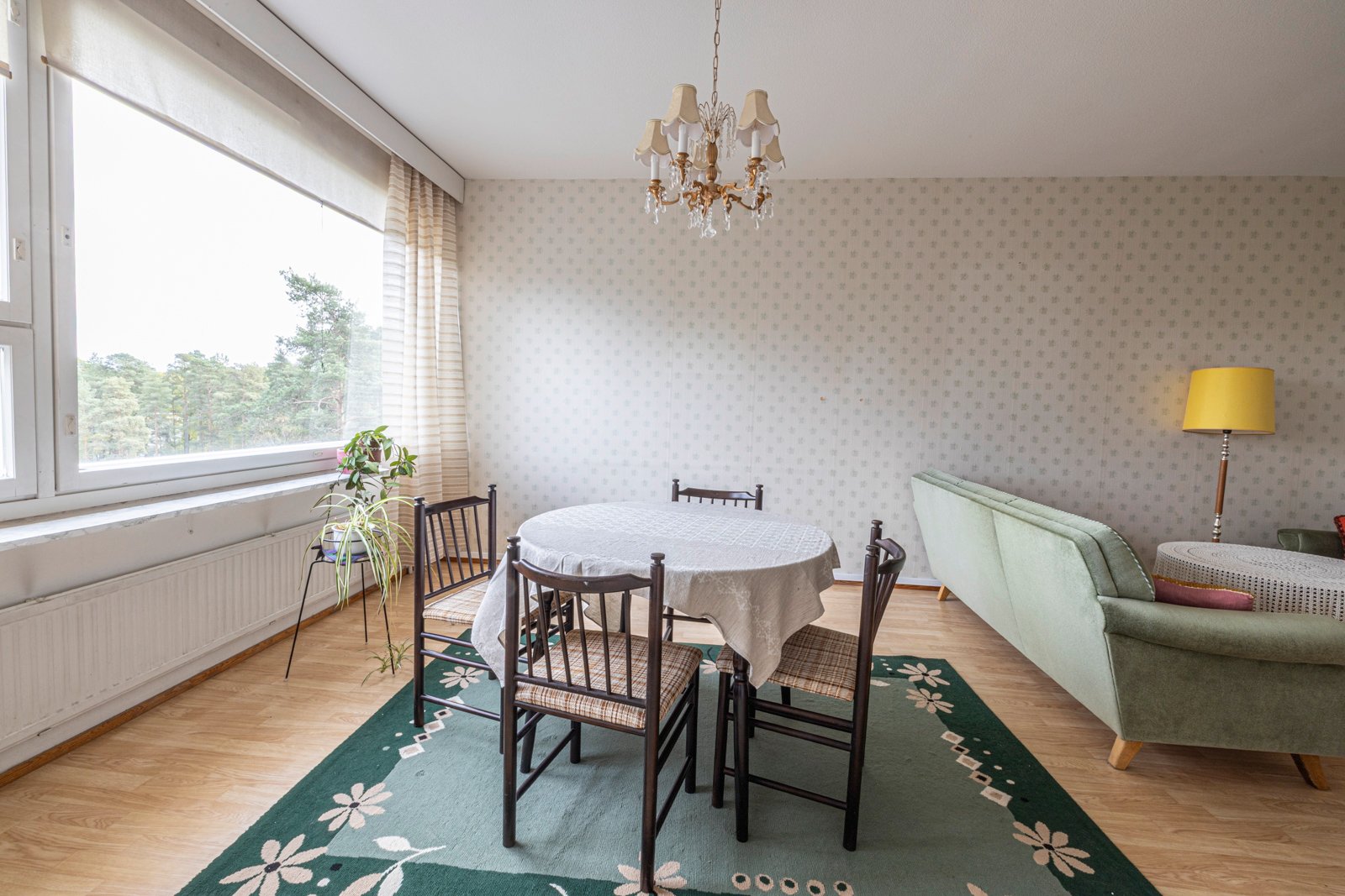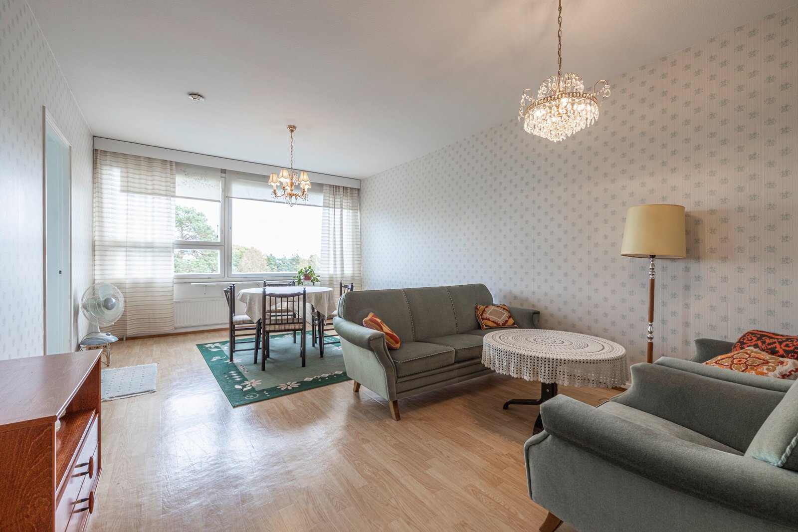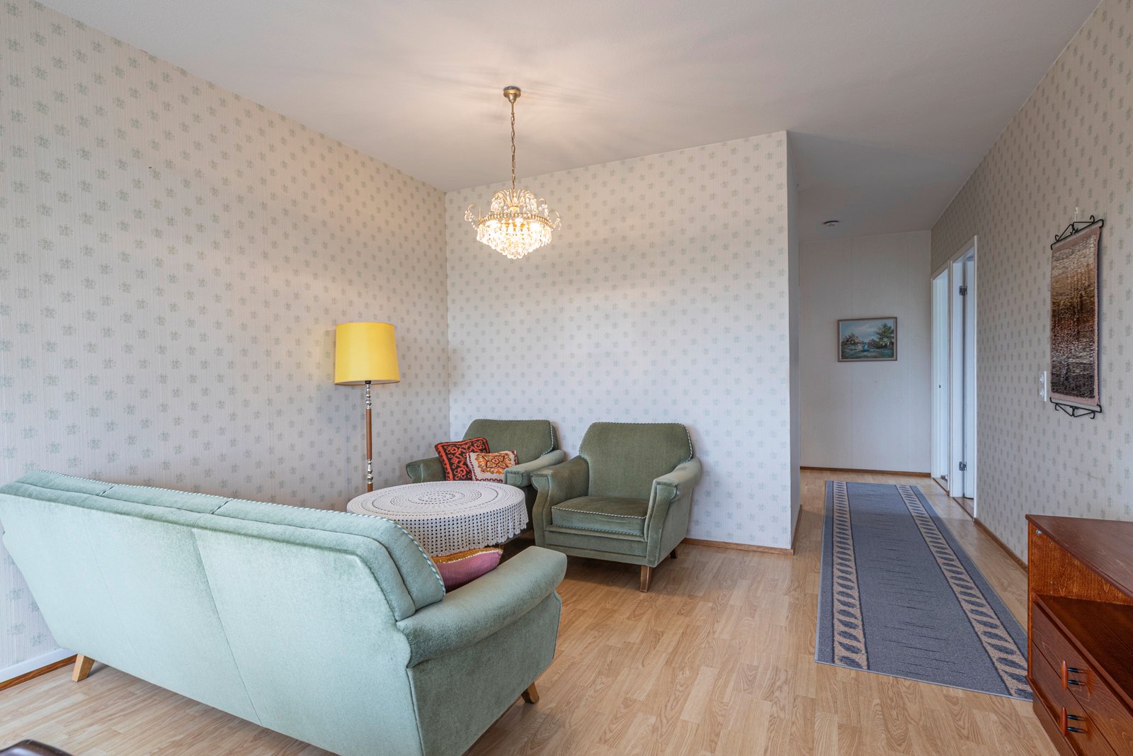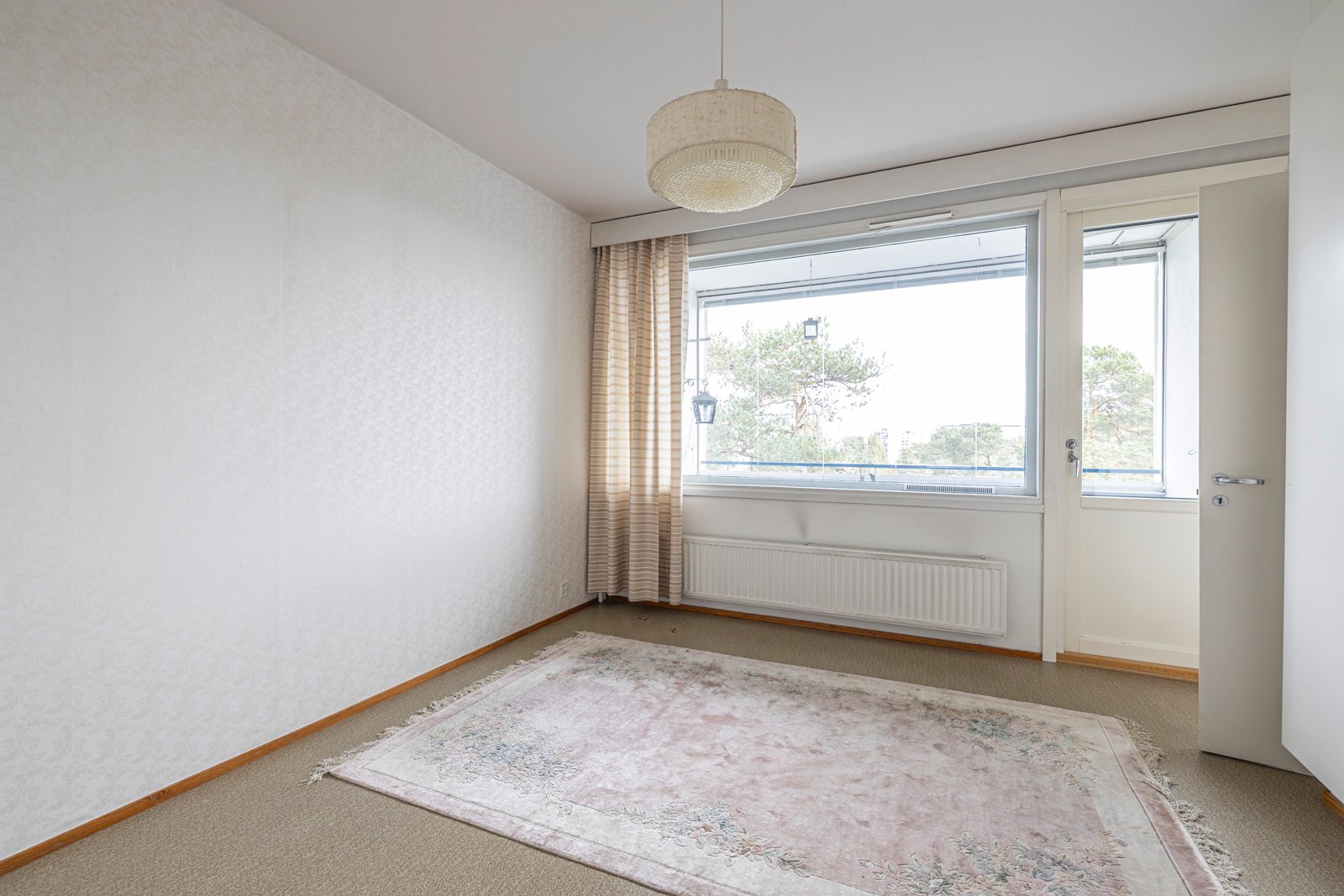 Runosmäen rauhallisella alueella, sijaitsee tämä valoisa 76 neliön kolmio, joka odottaa uusia asukkaita. Asunto on kuudennessa kerroksessa, ja sieltä avautuvat upeat näkymät yli kaupungin kattojen.
