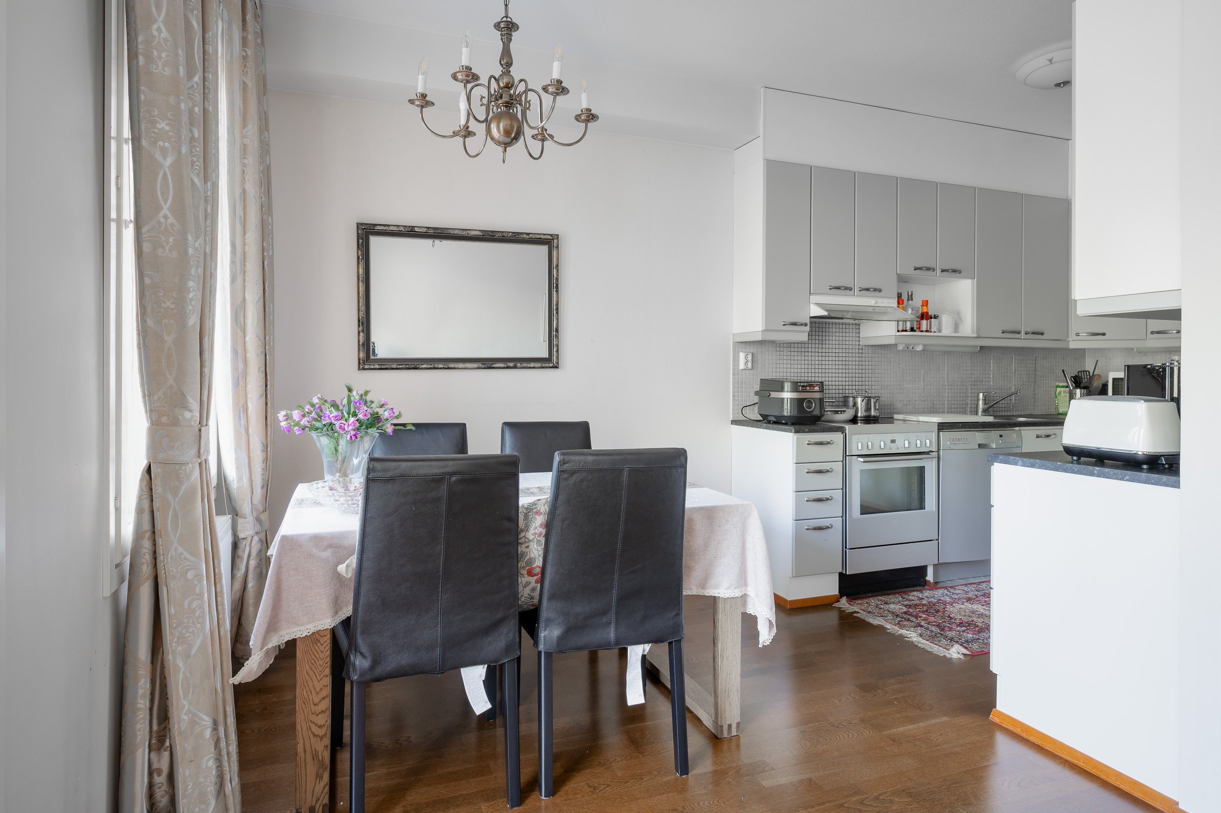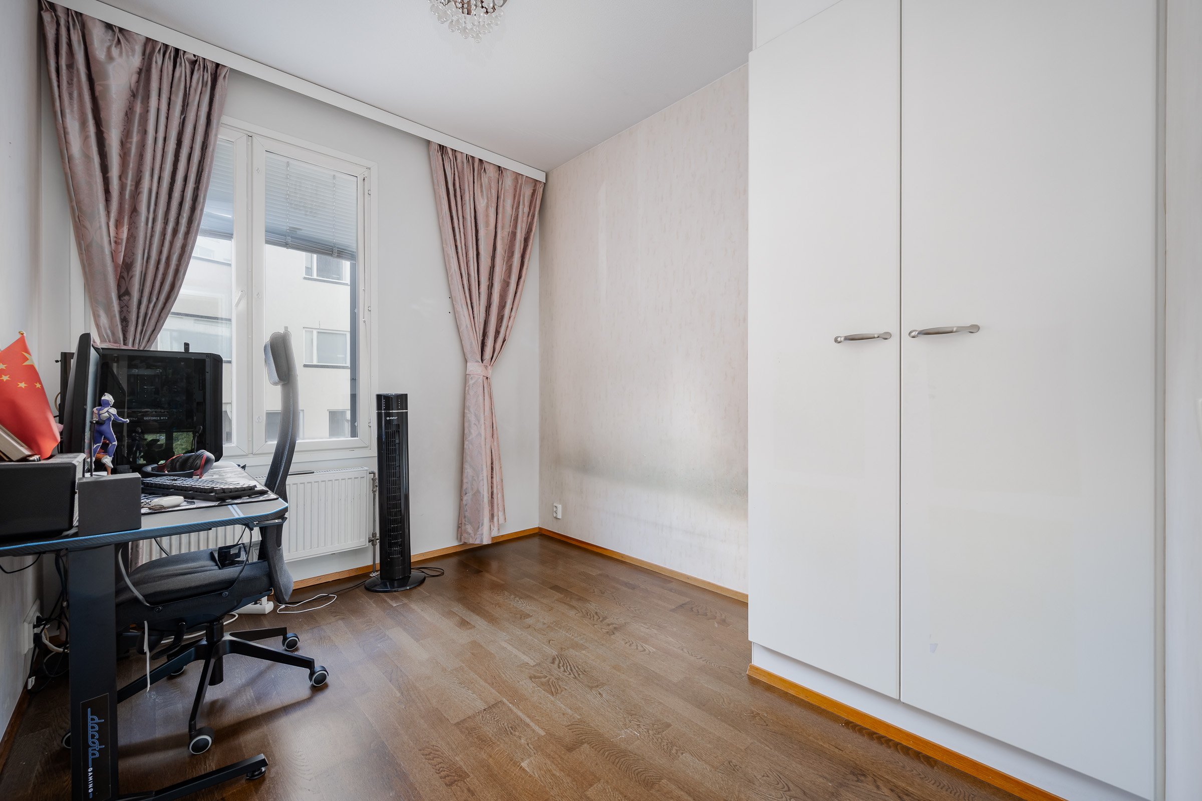 A bright and cozy home awaits its new owner on Rauhankatu, in the heart of Turku. This 78 square meter triangle offers an excellent setting for city living. The apartment is located on the second floor, and offers stunning views over the city. Large windows bring in plenty of natural light, creating a spacious and fresh atmosphere.