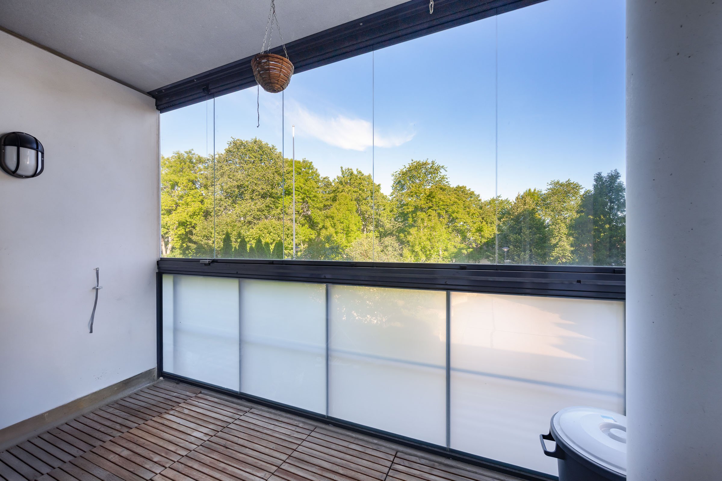 Asunto sijaitsee toisessa kerroksessa, ja sieltä avautuvat upeat näkymät kaupungin ylle. Suuret ikkunat tuovat runsaasti luonnonvaloa sisään, luoden avaran ja raikkaan tunnelman.