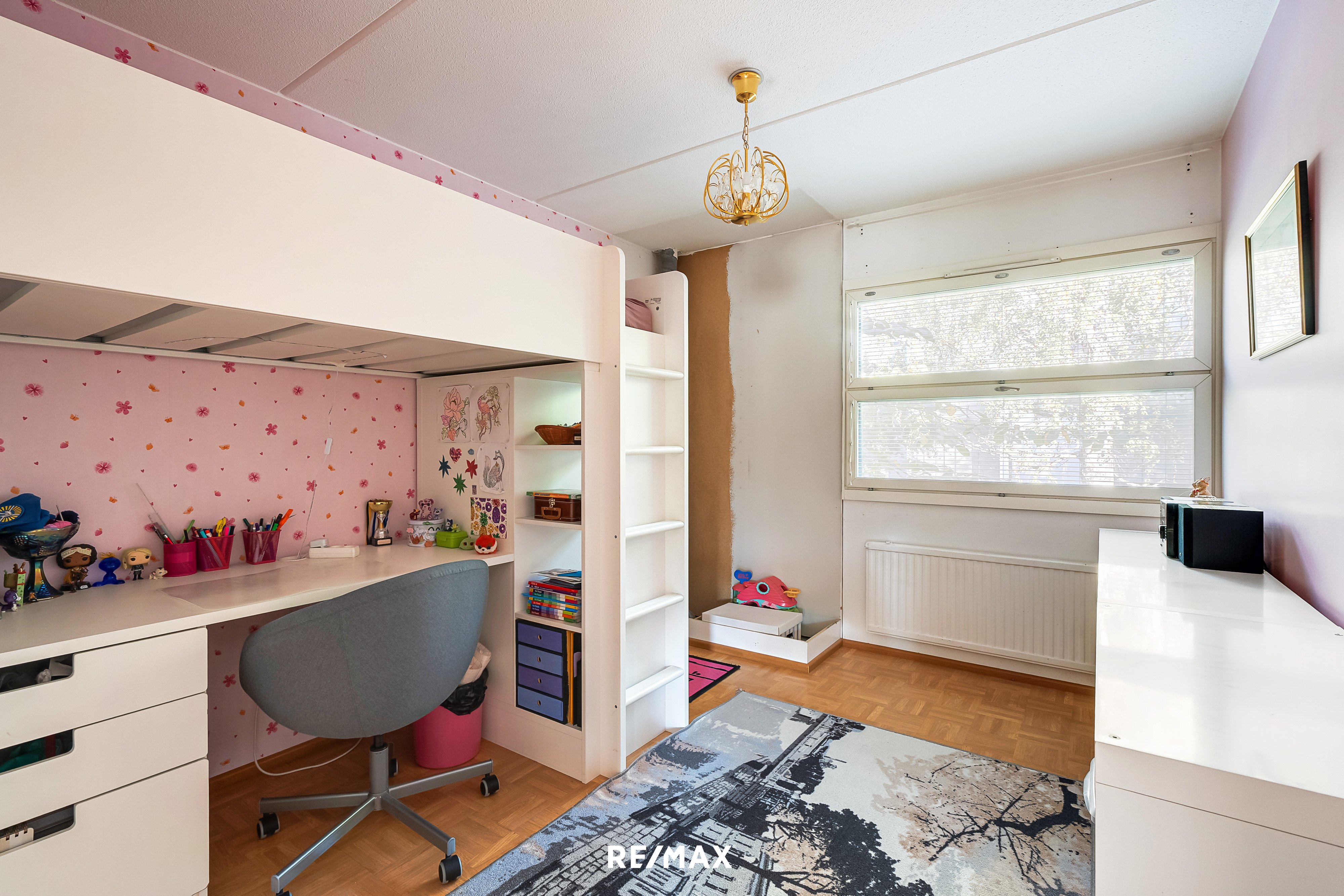Asunnossa on neljä makuuhuonetta, jotka tarjoavat jokaiselle perheenjäsenelle oman rauhallisen tilan. Tilava olohuone kutsuu viettämään yhteisiä hetkiä, ja sen kautta on kulku omalle terassille, jossa voi nauttia kesäpäivistä ja ilta-auringosta.