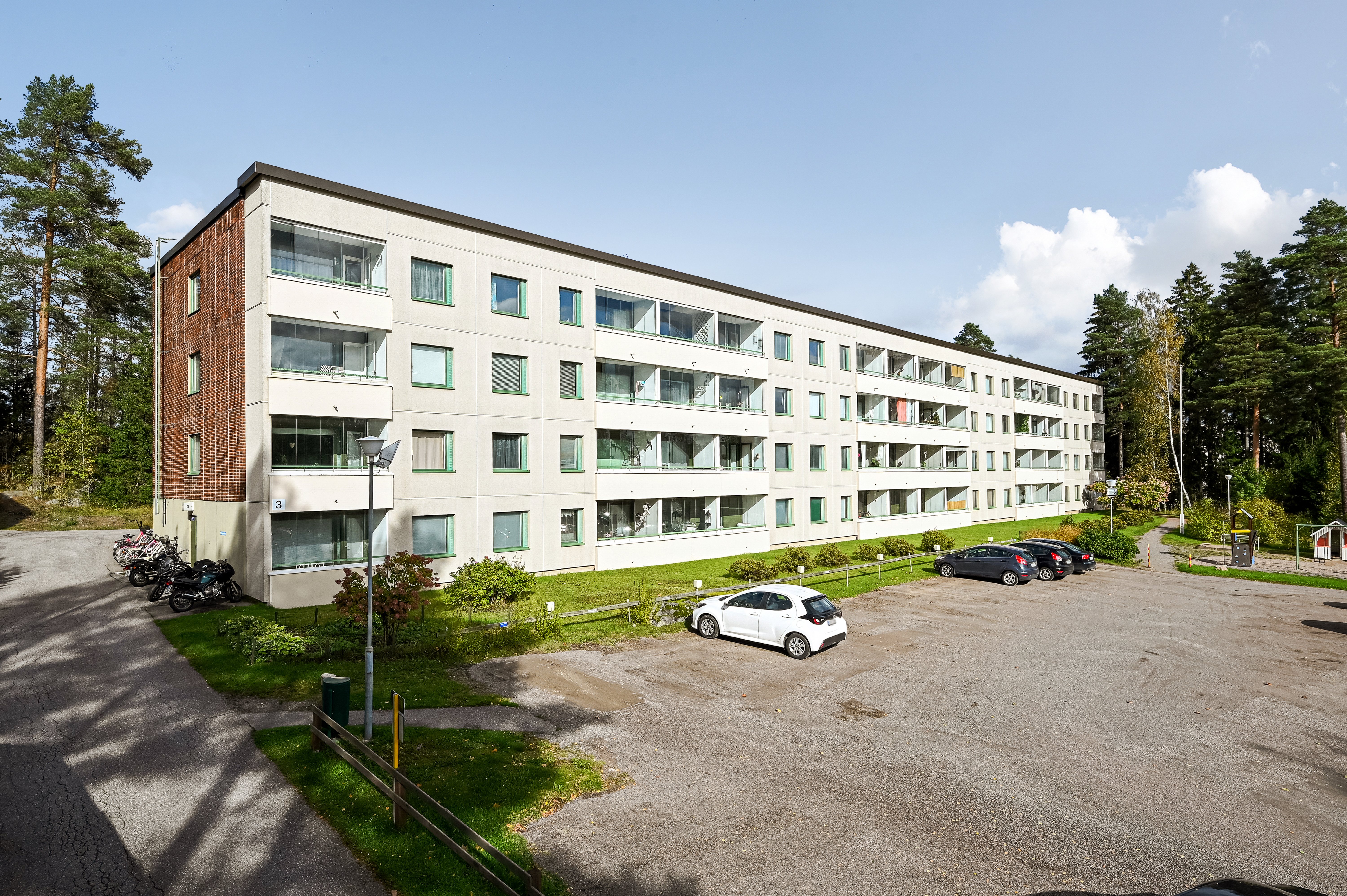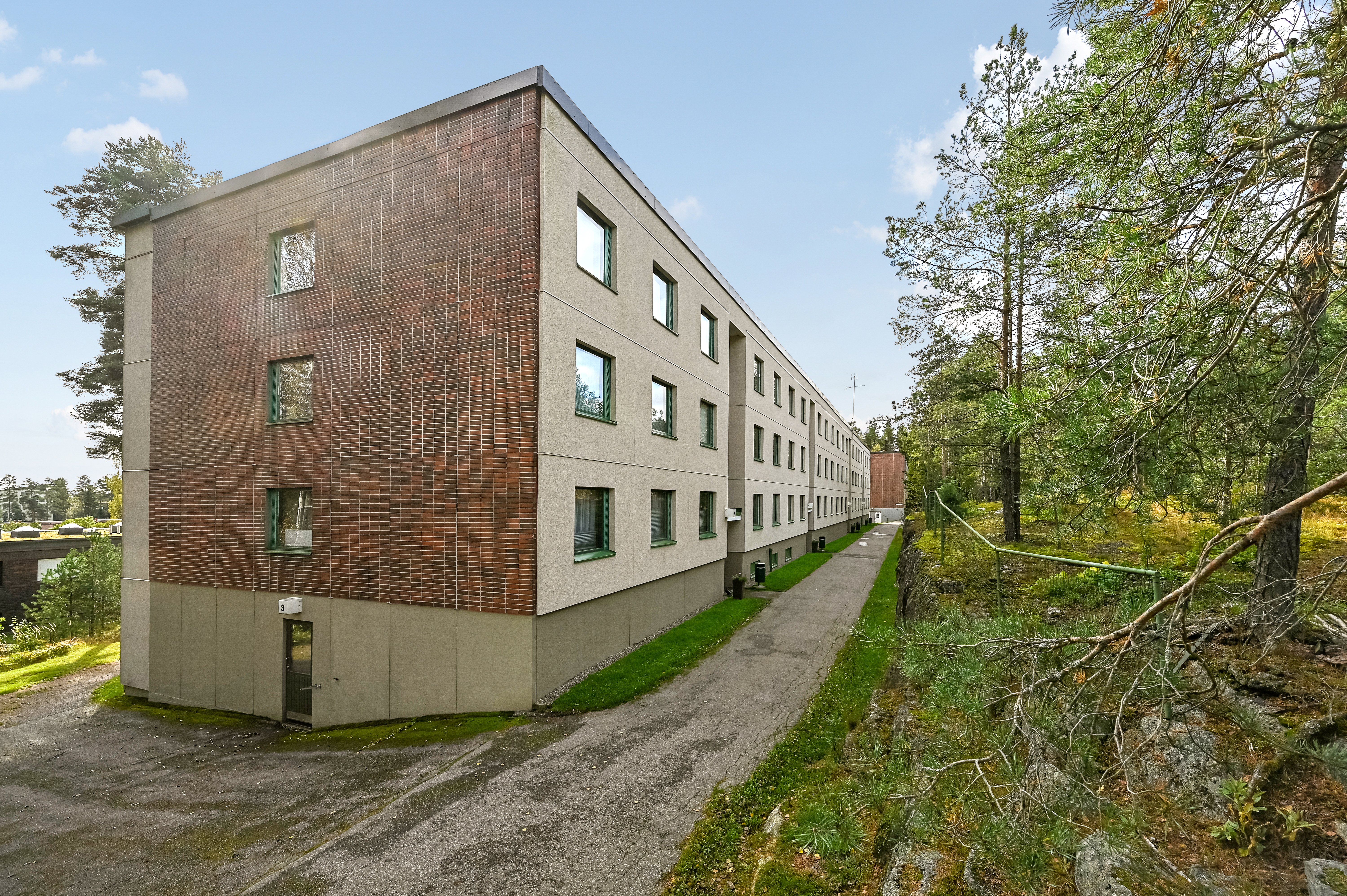 Asunto sijaitsee Asunto Oy Metsonkalliossa, vuonna 1972 valmistuneessa taloyhtiössä omalla tontilla.