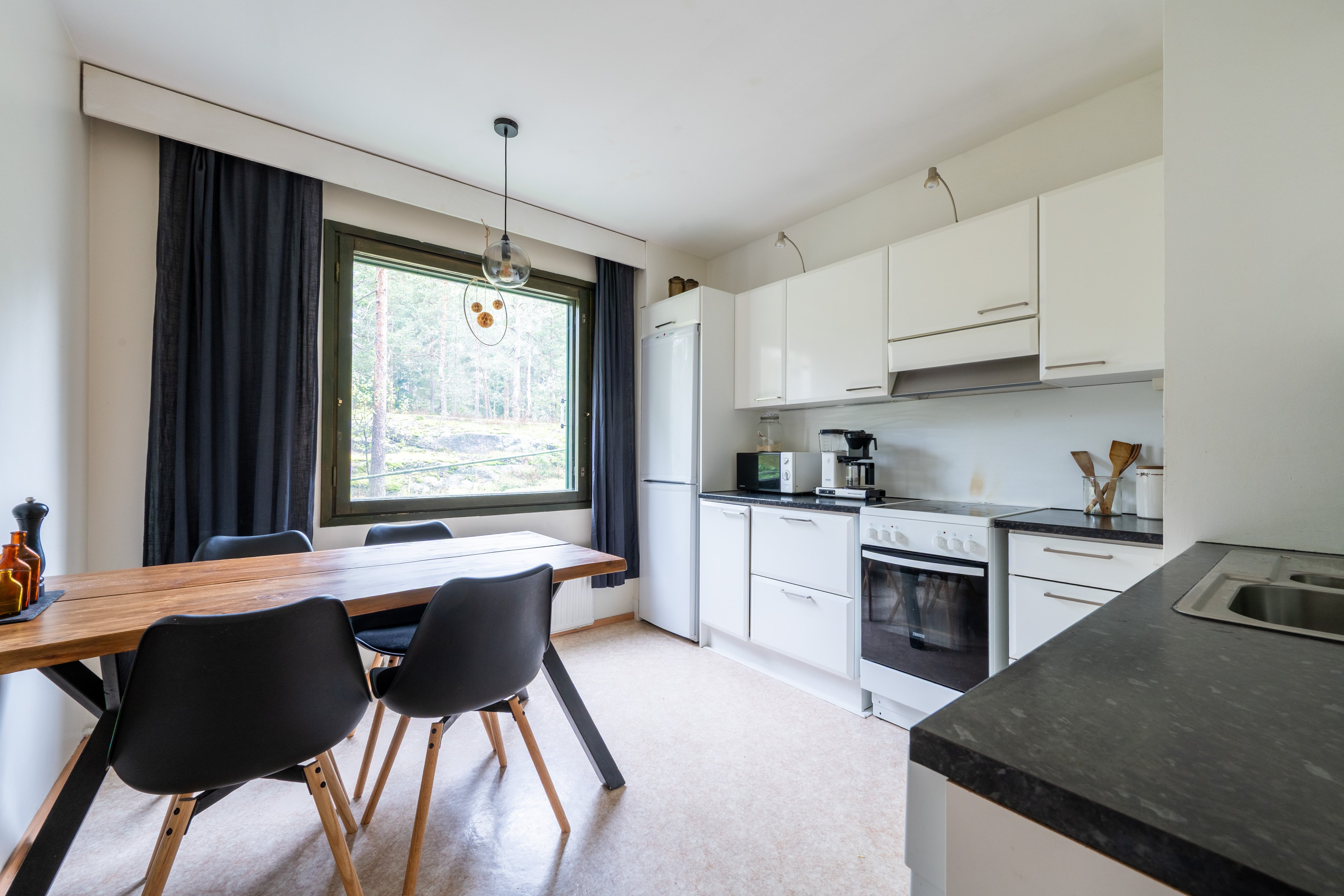 Riihikallion alueella on hyvät kulkuyhteydet ja alueen vehreät metsät tarjoavat loistavat ulkoilumahdollisuudet (Ruotsinkylän tutkimusmetsä). Tämä asunto on erinomainen valinta perheelle, joka arvostaa rauhallista asuinympäristöä ja hyviä palveluita lähellä.