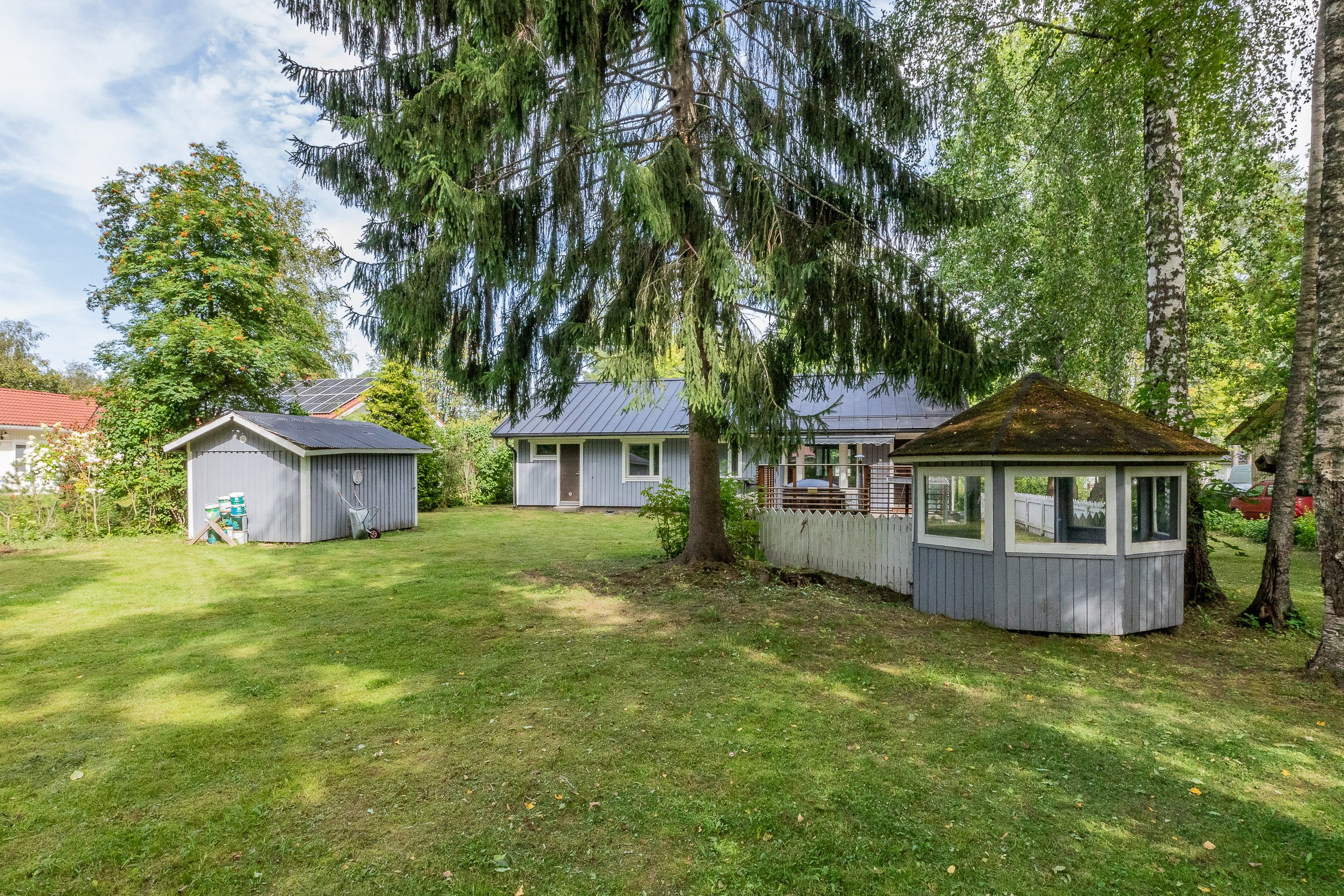 Tontti, kooltaan 1354 m2, tarjoaa runsaasti tilaa niin lasten leikeille kuin puutarhanhoidolle. Lisäksi autotalli ja ulkovarasto tuovat käytännöllistä säilytystilaa arkeen.