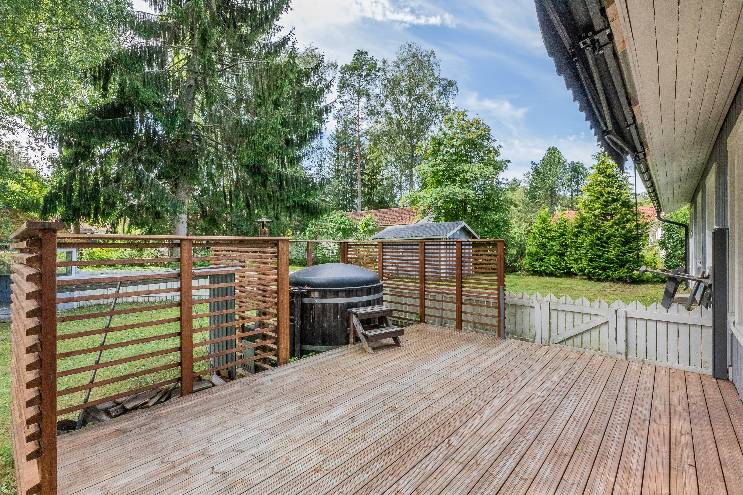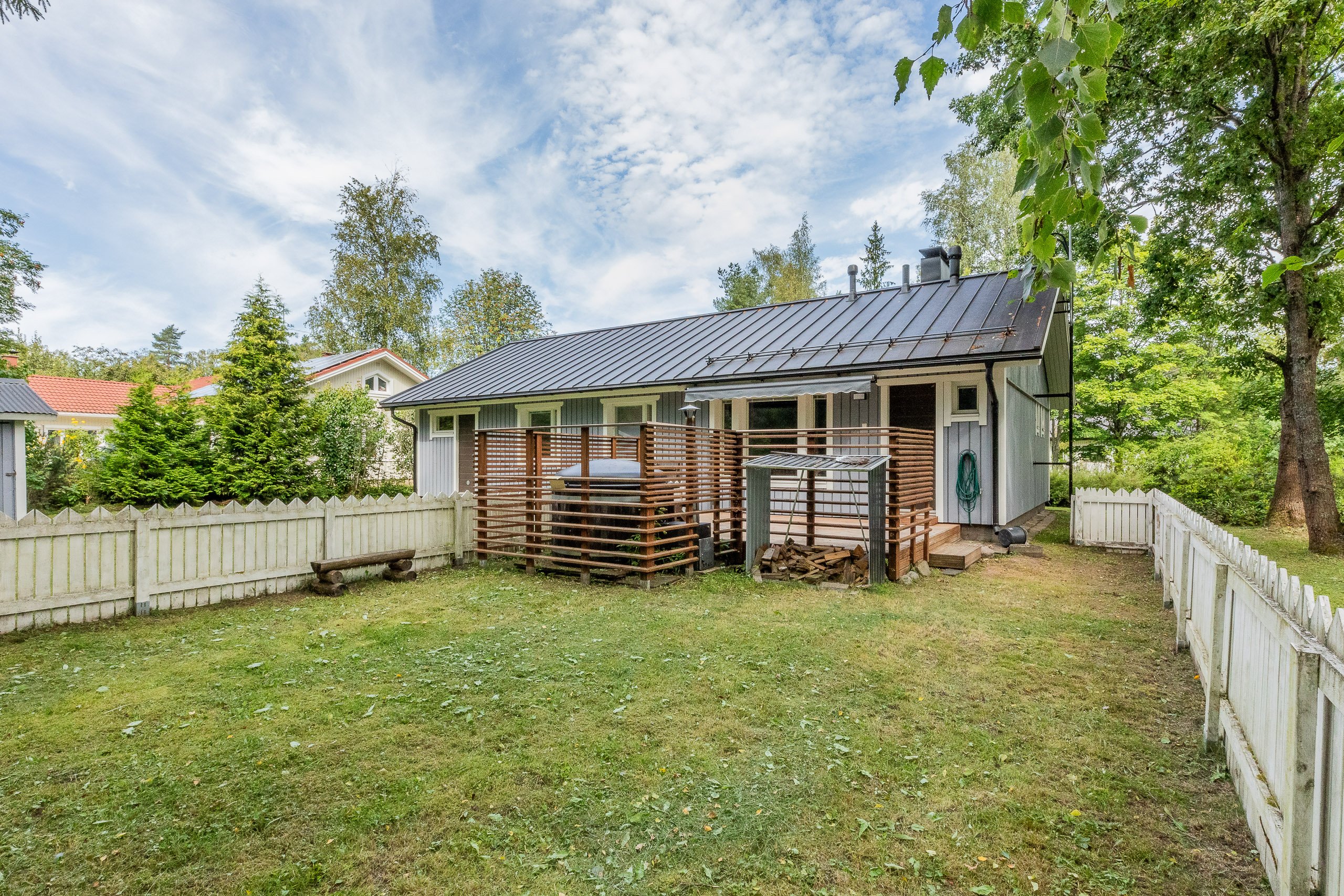 Kolme makuuhuonetta tarjoavat jokaiselle perheenjäsenelle oman rauhallisen tilansa. Kylpyhuone ja ikkunallinen sauna uusittiin kokonaan remontin yhteydessä, ja niistä on suora kulku terassille. Suojaisalla pihalla voit nauttia puulämmitteisestä paljusta tai viettää aikaa kesäpäivistä nauttien.