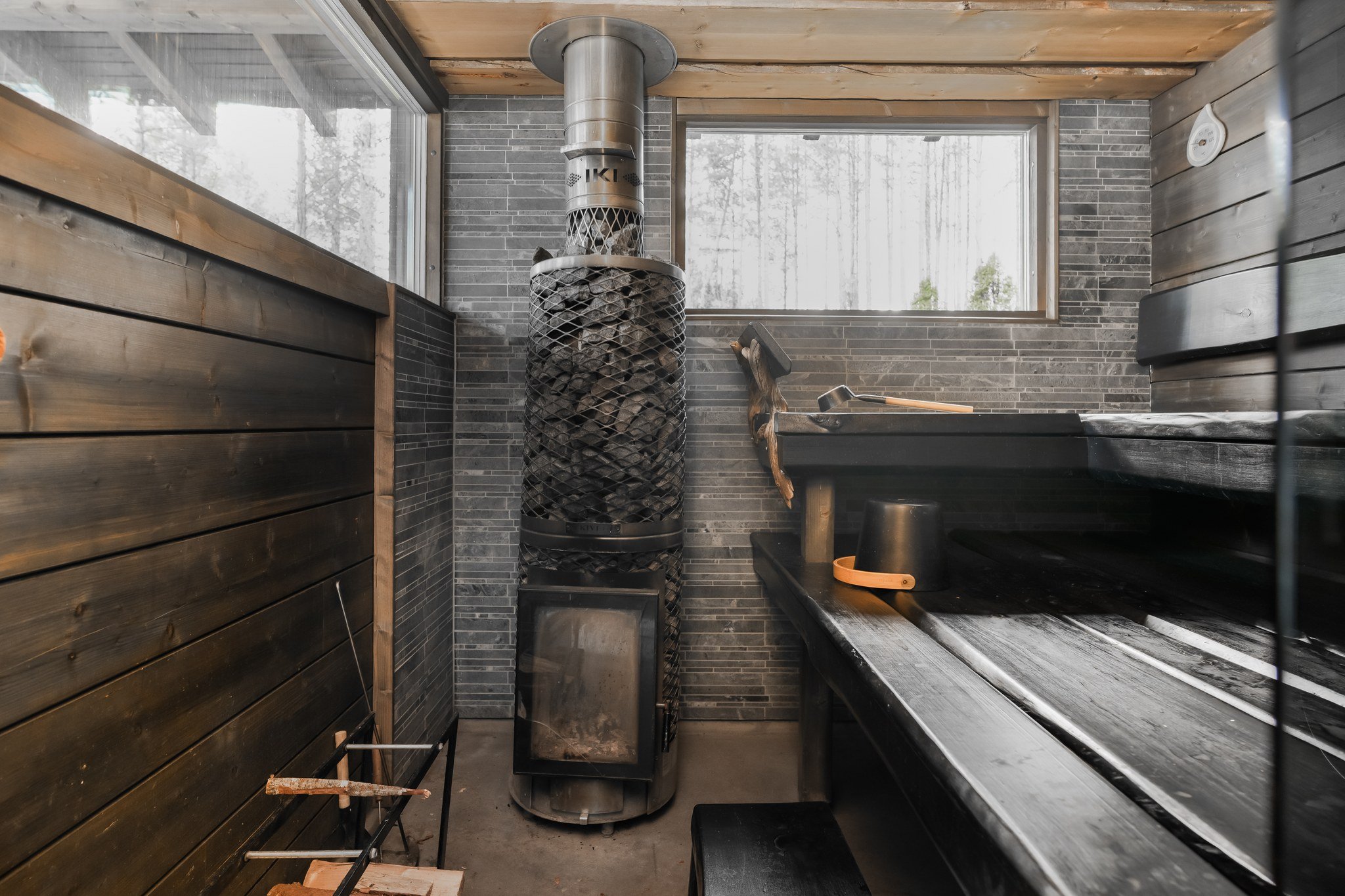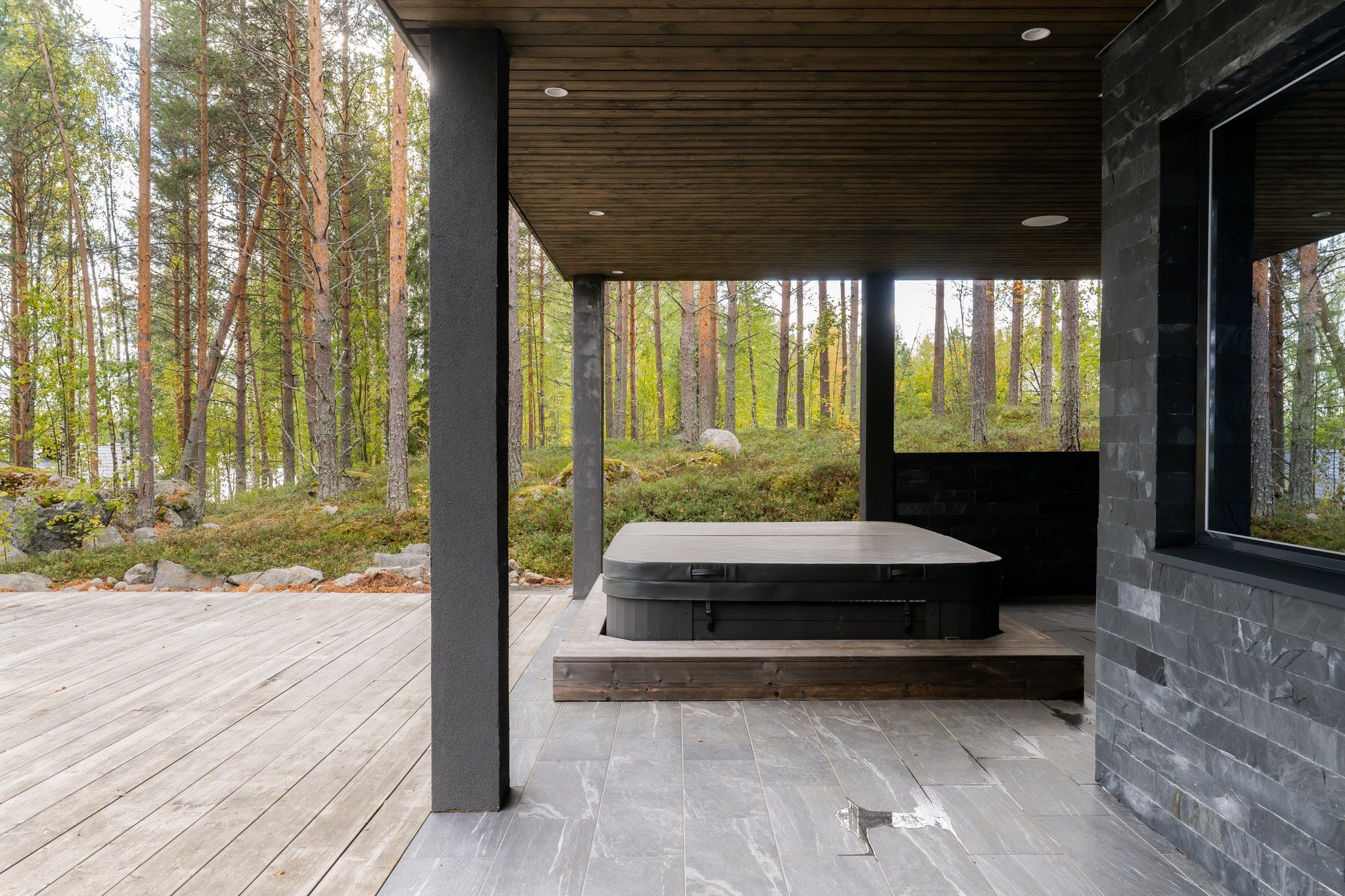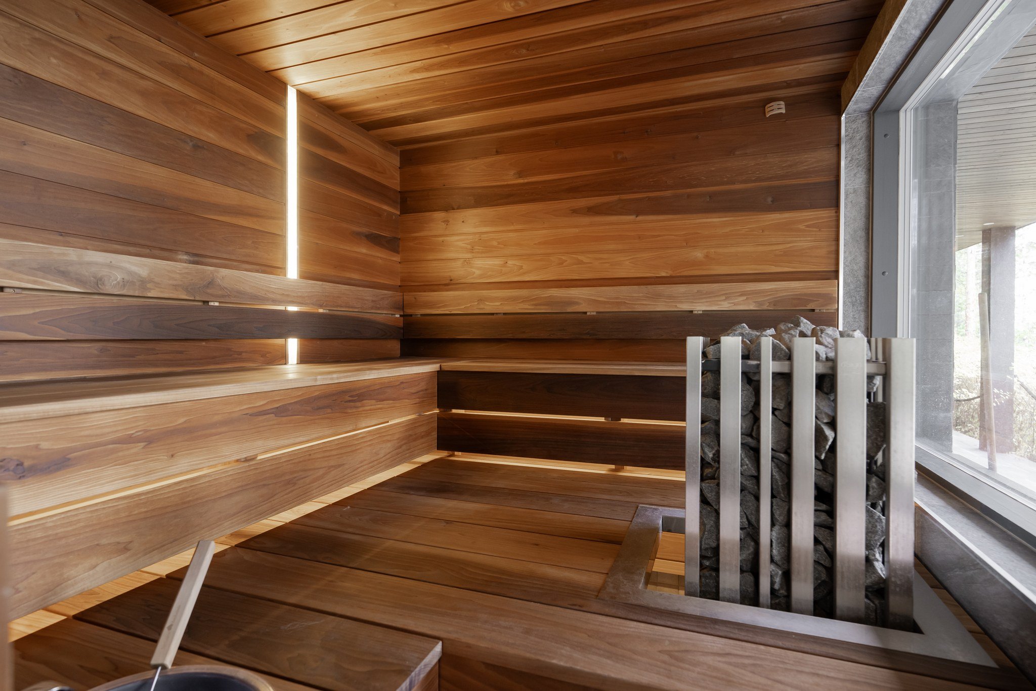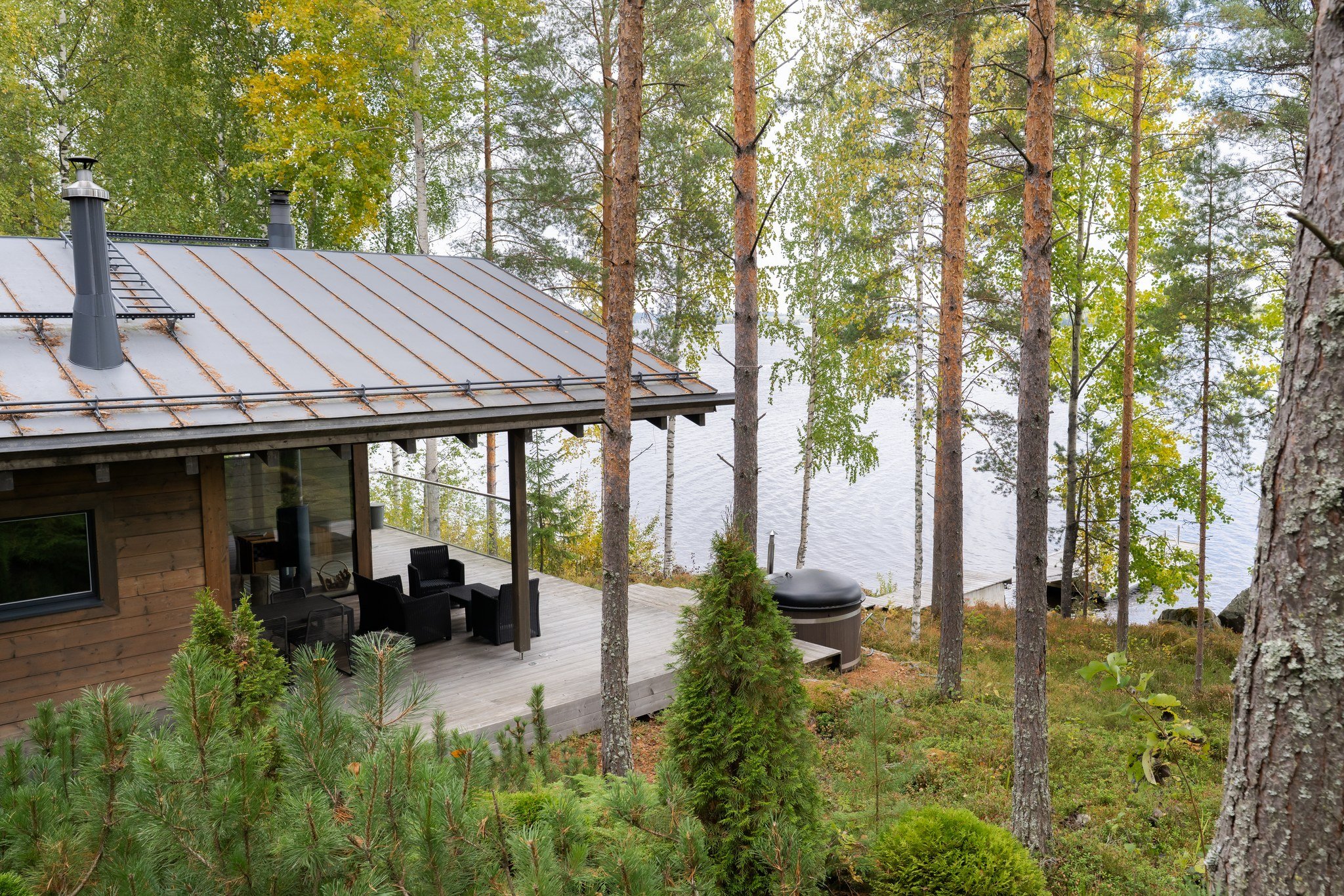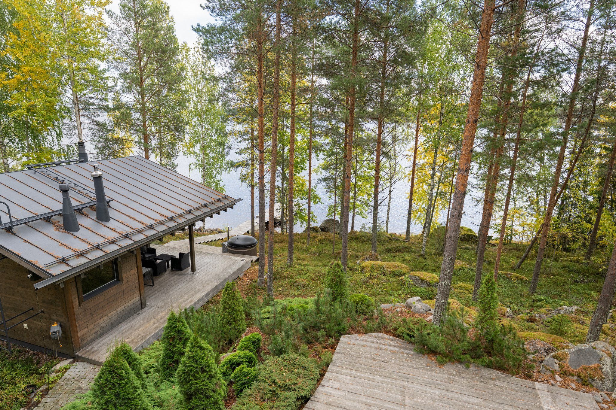 • Spa-saunaosasto: Ylellinen saunaosasto, jossa on sauna, aina lämmin ulkoporeallas, sisustustakka ja vilvoitteluterassi järvimaisemassa.