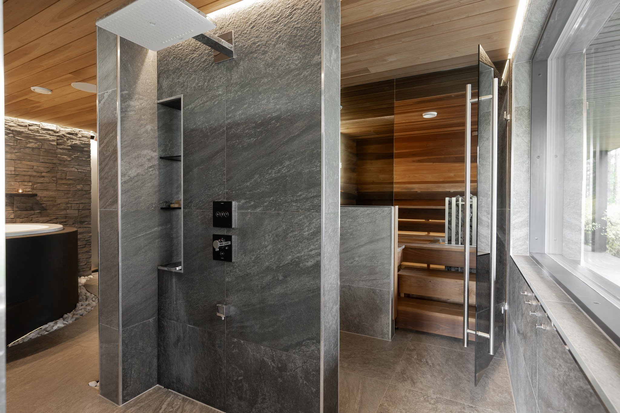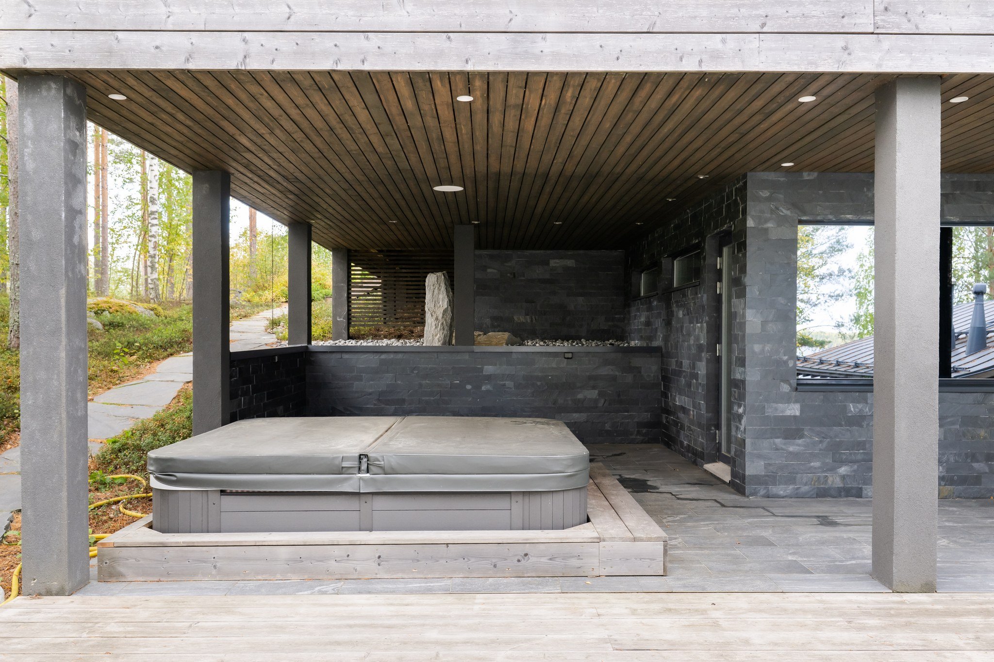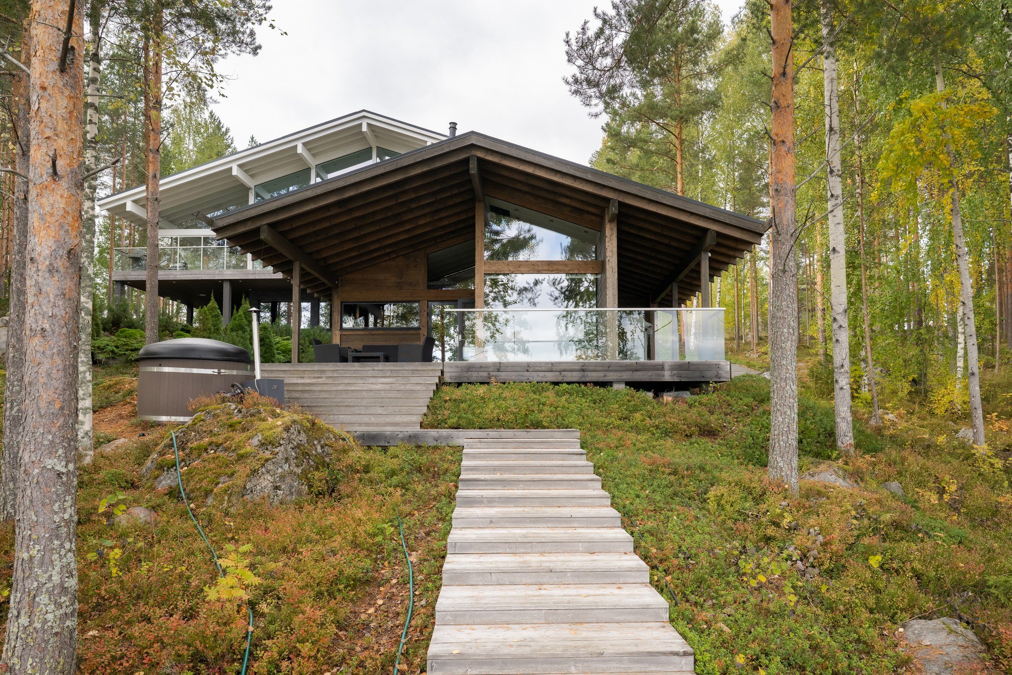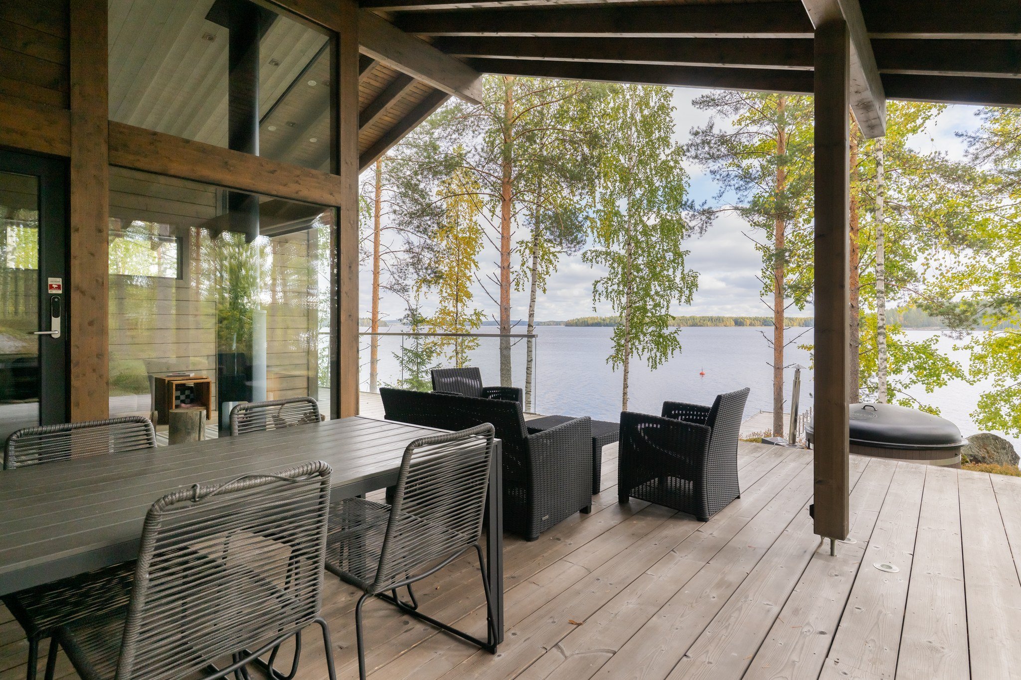 • Spa-saunaosasto: Ylellinen saunaosasto, jossa on sauna, aina lämmin ulkoporeallas, sisustustakka ja vilvoitteluterassi järvimaisemassa.