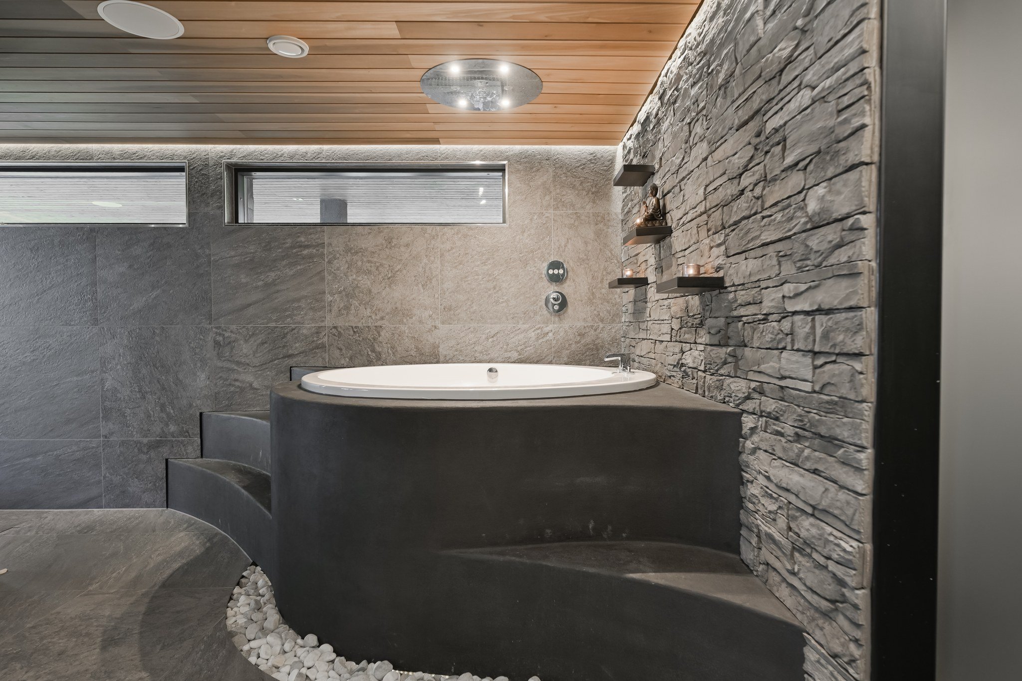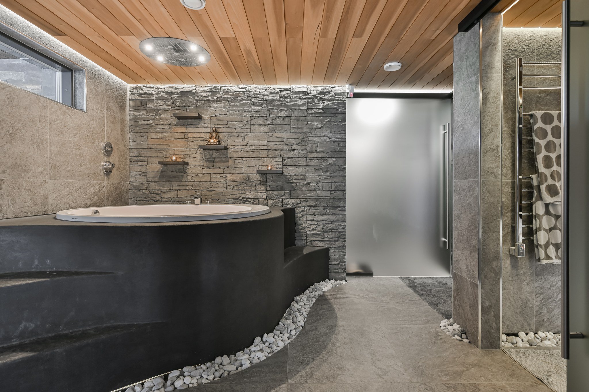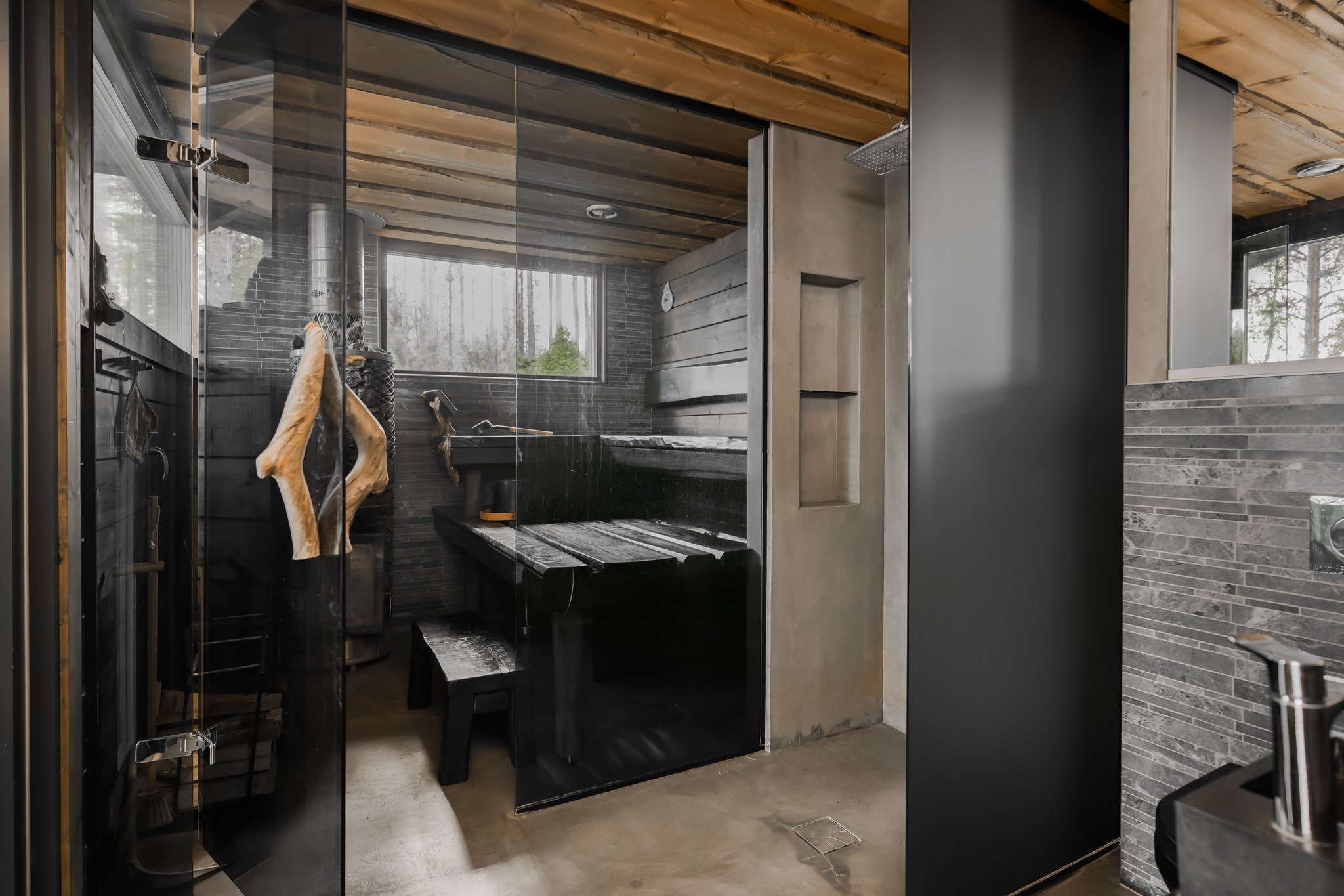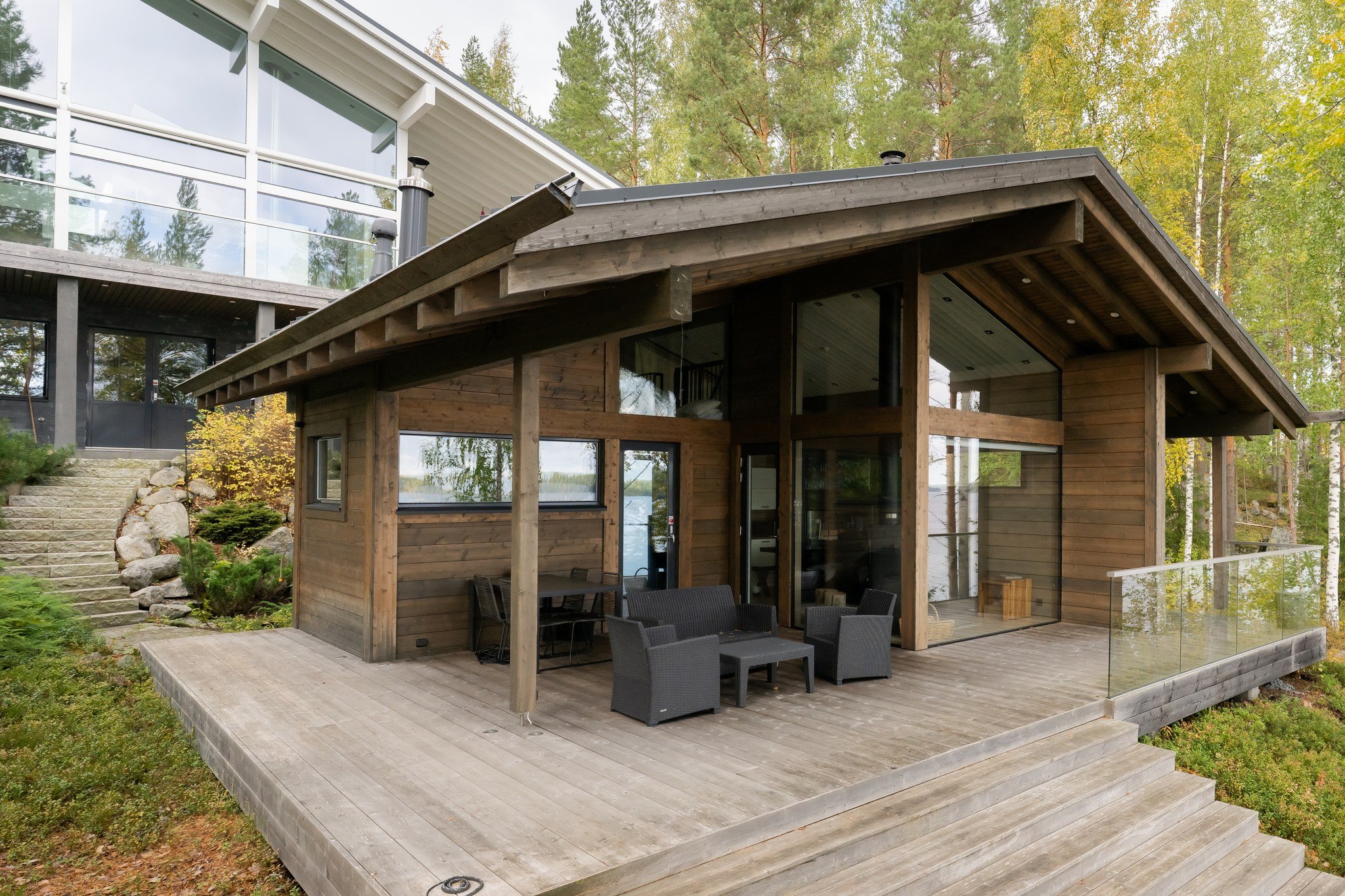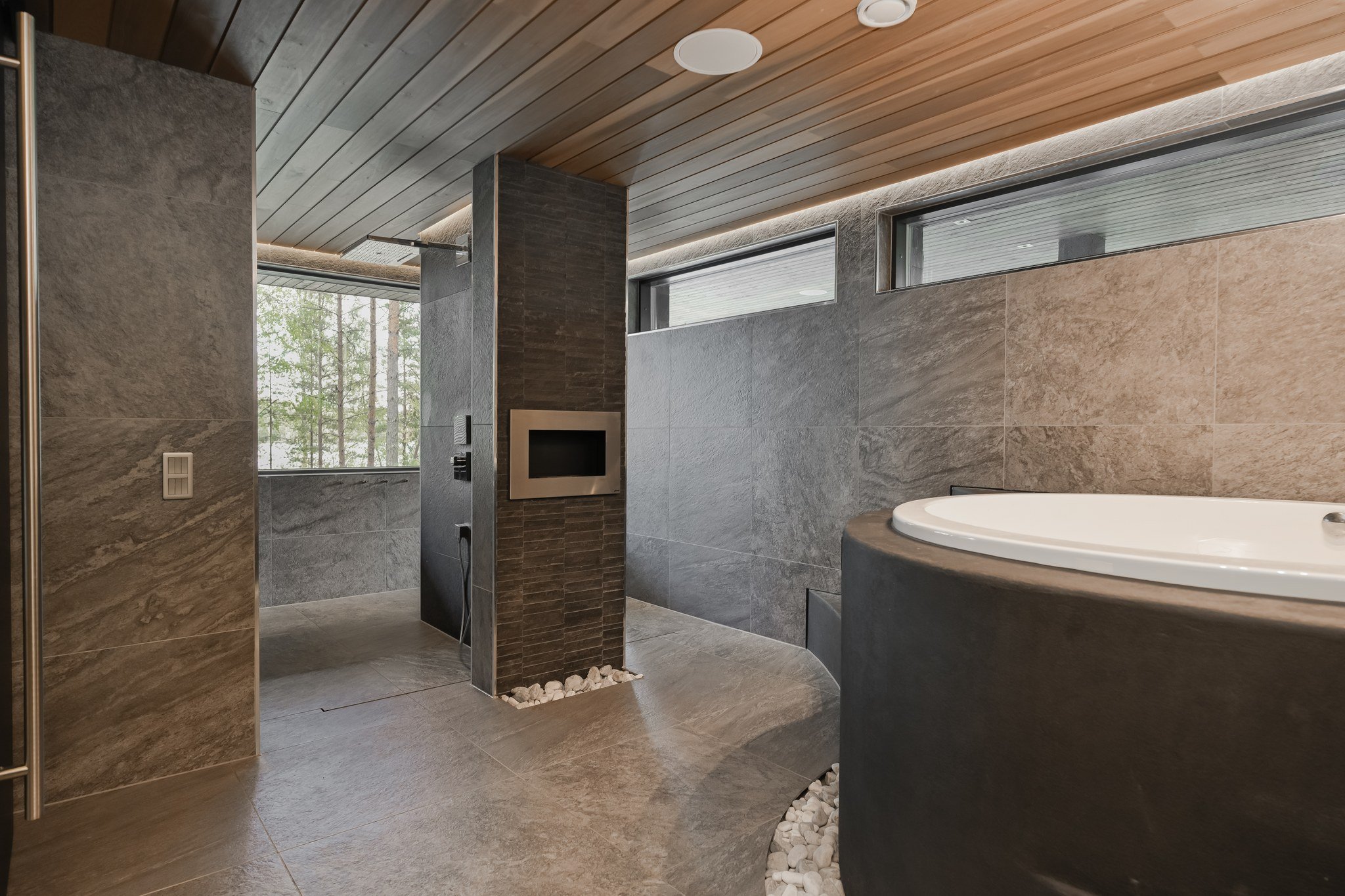 • Spa-saunaosasto: Ylellinen saunaosasto, jossa on sauna, aina lämmin ulkoporeallas, sisustustakka ja vilvoitteluterassi järvimaisemassa.
